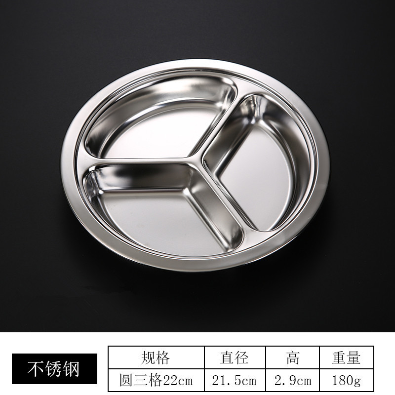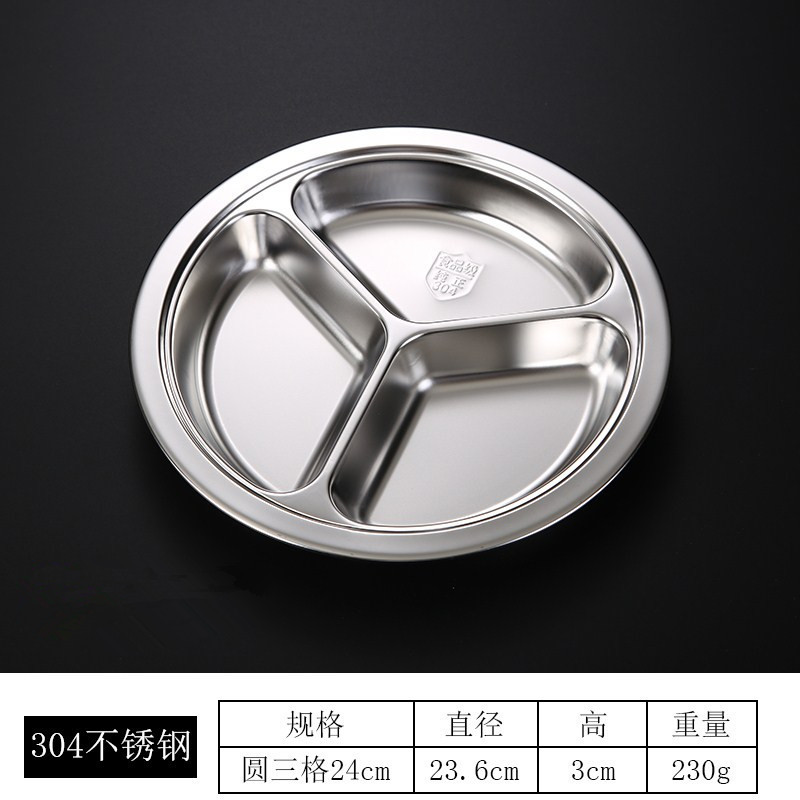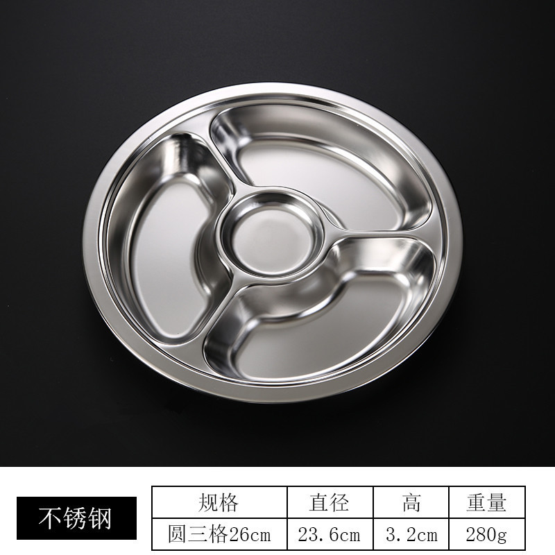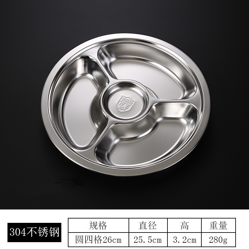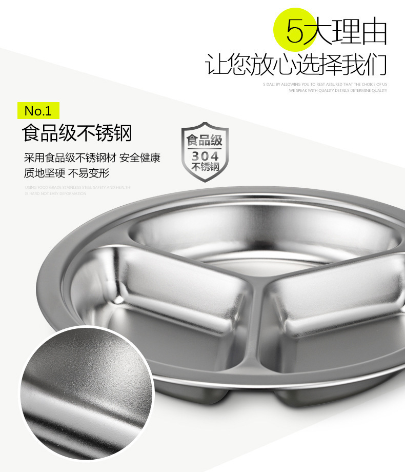 어린이 플레이트 304 스테인레스 스틸 라운드 유치원 학생 매점 분할 패스트 푸드 플레이트 레이저 로고스토어 가기