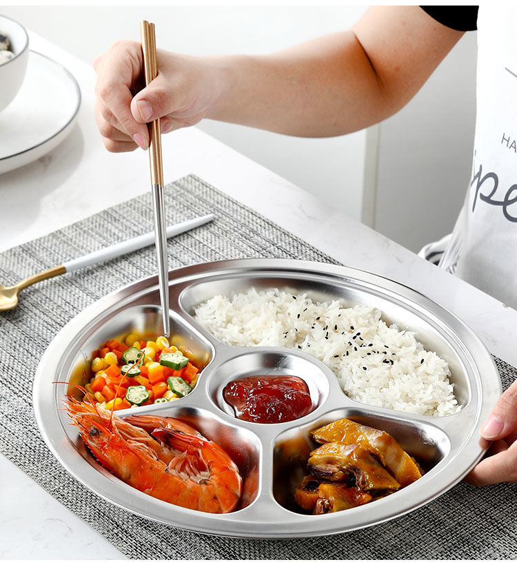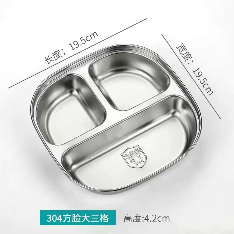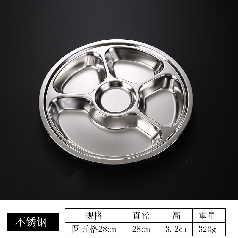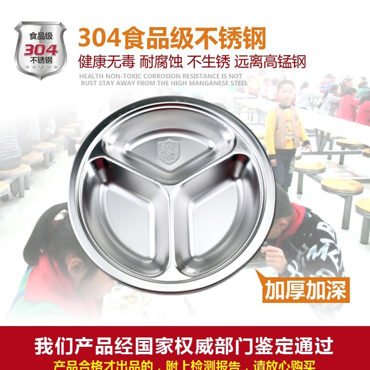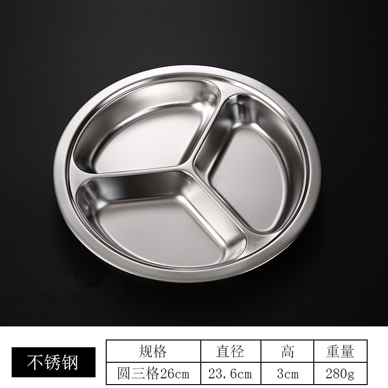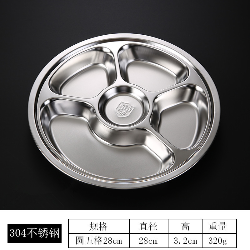 어린이 플레이트 304 스테인레스 스틸 라운드 유치원 학생 매점 분할 패스트 푸드 플레이트 레이저 로고스토어 가기