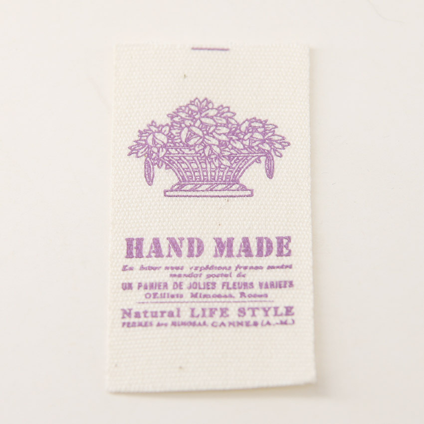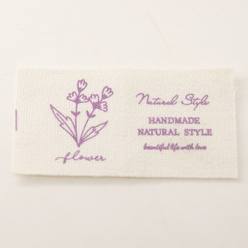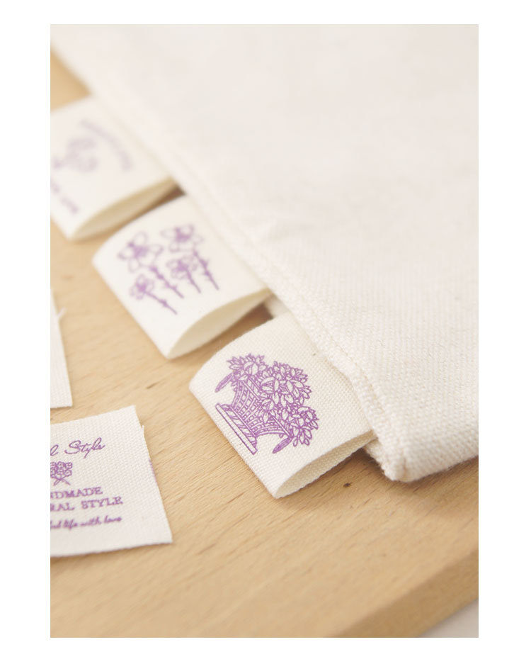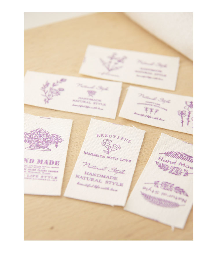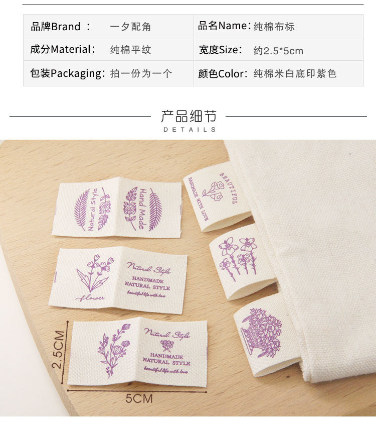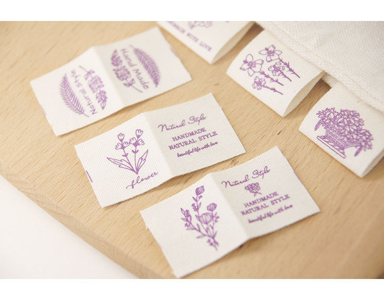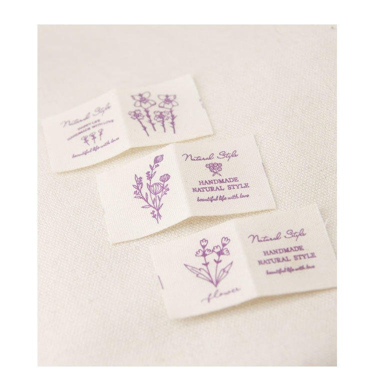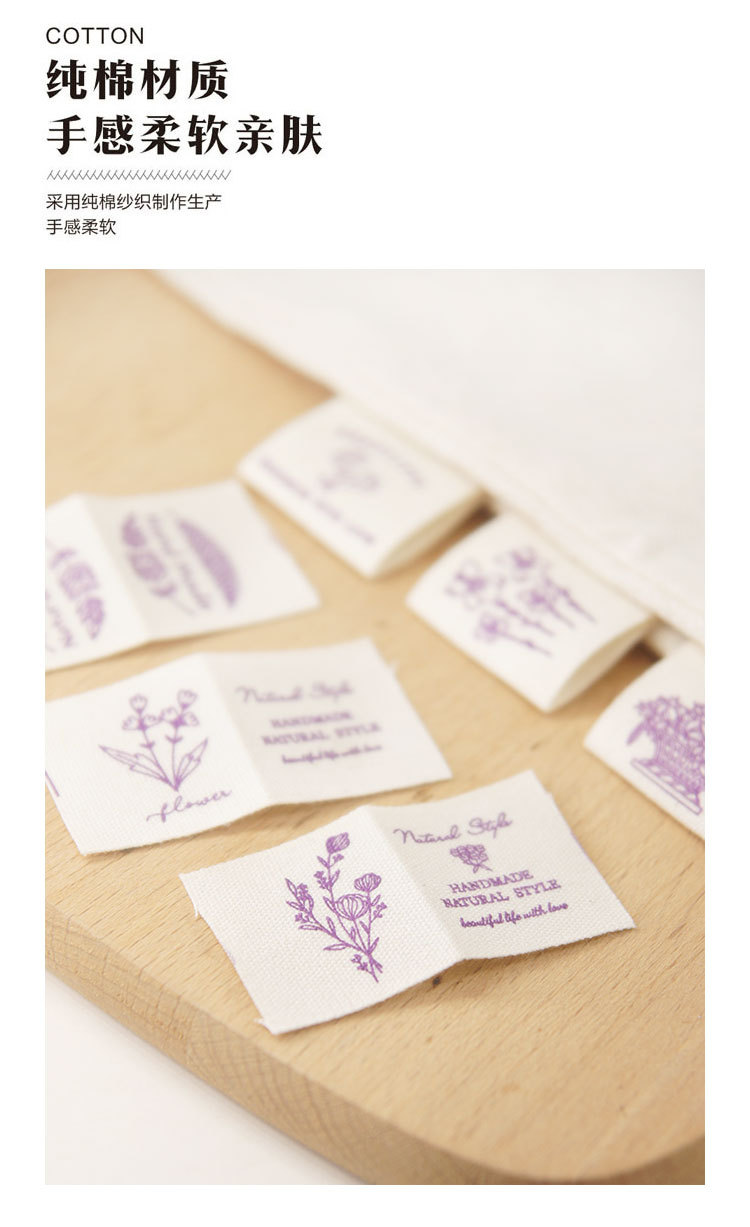 재고 수제 천 라벨 보라색 꽃다발 꽃 잎 꽃 바구니 순수한면 라벨 액세서리 봉제 사이드 레이블을 반으로 접었습니다.스토어 가기
