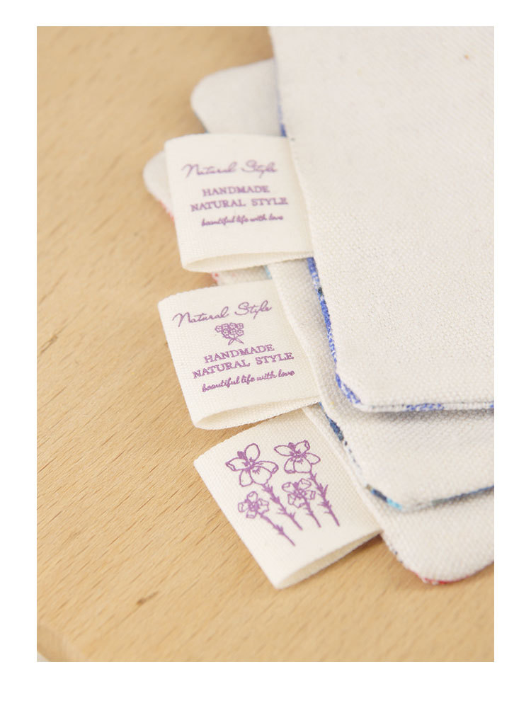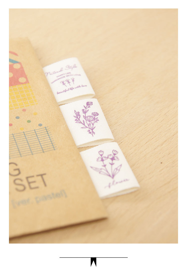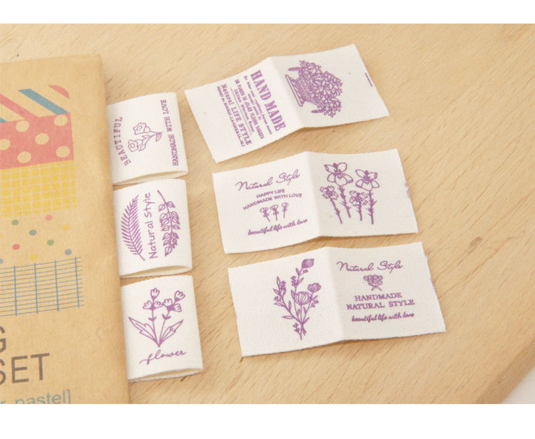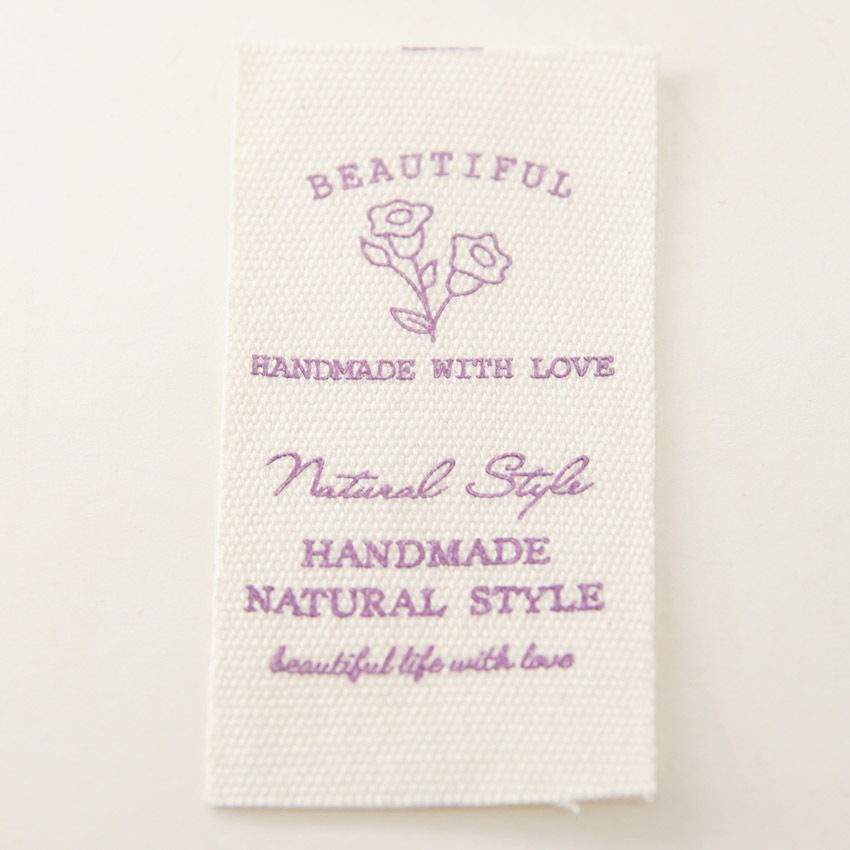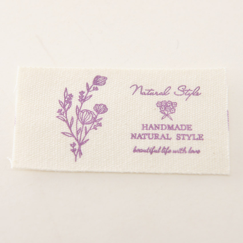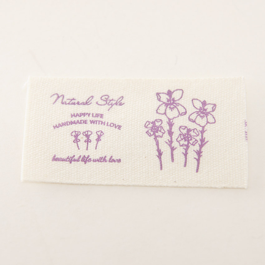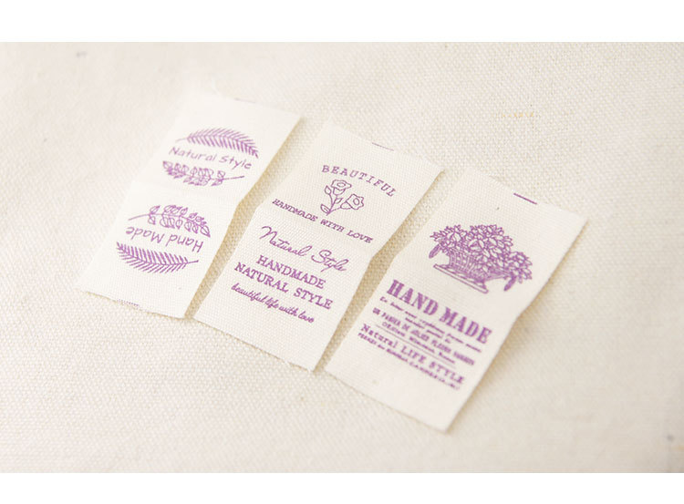 재고 수제 천 라벨 보라색 꽃다발 꽃 잎 꽃 바구니 순수한면 라벨 액세서리 봉제 사이드 레이블을 반으로 접었습니다.스토어 가기