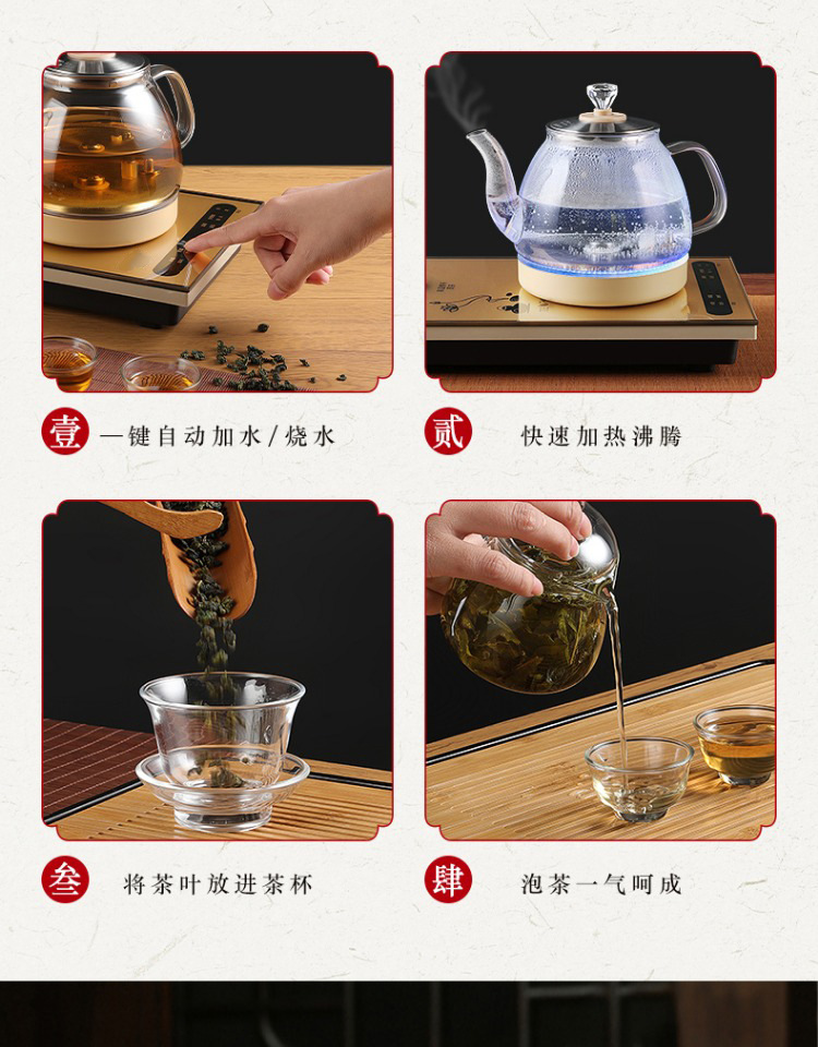 완전 자동 바닥 물 공급 전기 주전자 정수기 특수 차 테이블 통합 차 테이블 임베디드 전기 차 세트