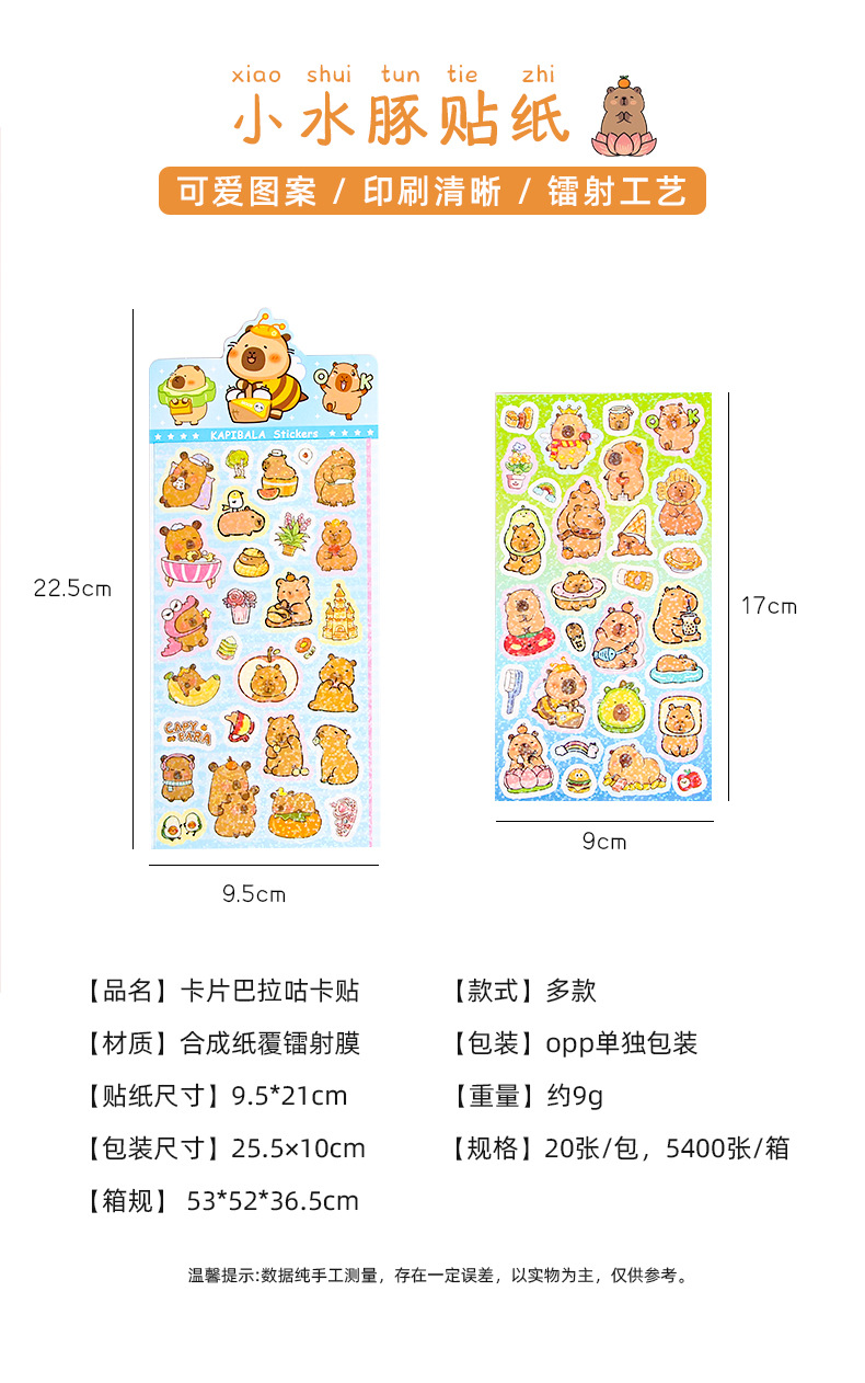 Carto 카드 Pibala 레이저 스티커 귀여운 손 계정 소재 초등학교 학생 스티커 goo chuck diy 장식 스티커스토어 가기