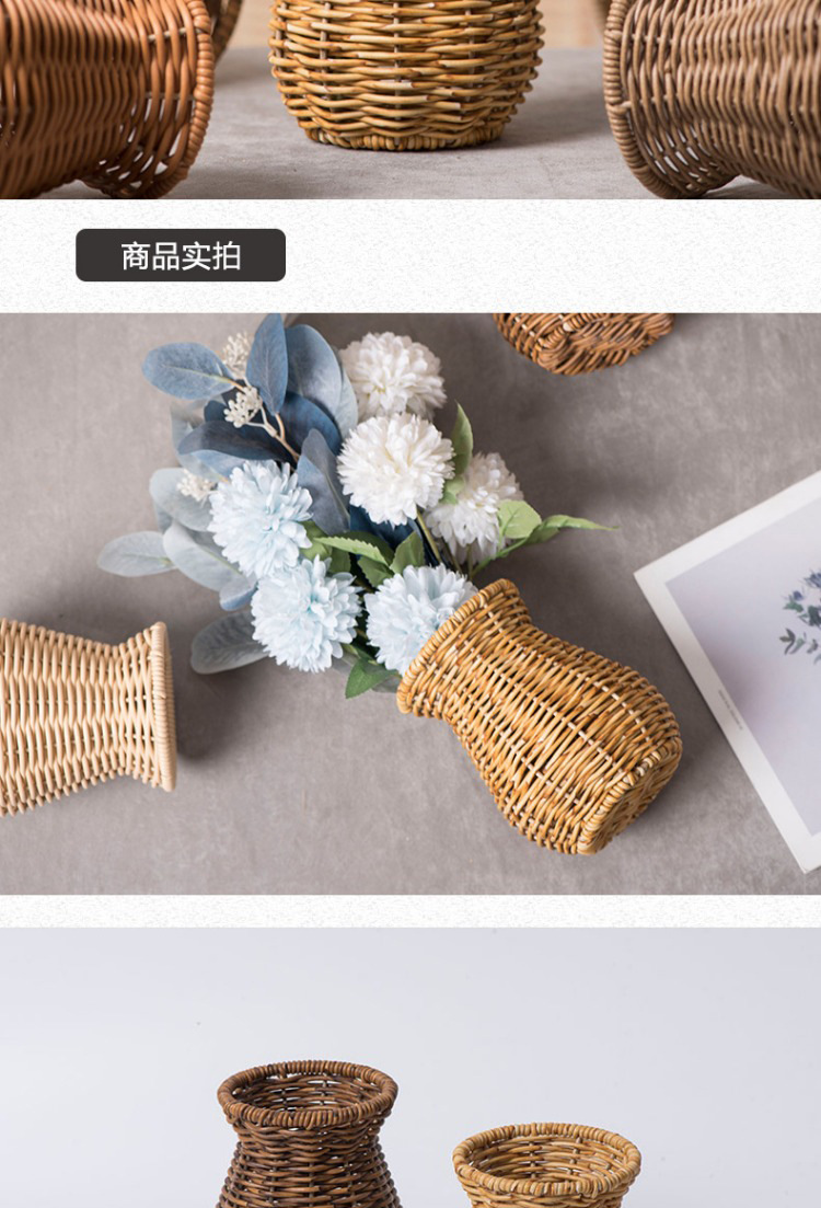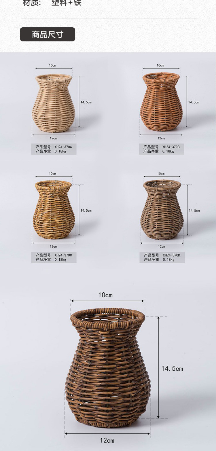 플라스틱 등나무 꽃병 실내 데스크탑 캐비닛 손으로 짠 꽃병 말린 꽃 장식품 창조적 인 홈 가구스토어 가기