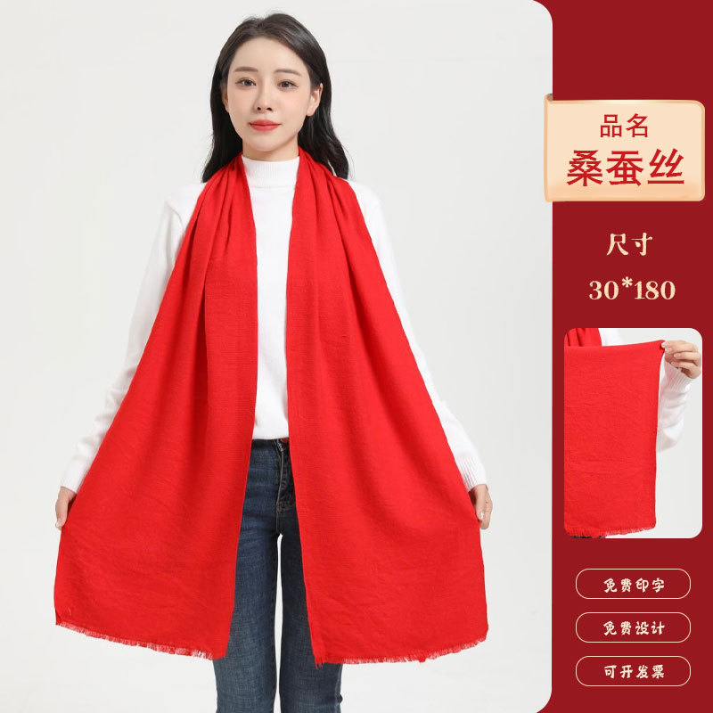 중국 빨간 스카프 인쇄 자수 로고 회사 회의 연례 회의 이벤트 목도리 큰 붉은 스카프 조상 축하스토어 가기