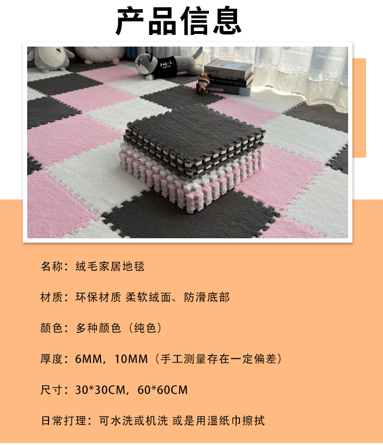 접합 카펫은 흡수성, 얼룩 방지 및 미끄럼 방지 폼 바닥 매트, 관리가 쉬운 매트, 거실에서 수면 및 앉을 수 있는 플러시 바닥 매트입니다.스토어 가기