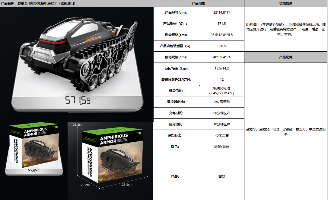 JJRC 새로운 수륙양용 원격 제어 장갑 크롤러 탱크 장난감 자동차 어린이 여름 전기 장난감 원격 제어 자동차