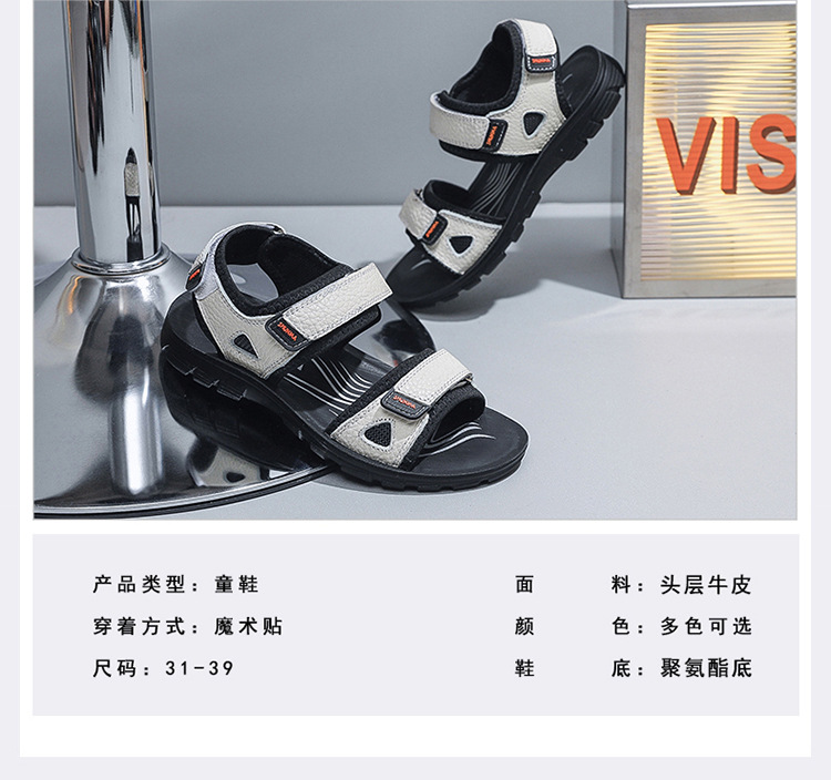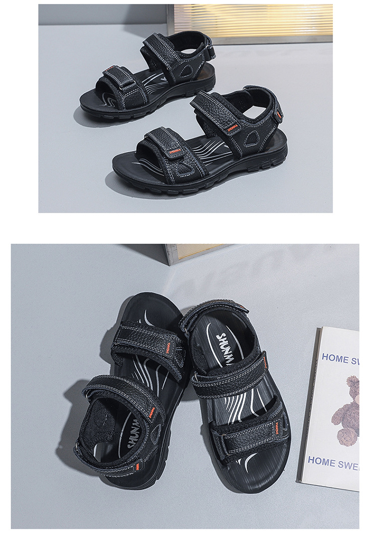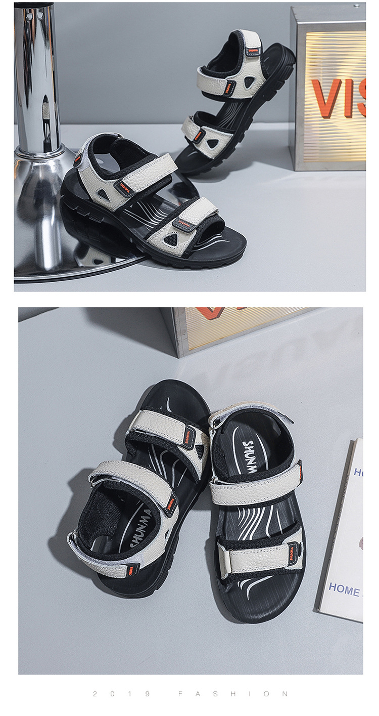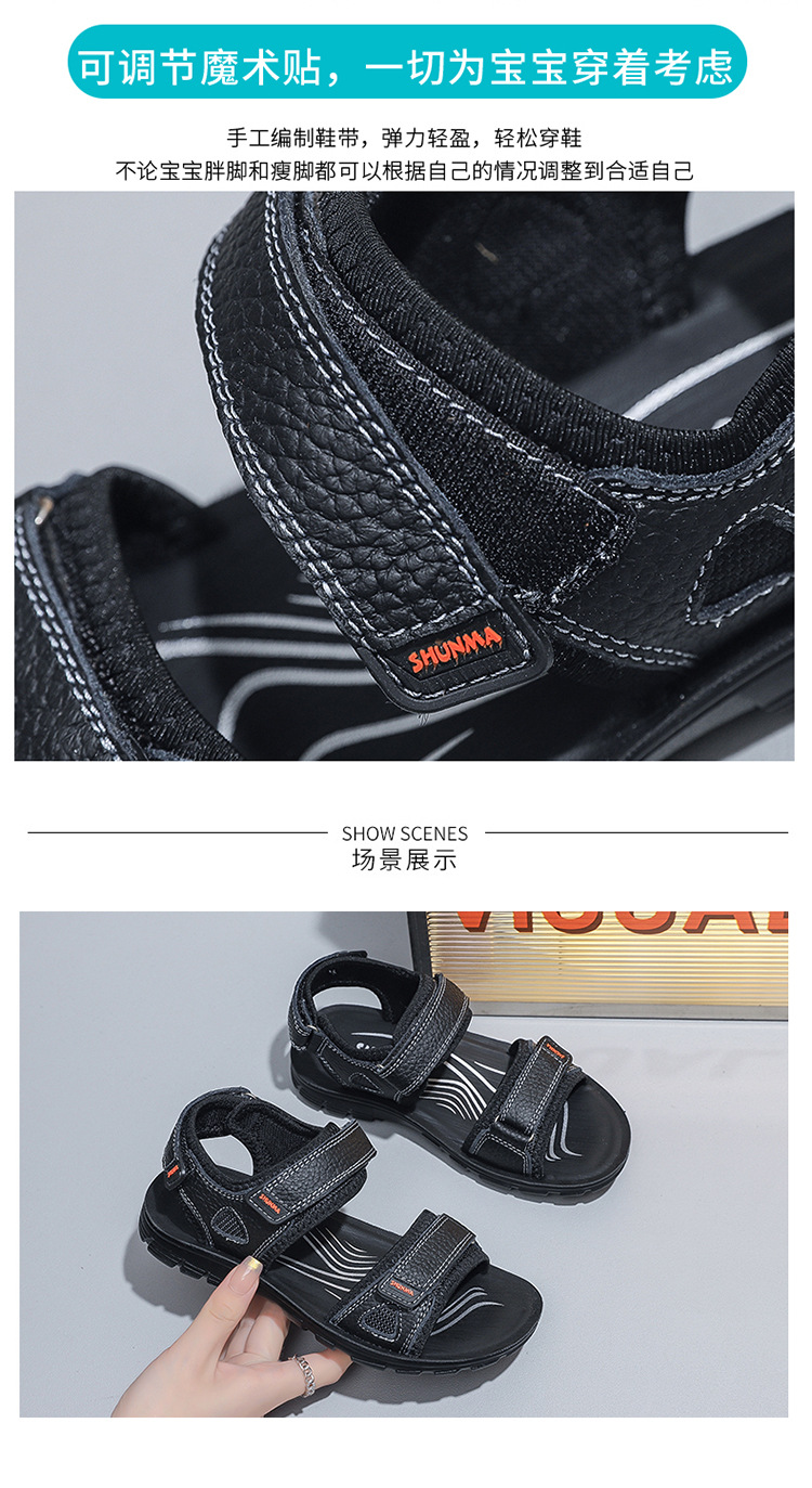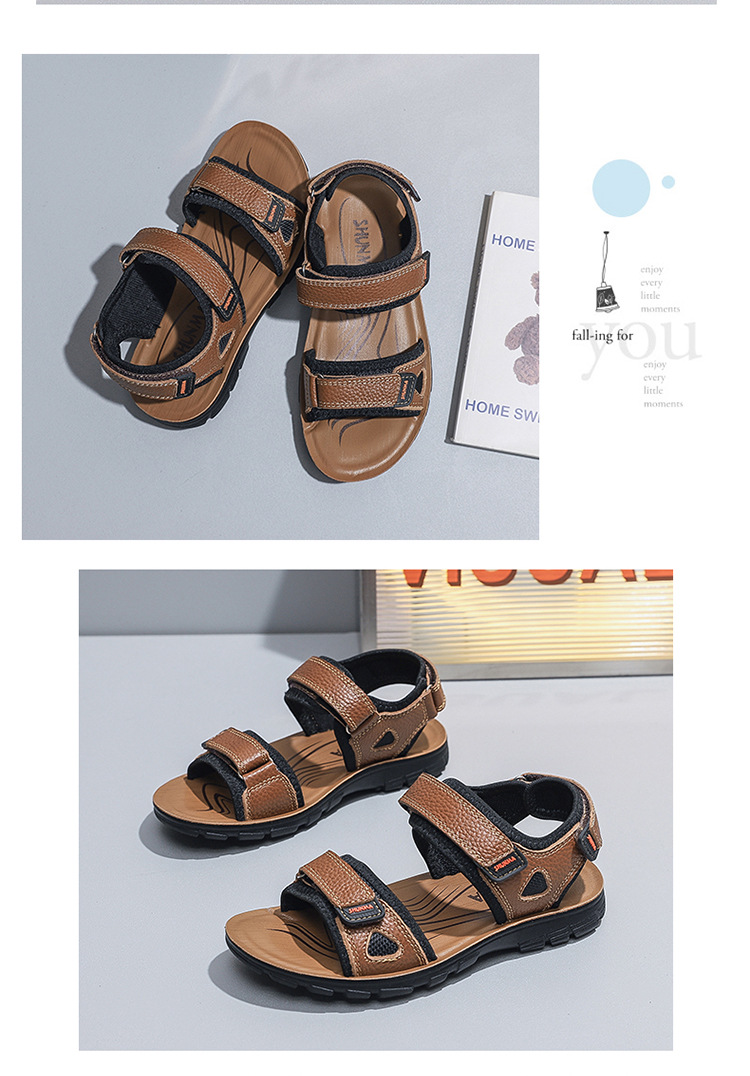 탑 레이어 Cowhide Boy's Sandals 정품 가죽 여름 소프트 솔 통기성 스포츠 샌들 중다 어린이 샌들 학생 비치 슈즈스토어 가기