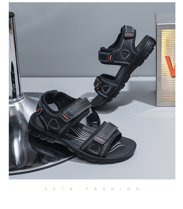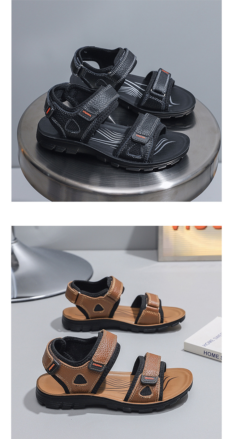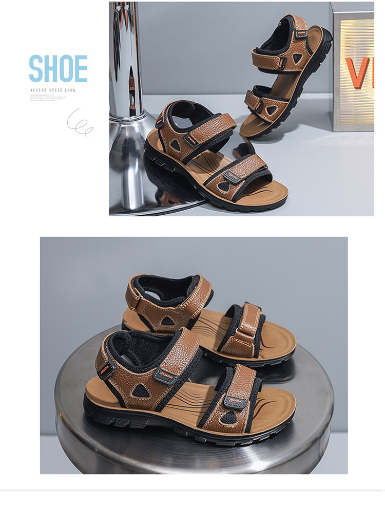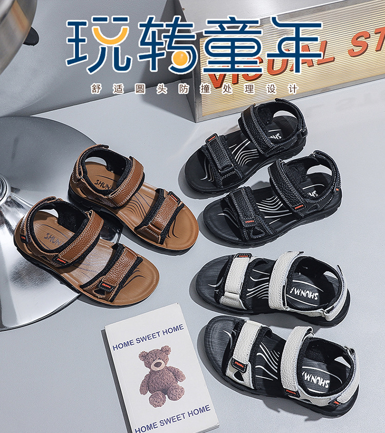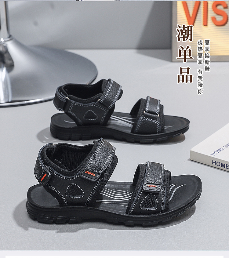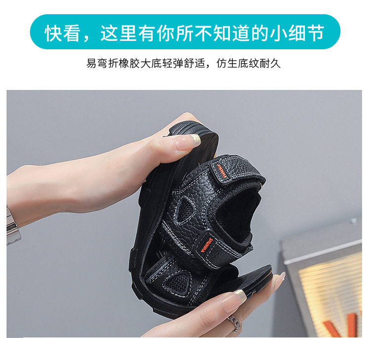 탑 레이어 Cowhide Boy's Sandals 정품 가죽 여름 소프트 솔 통기성 스포츠 샌들 중다 어린이 샌들 학생 비치 슈즈스토어 가기