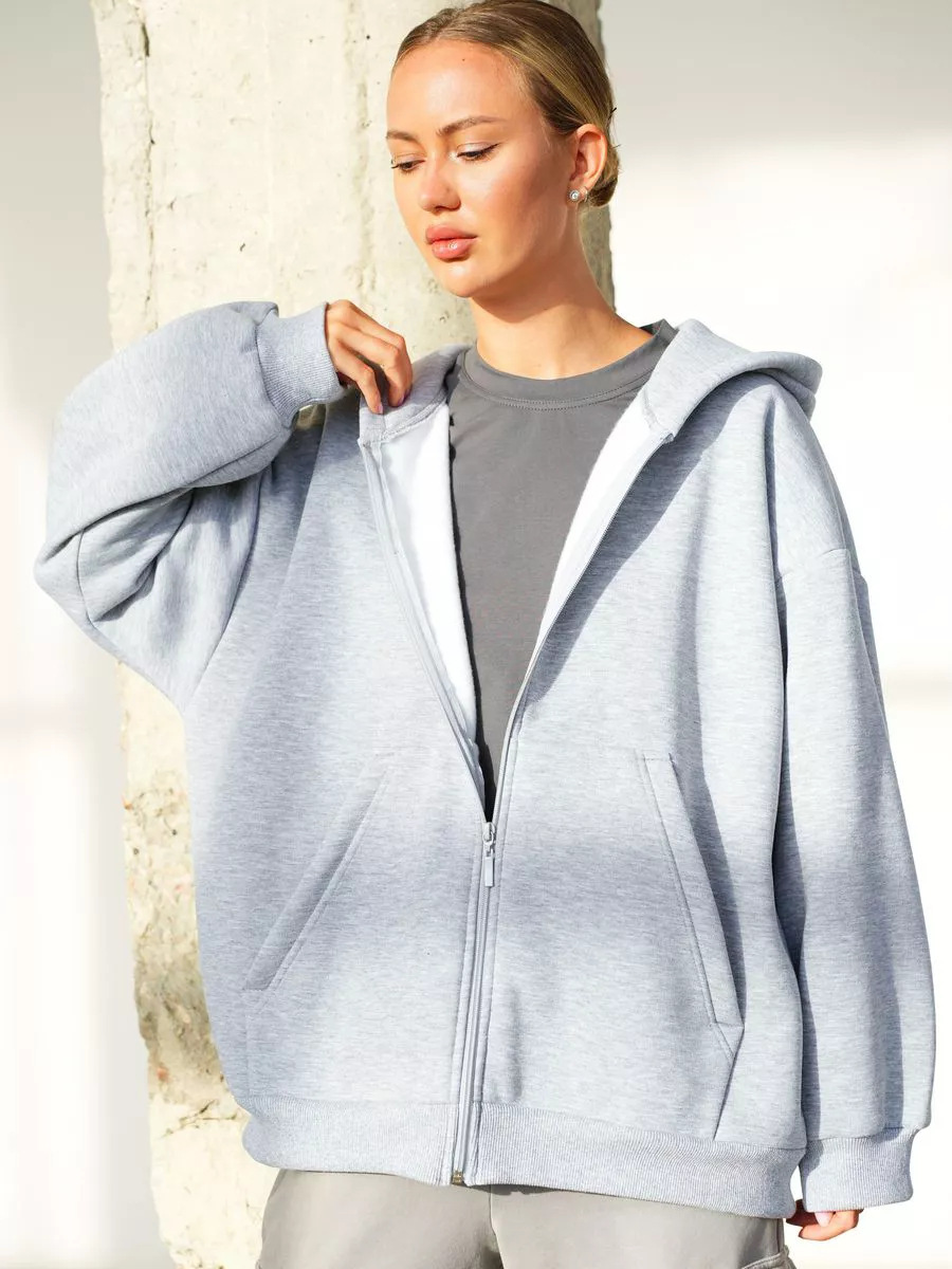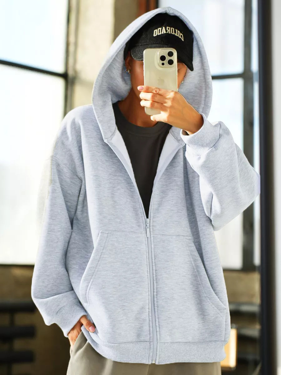 아마존 가을 새로운 2024 유럽과 미국의 단색 여성 느슨한 긴 소매 카디건 후드 스웨터 지퍼 스웨트 셔츠