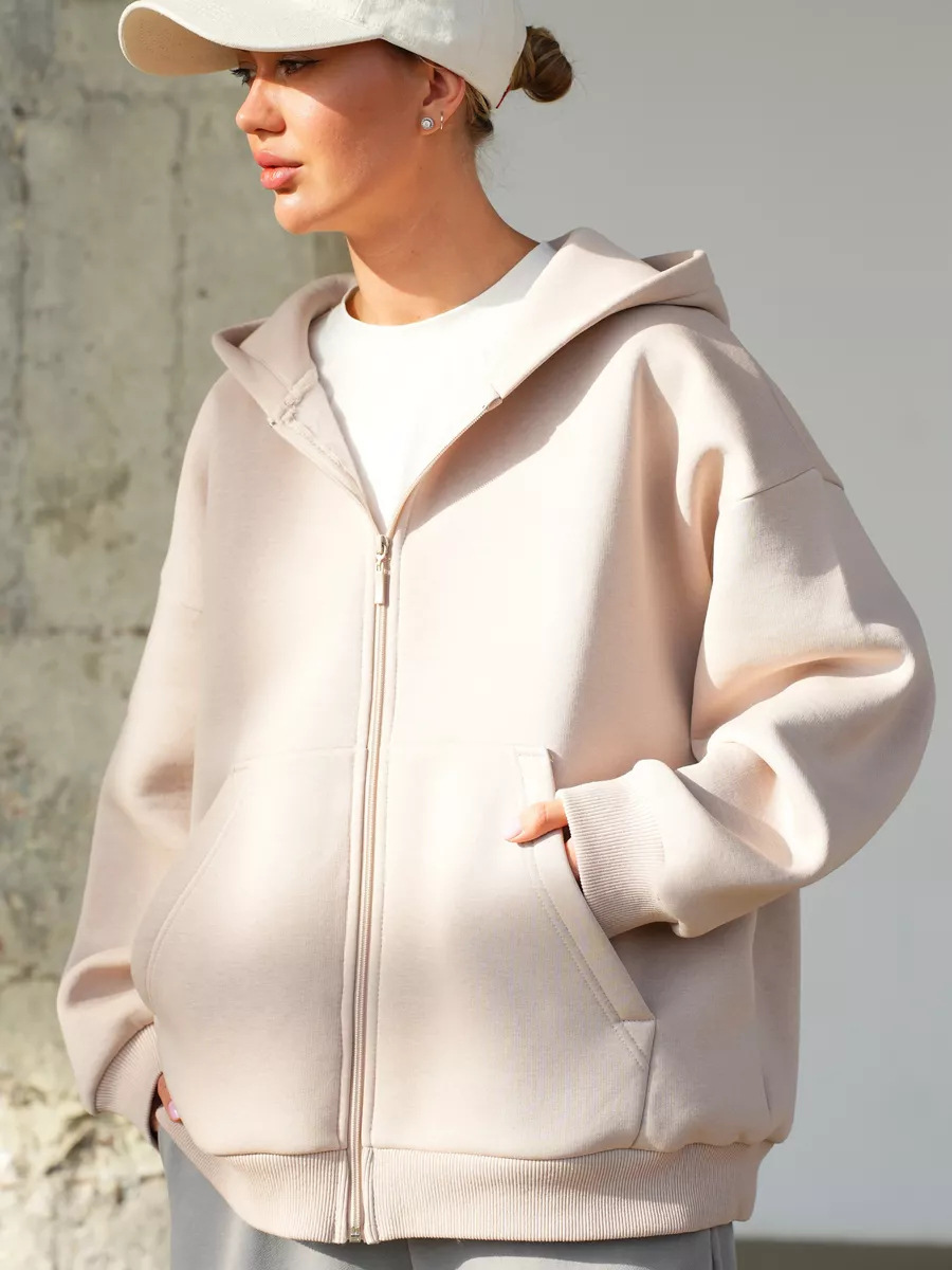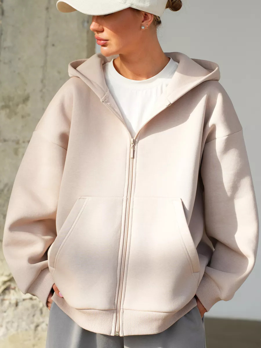 아마존 가을 새로운 2024 유럽과 미국의 단색 여성 느슨한 긴 소매 카디건 후드 스웨터 지퍼 스웨트 셔츠스토어 가기