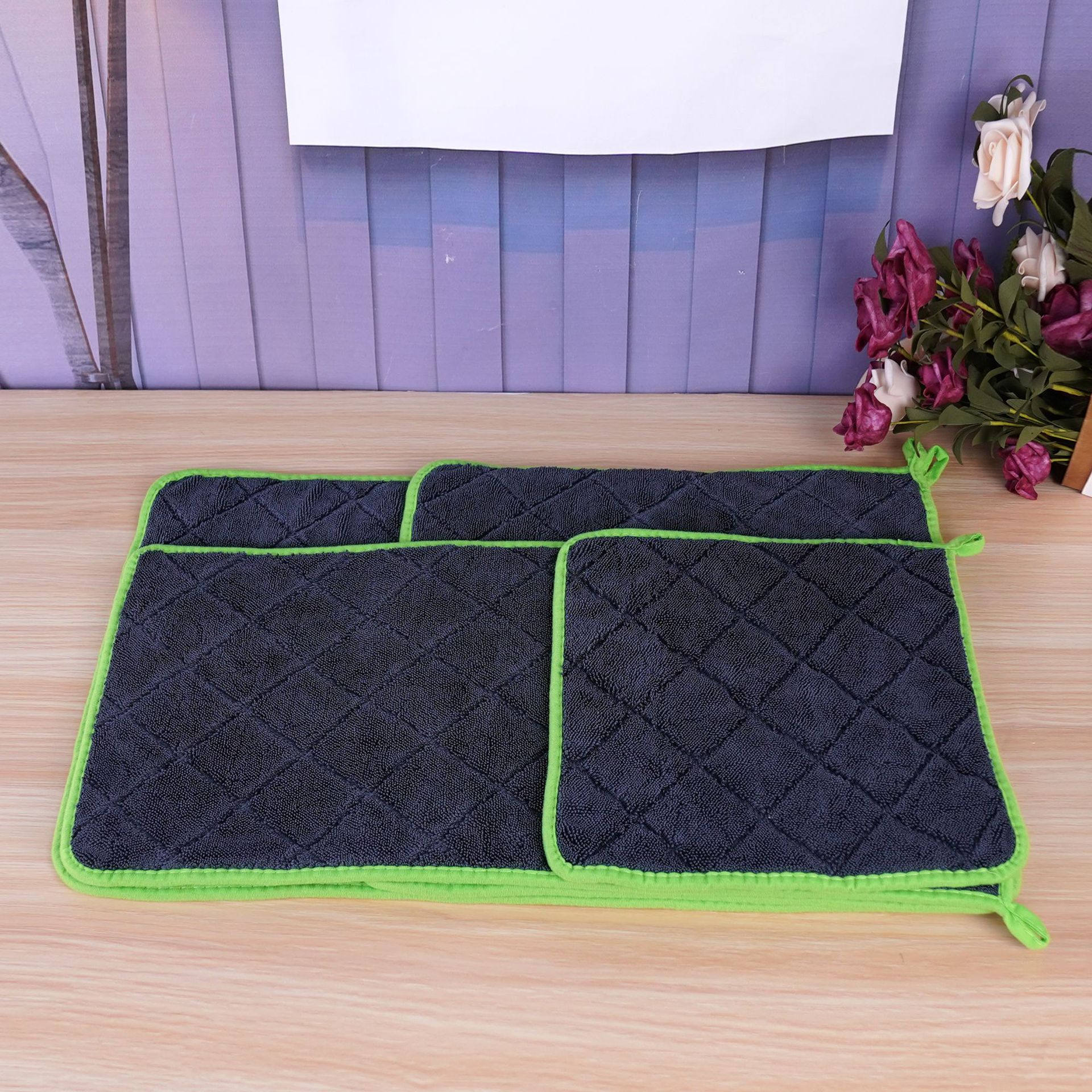 컬러풀한 가장자리가 있는 두꺼운 자동차 닦는 수건, 빠르게 물을 흡수하고 자국이 남지 않는 양면 두꺼운 꼬임 자동차 세차 수건