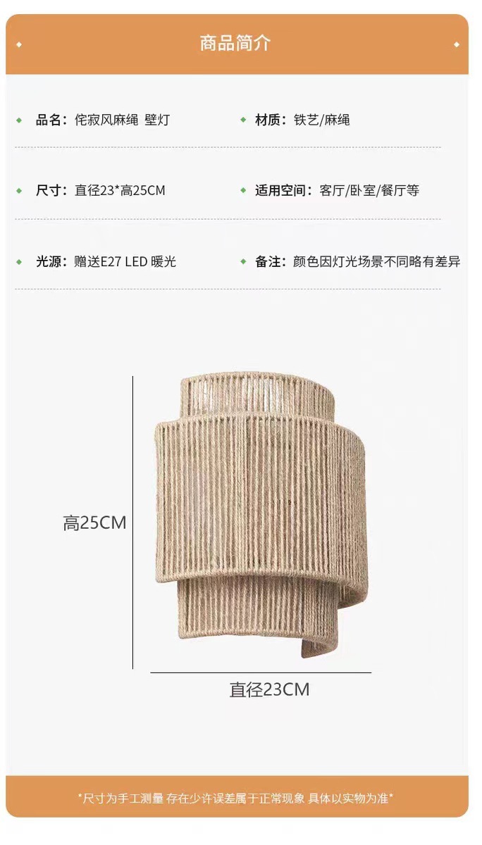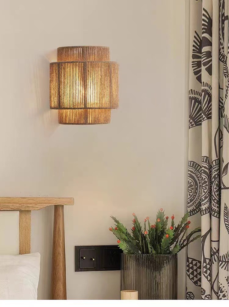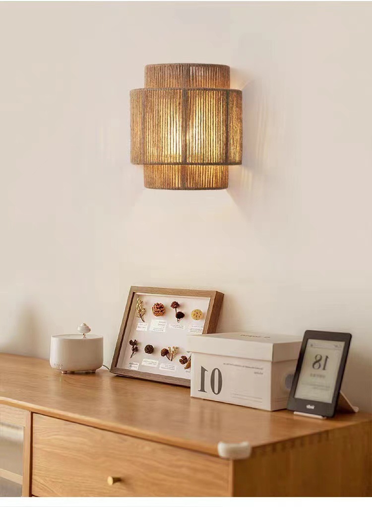 일본식 크리에이티브 개성 마 끈 침실 식당 민슈쿠 복고풍 수제 직조 심플 거실 호텔 벽등
