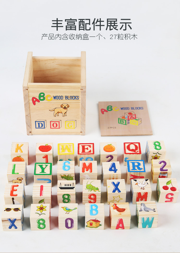 나무로 만든 27개의 ABC 영어 알파벳 인쇄 블록 쌓기 장난감 유아 조기 교육용 대형 블록스토어 가기