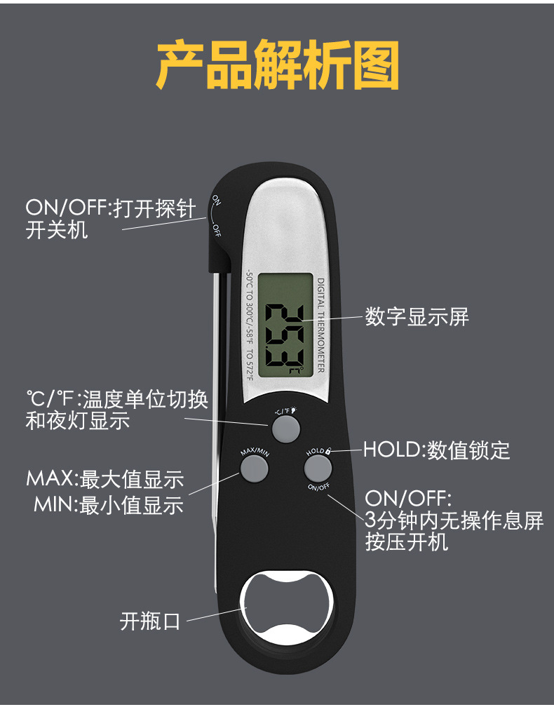 즉시 판독되는 식품 온도계, 요리용, 바베큐용, 에어프라이어용, 그릴용 프로브, 주방용품, 바베큐 액세서리