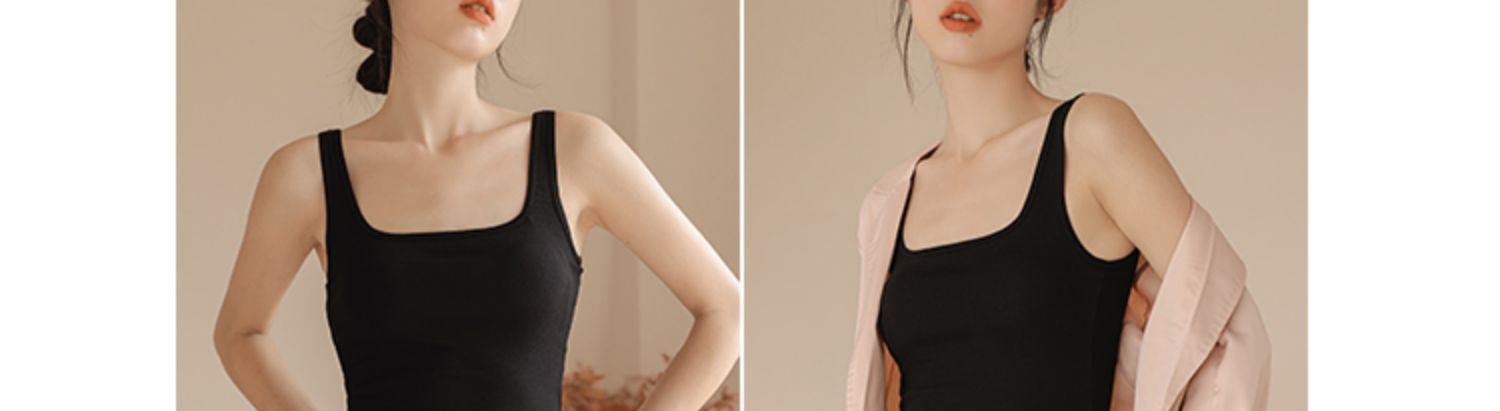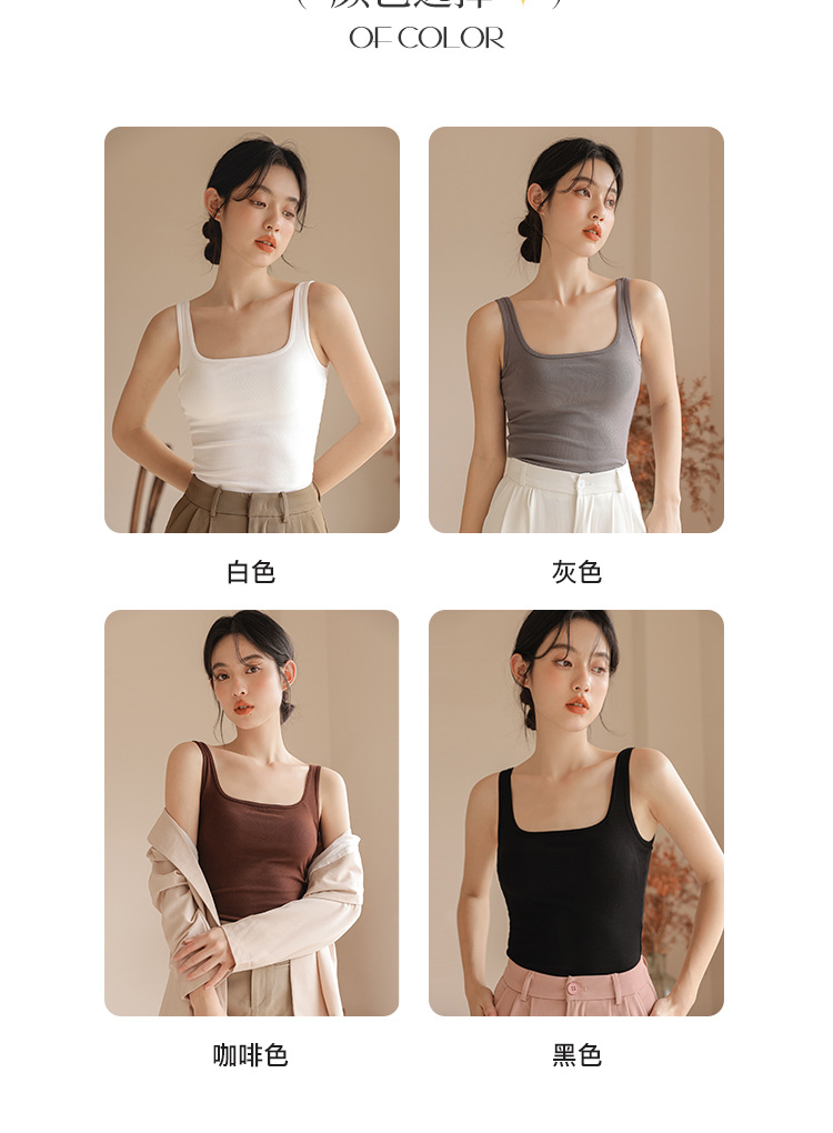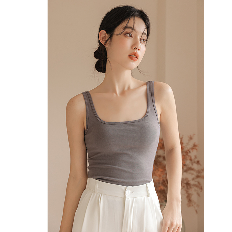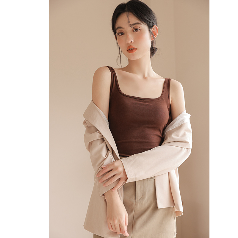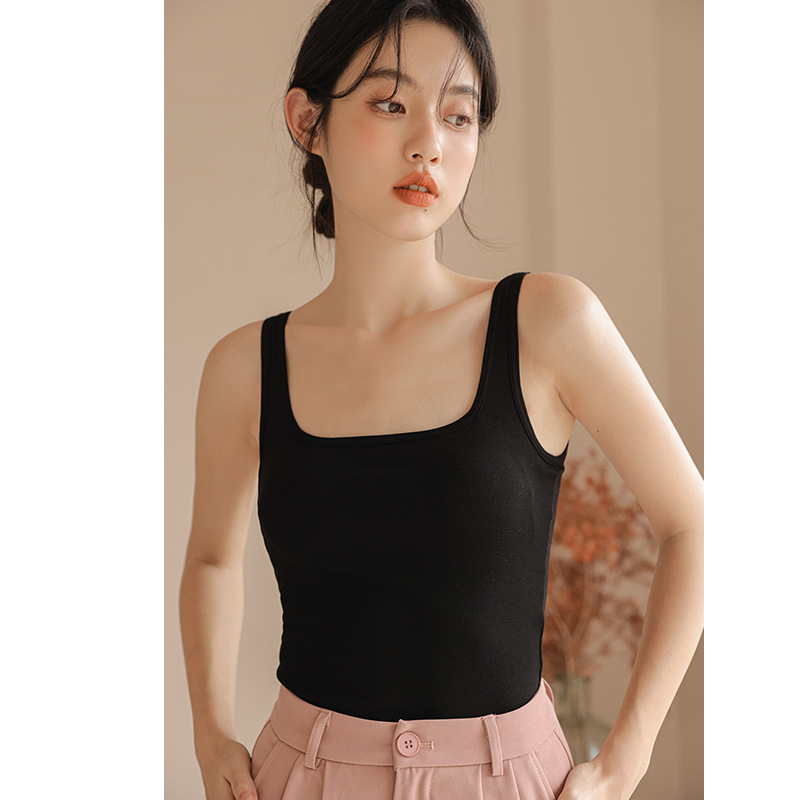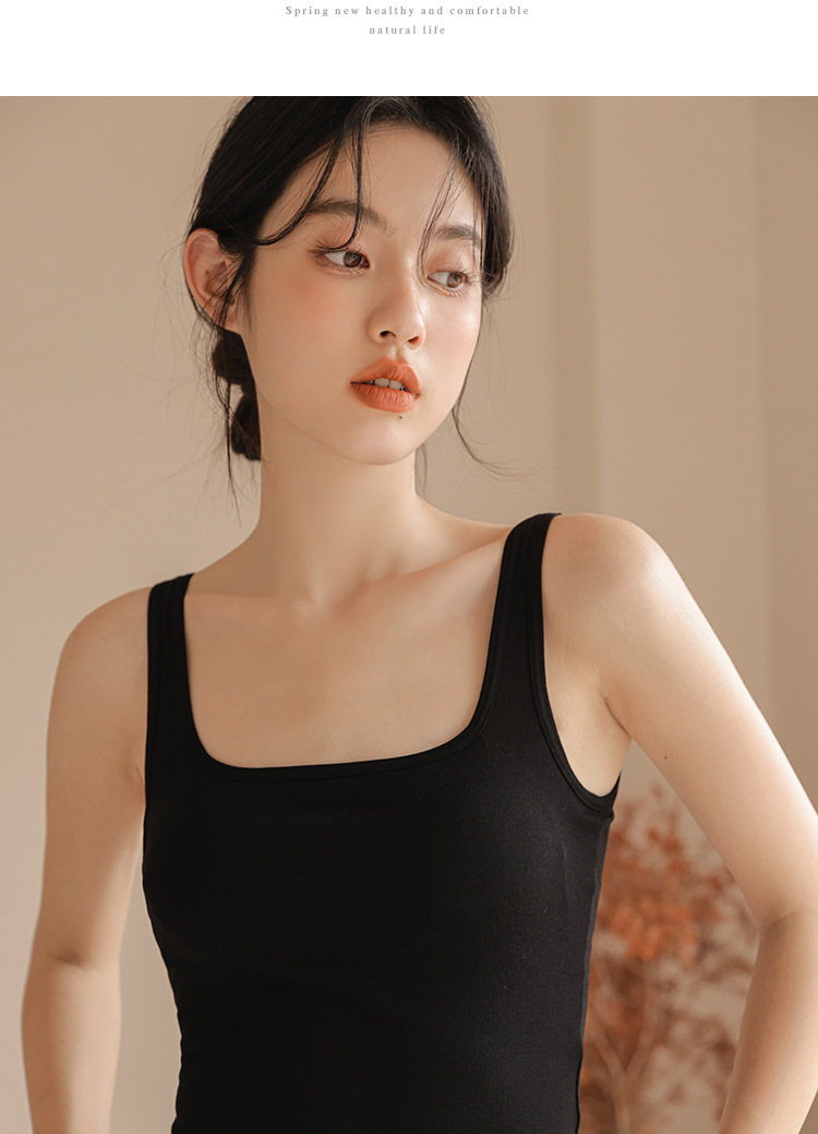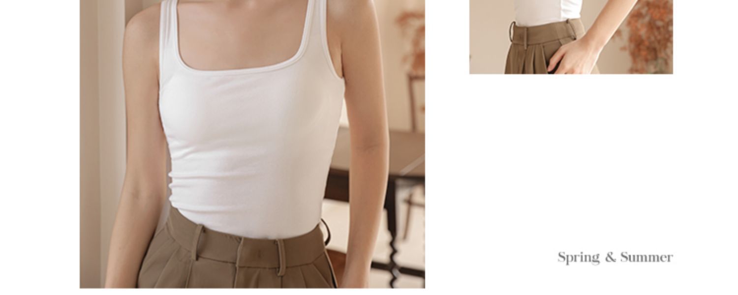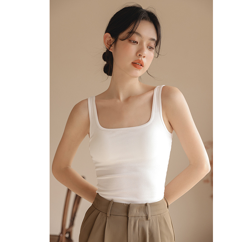 봄여름 여성용 스퀘어넥 캐미솔, 등이 예쁜 민소매 아우터, 이너웨어, 가슴패드 올인원 화이트 보텀탑스토어 가기