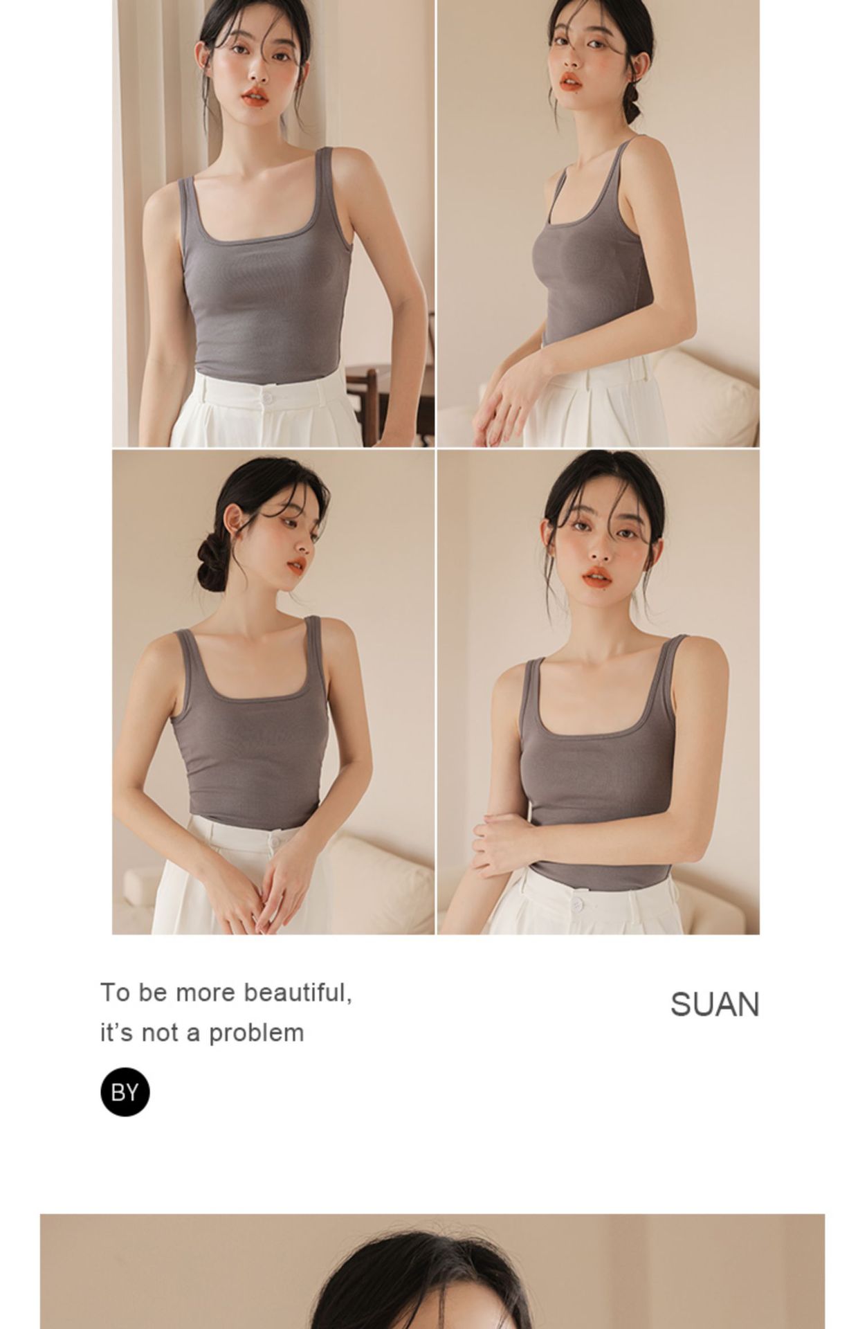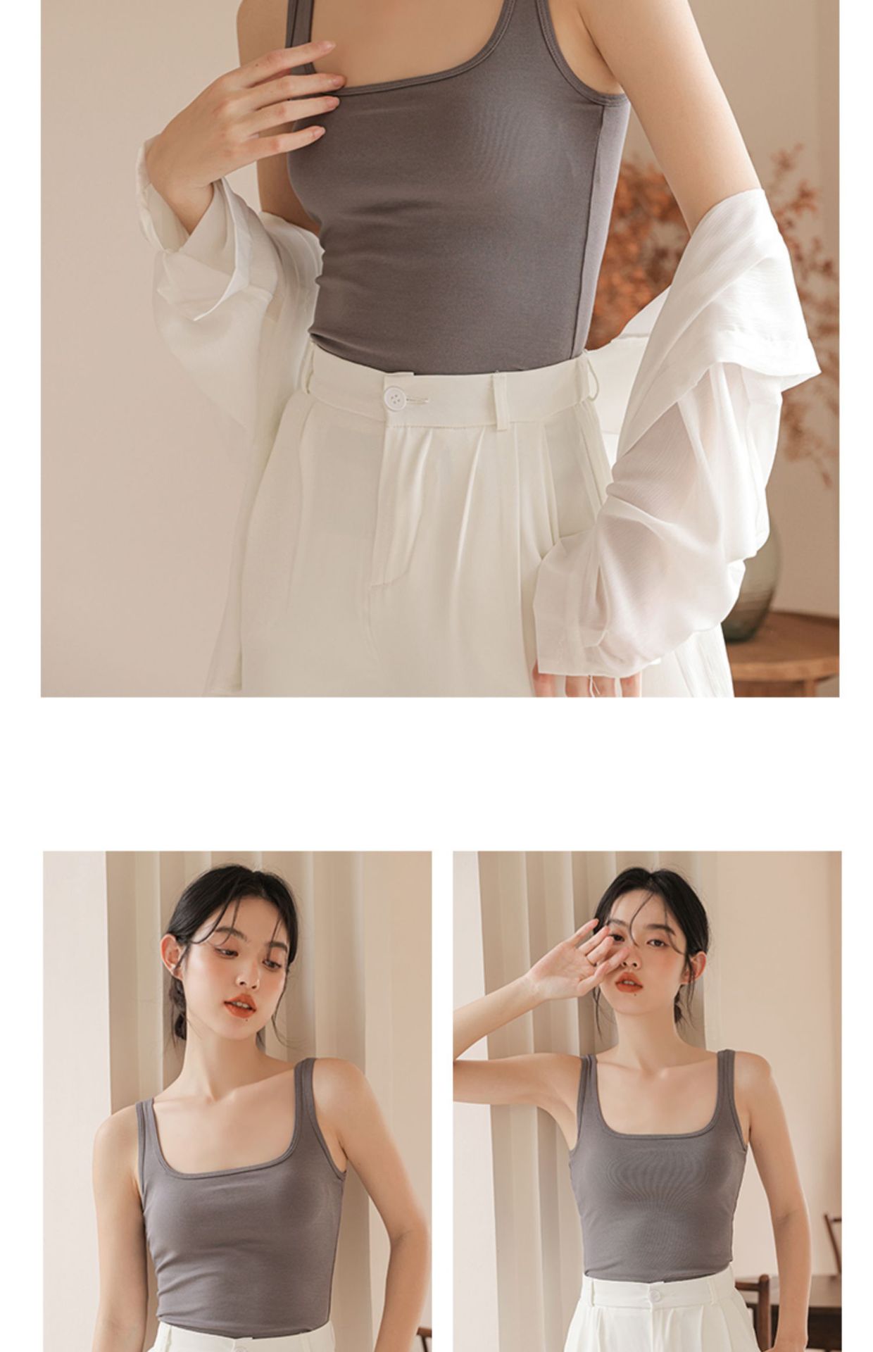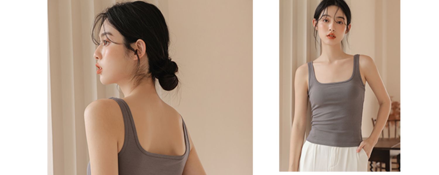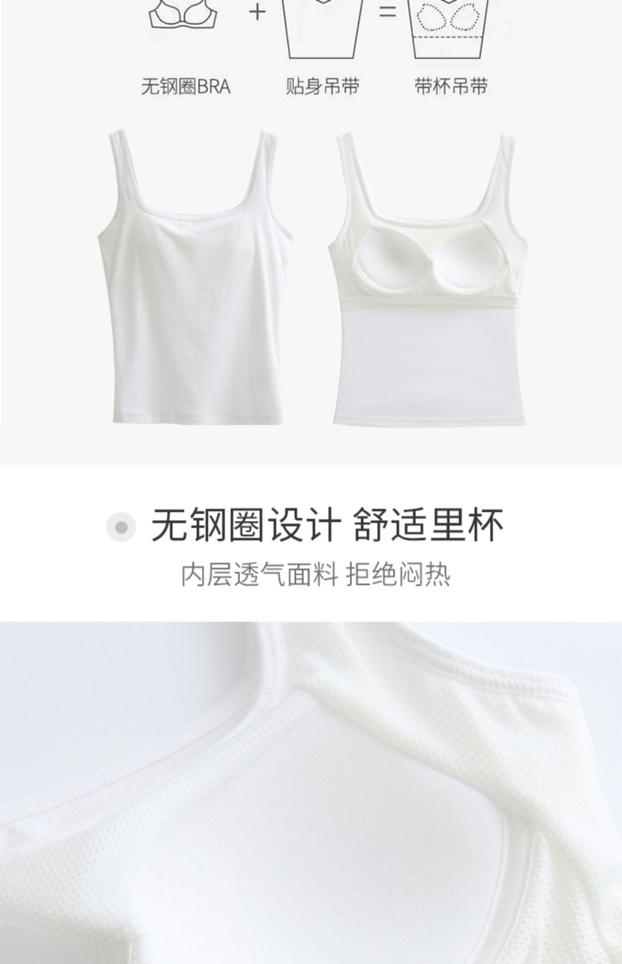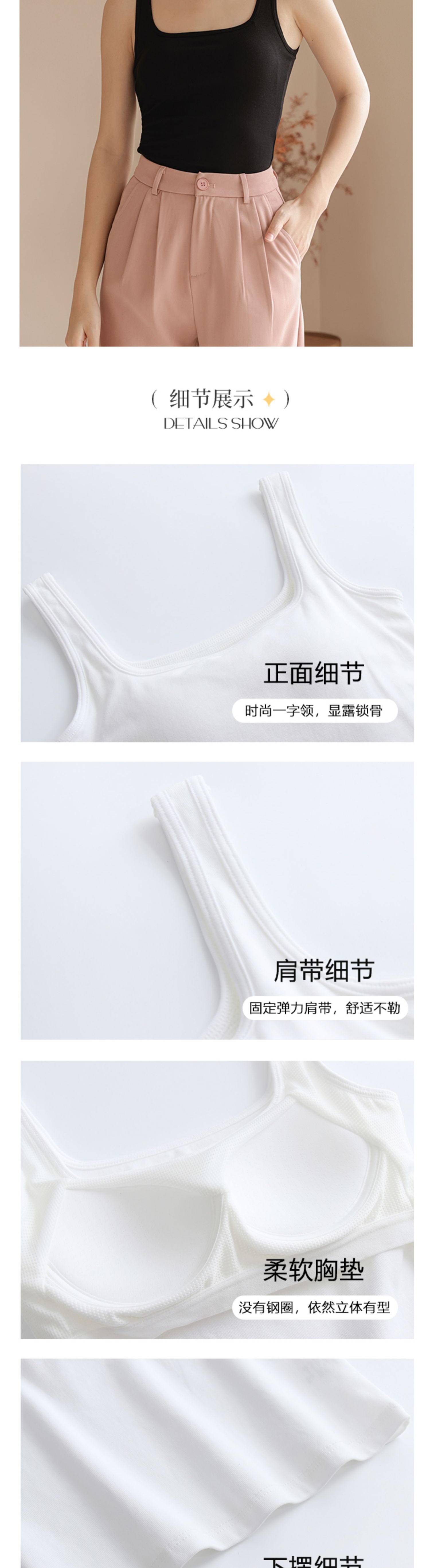 봄여름 여성용 스퀘어넥 캐미솔, 등이 예쁜 민소매 아우터, 이너웨어, 가슴패드 올인원 화이트 보텀탑스토어 가기
