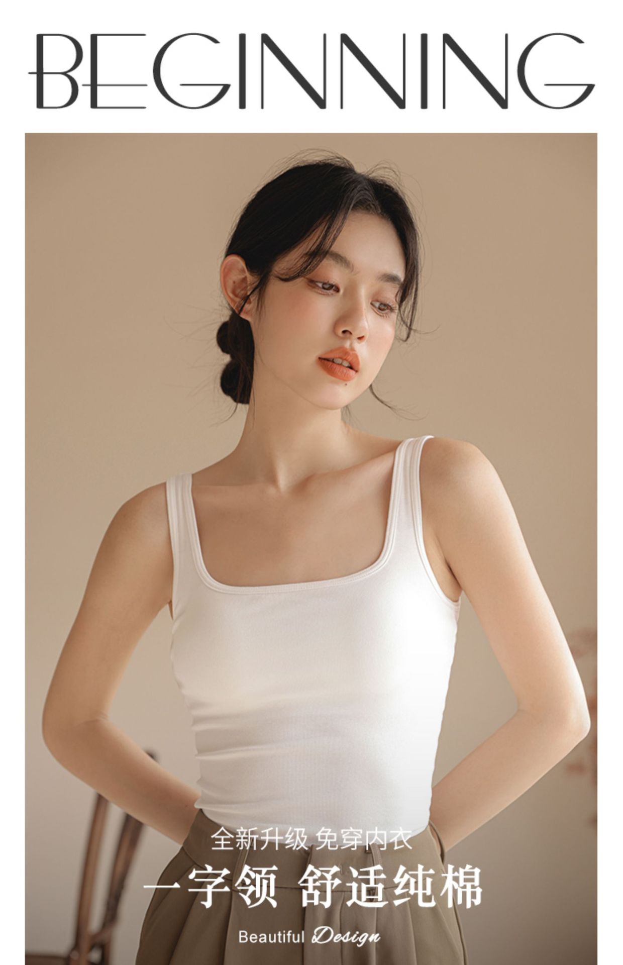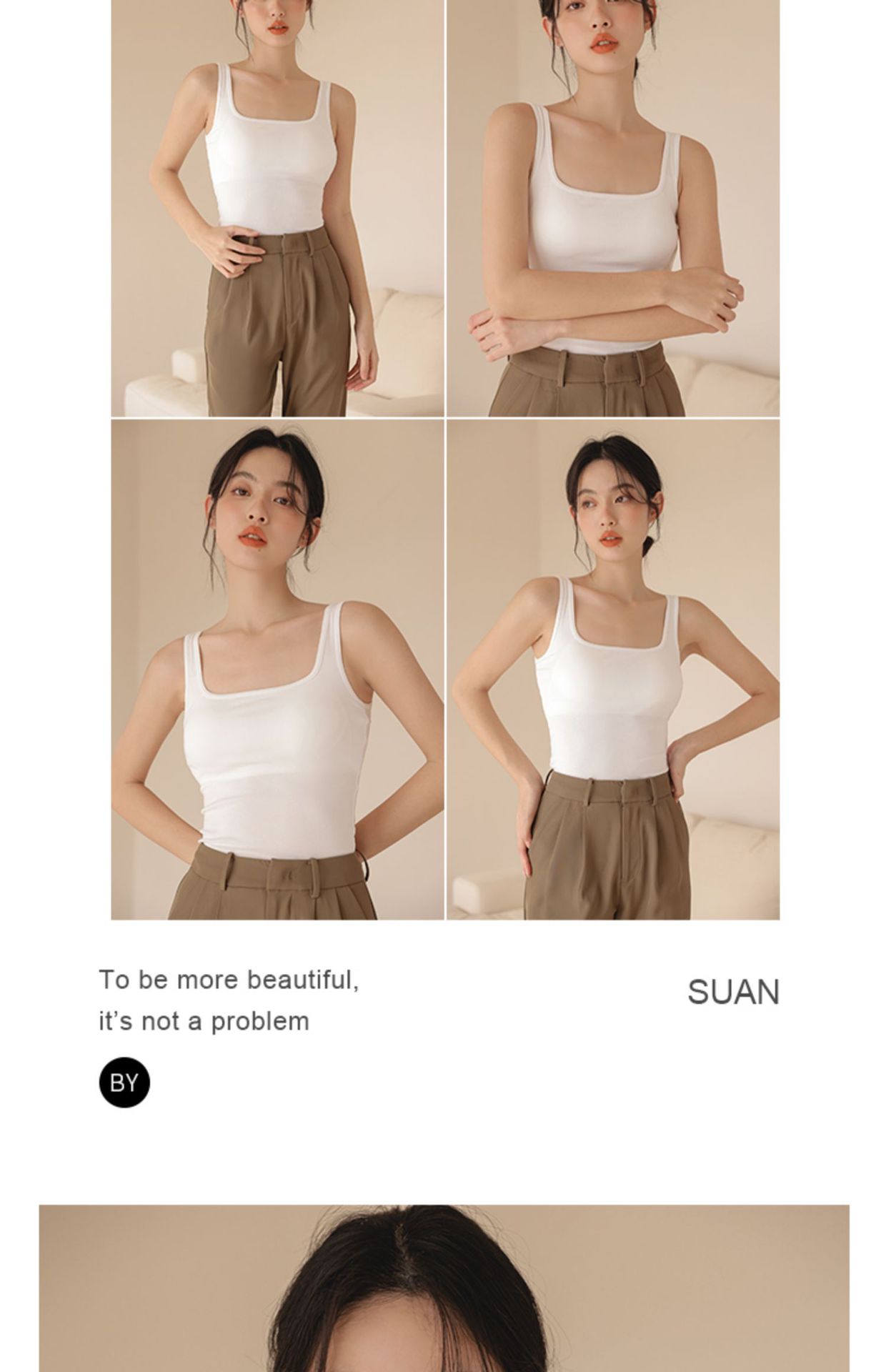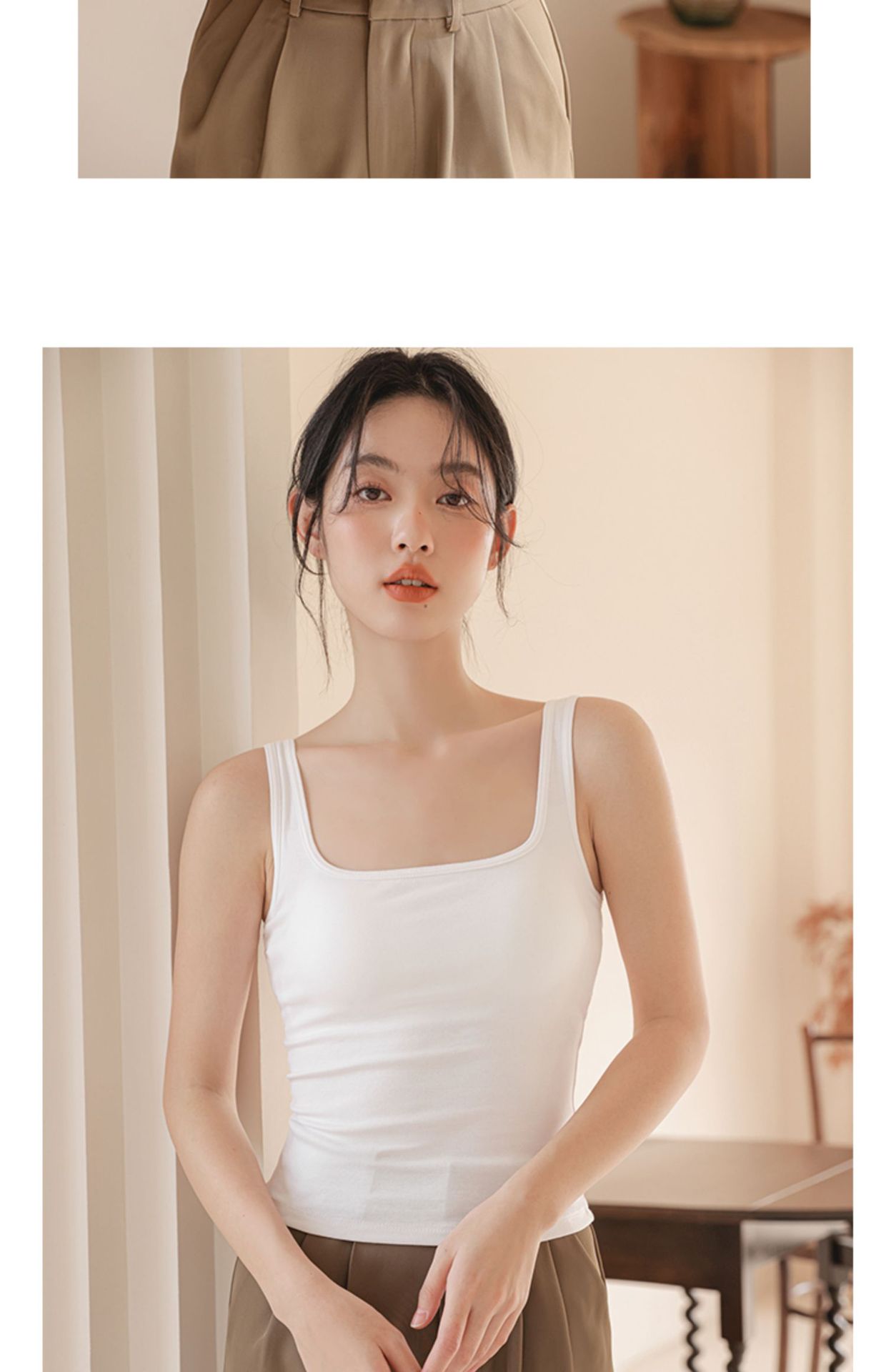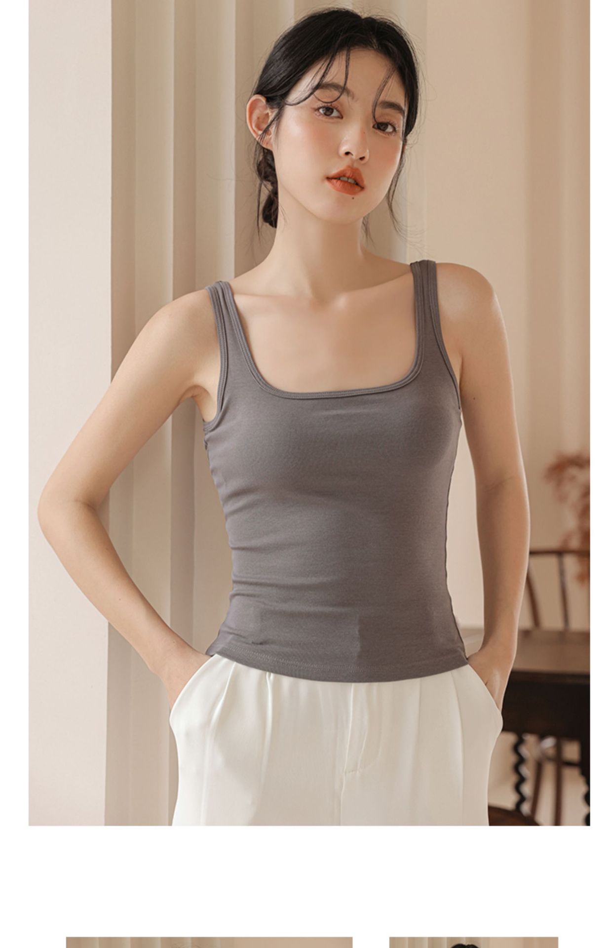 봄여름 여성용 스퀘어넥 캐미솔, 등이 예쁜 민소매 아우터, 이너웨어, 가슴패드 올인원 화이트 보텀탑스토어 가기
