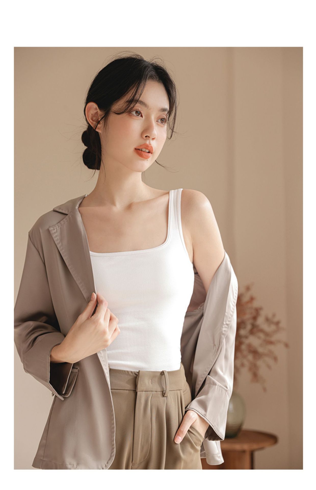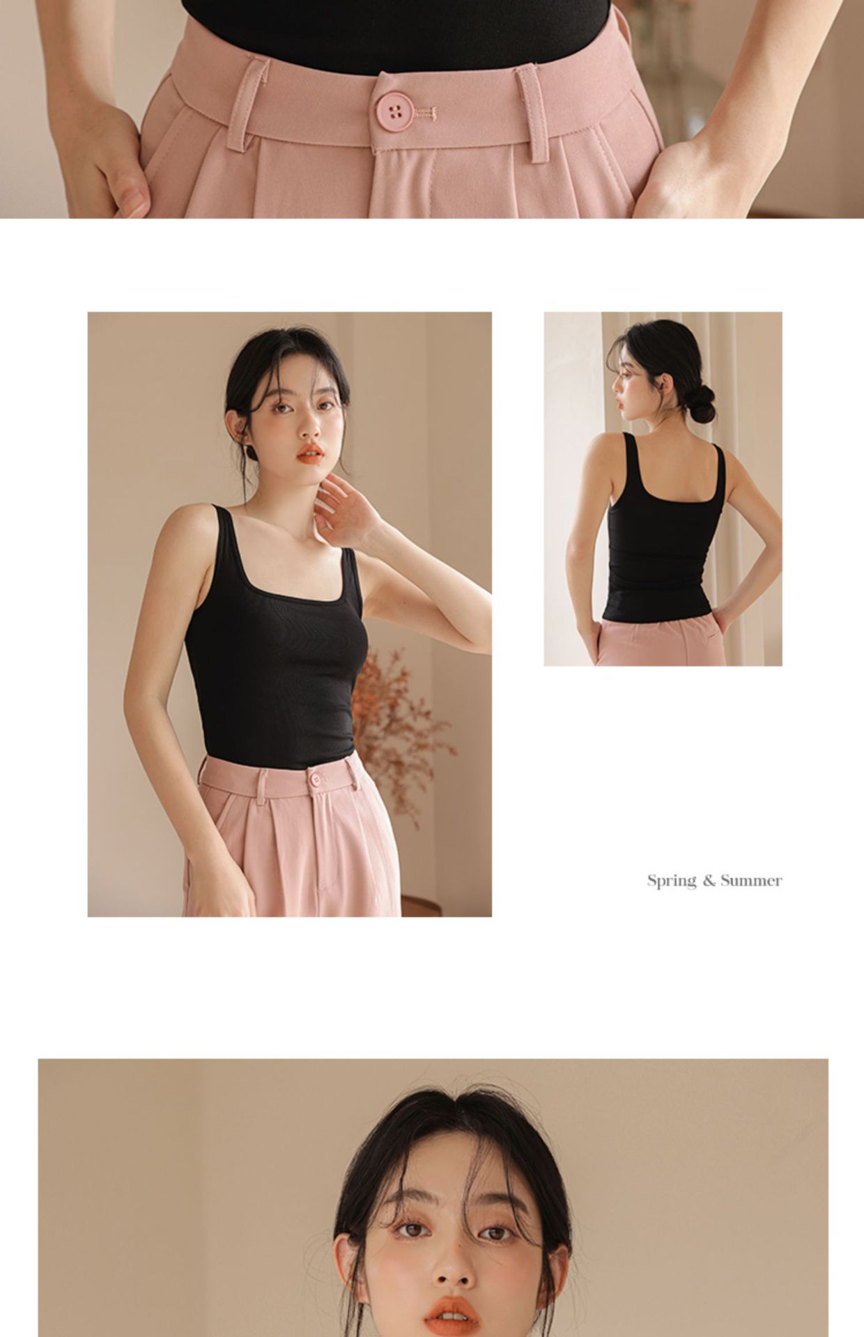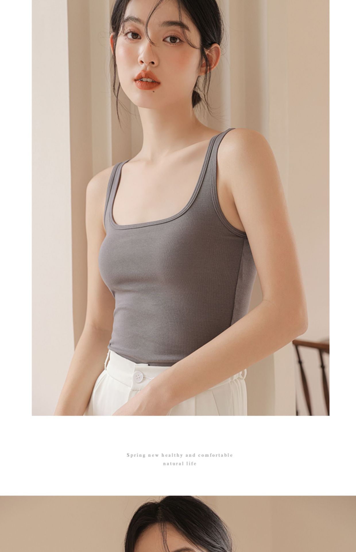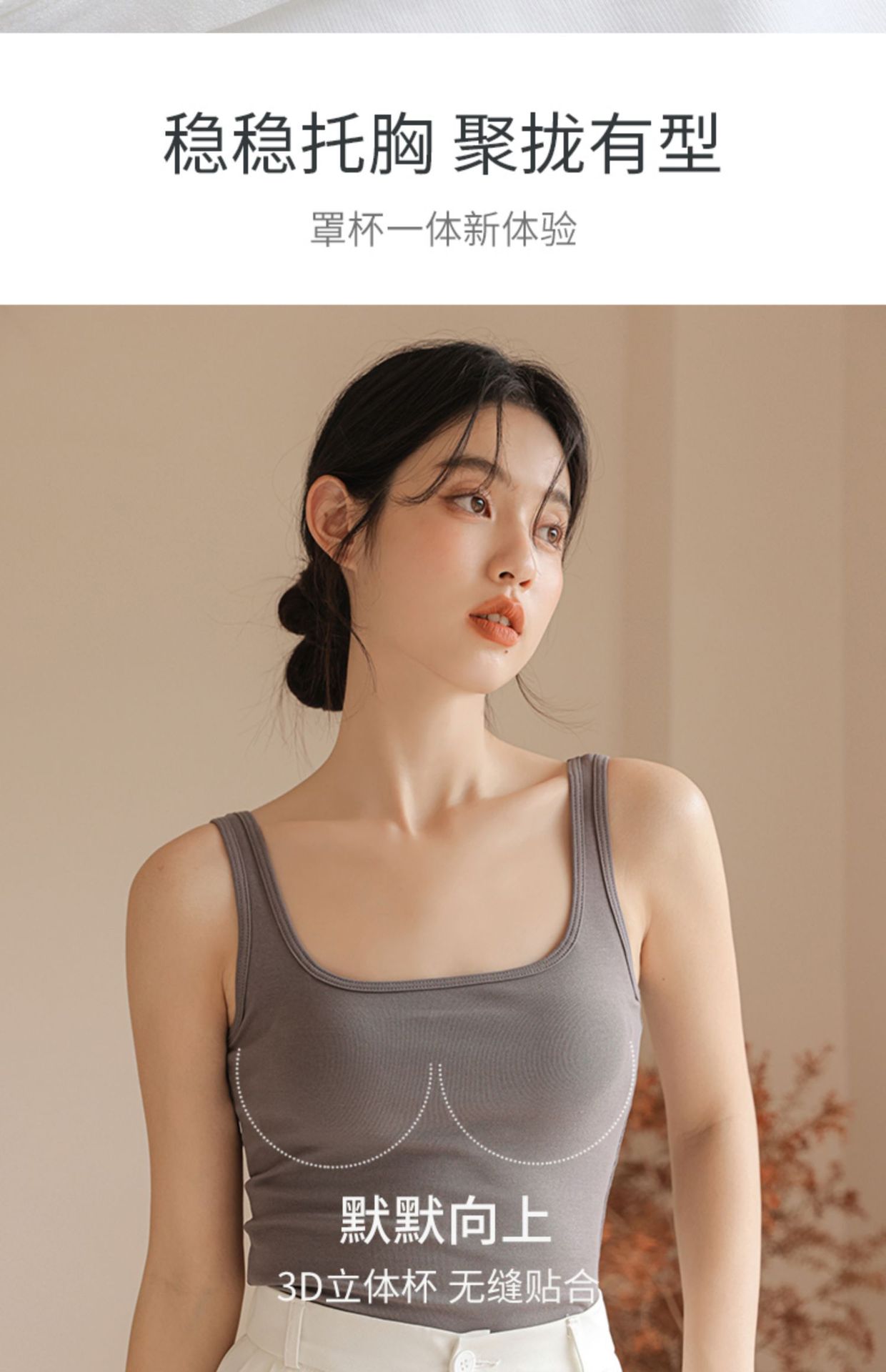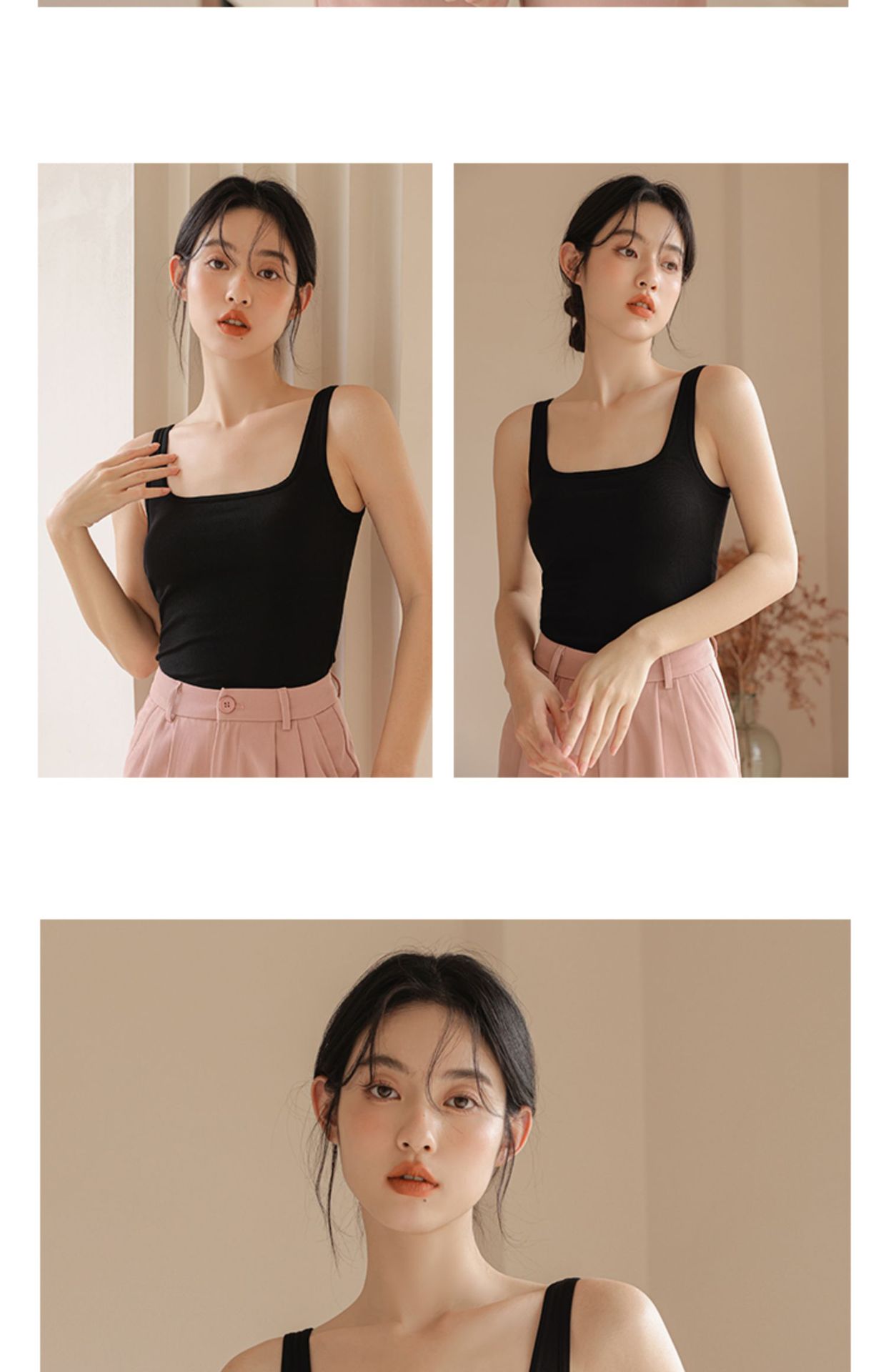 봄여름 여성용 스퀘어넥 캐미솔, 등이 예쁜 민소매 아우터, 이너웨어, 가슴패드 올인원 화이트 보텀탑스토어 가기