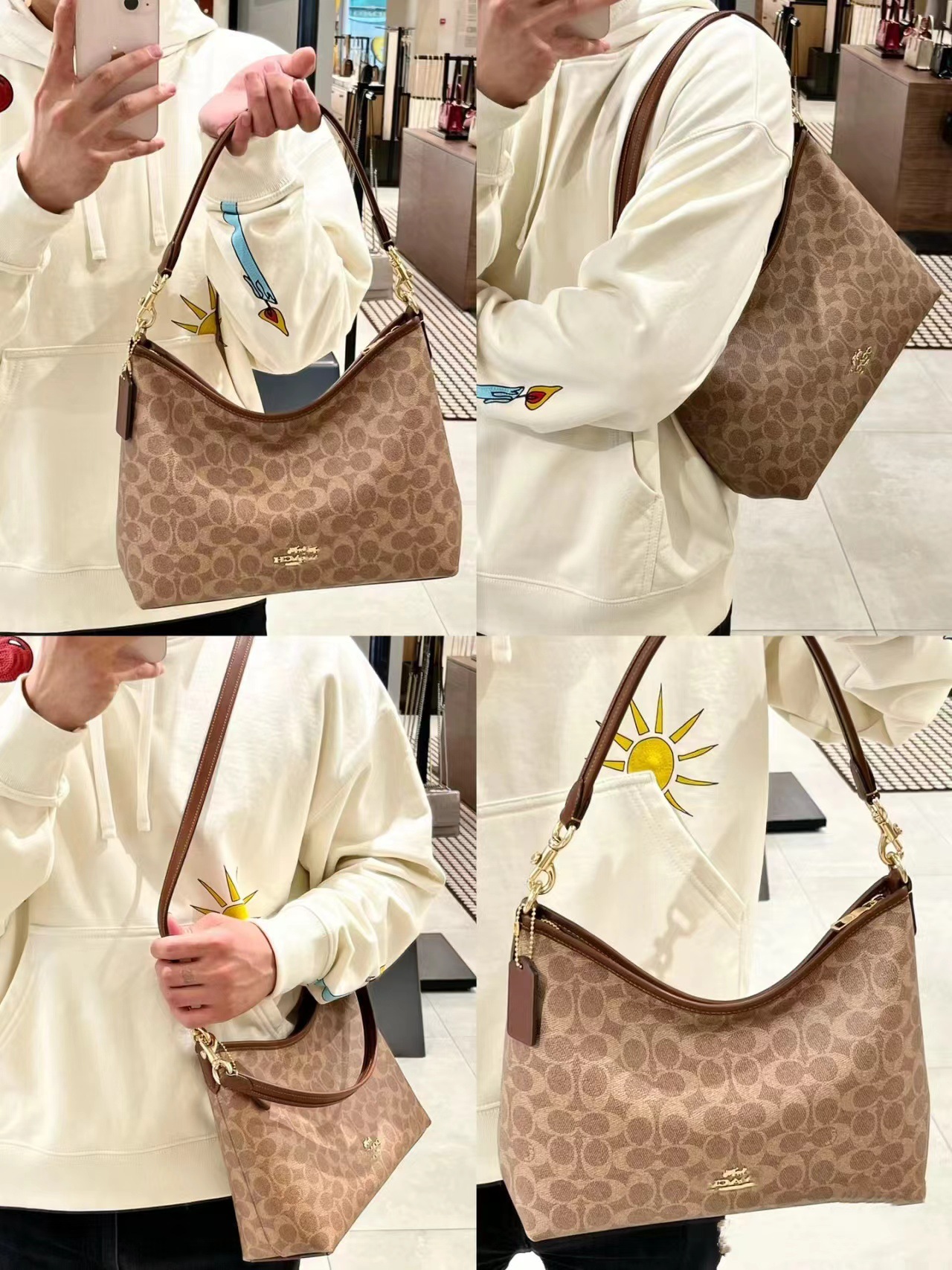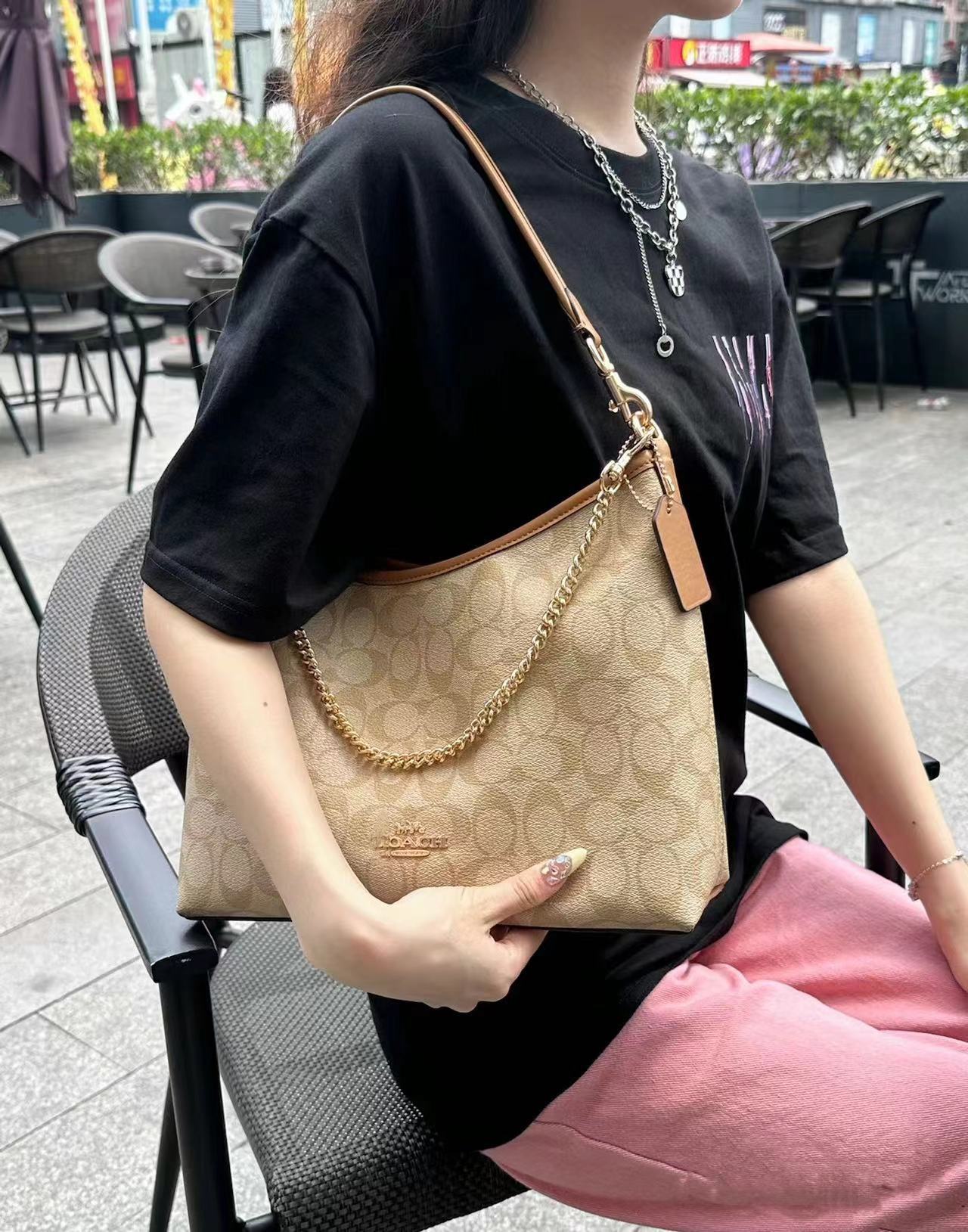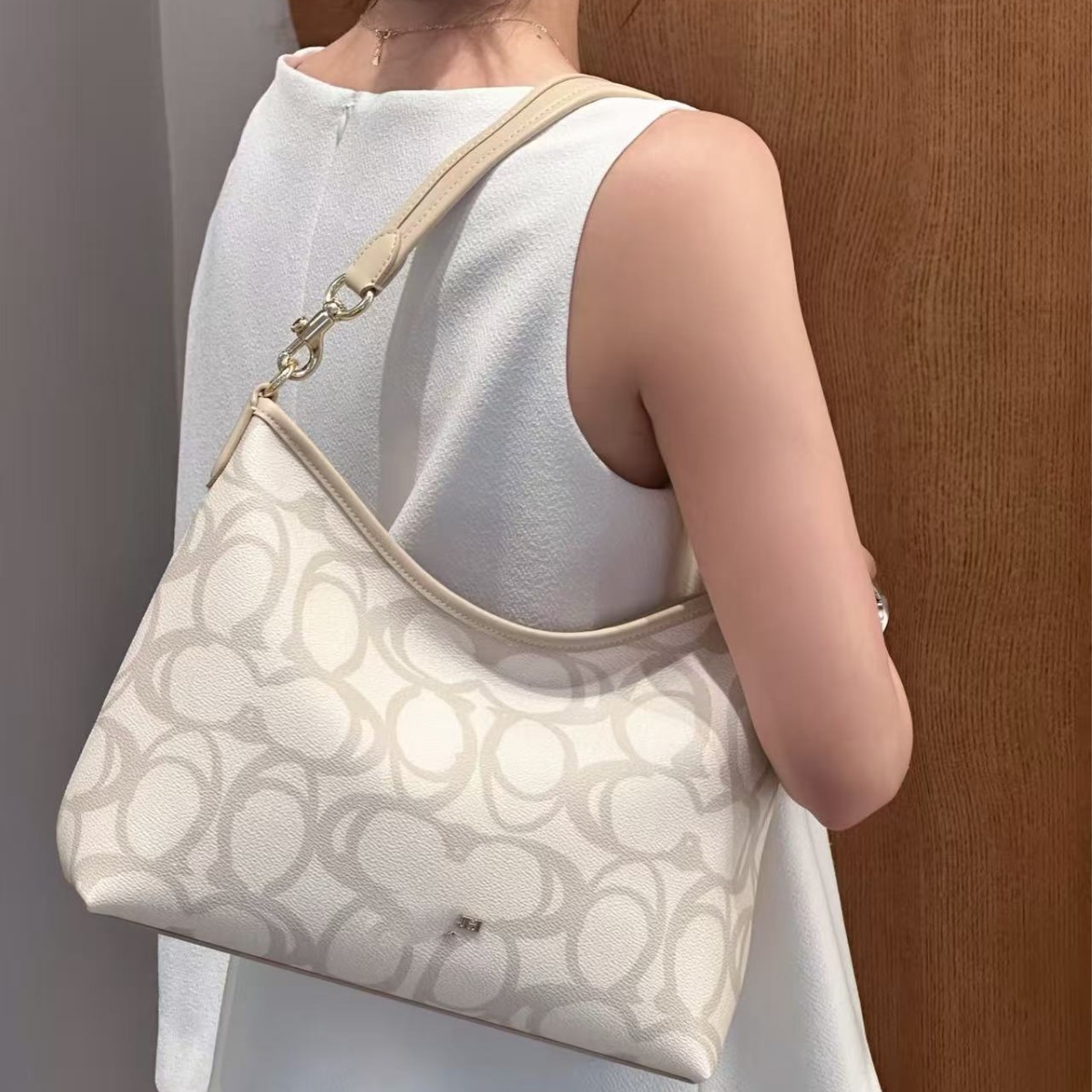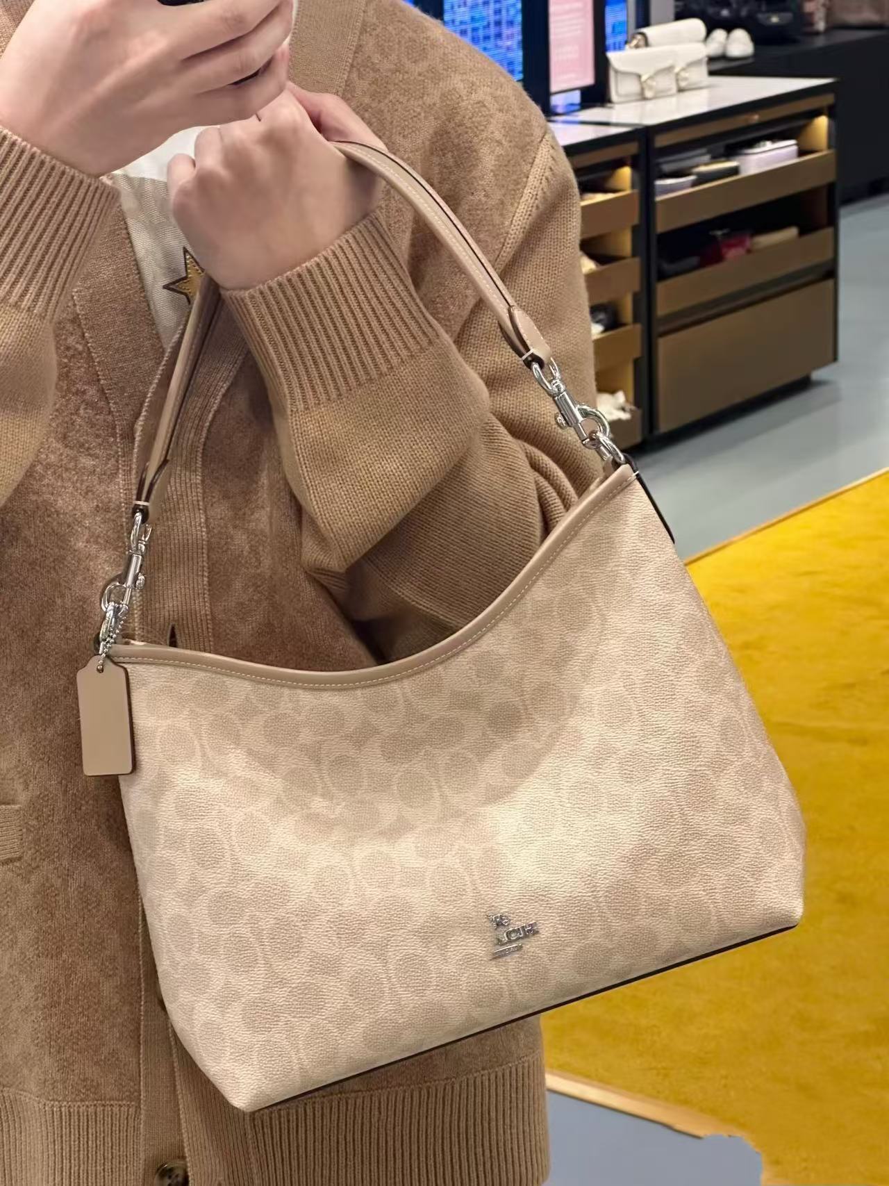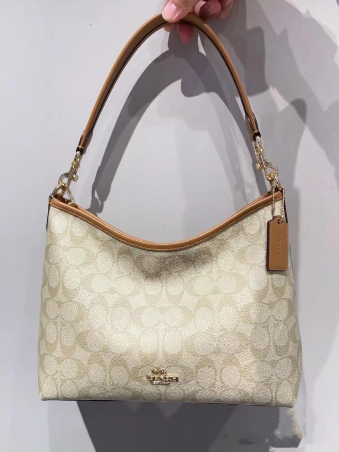 2024 Kou Laurela 단일 어깨 우유 차 컬러 오래 된 꽃 단색 크로스 바디 토트 언더암 가방 대용량 방황 가방스토어 가기