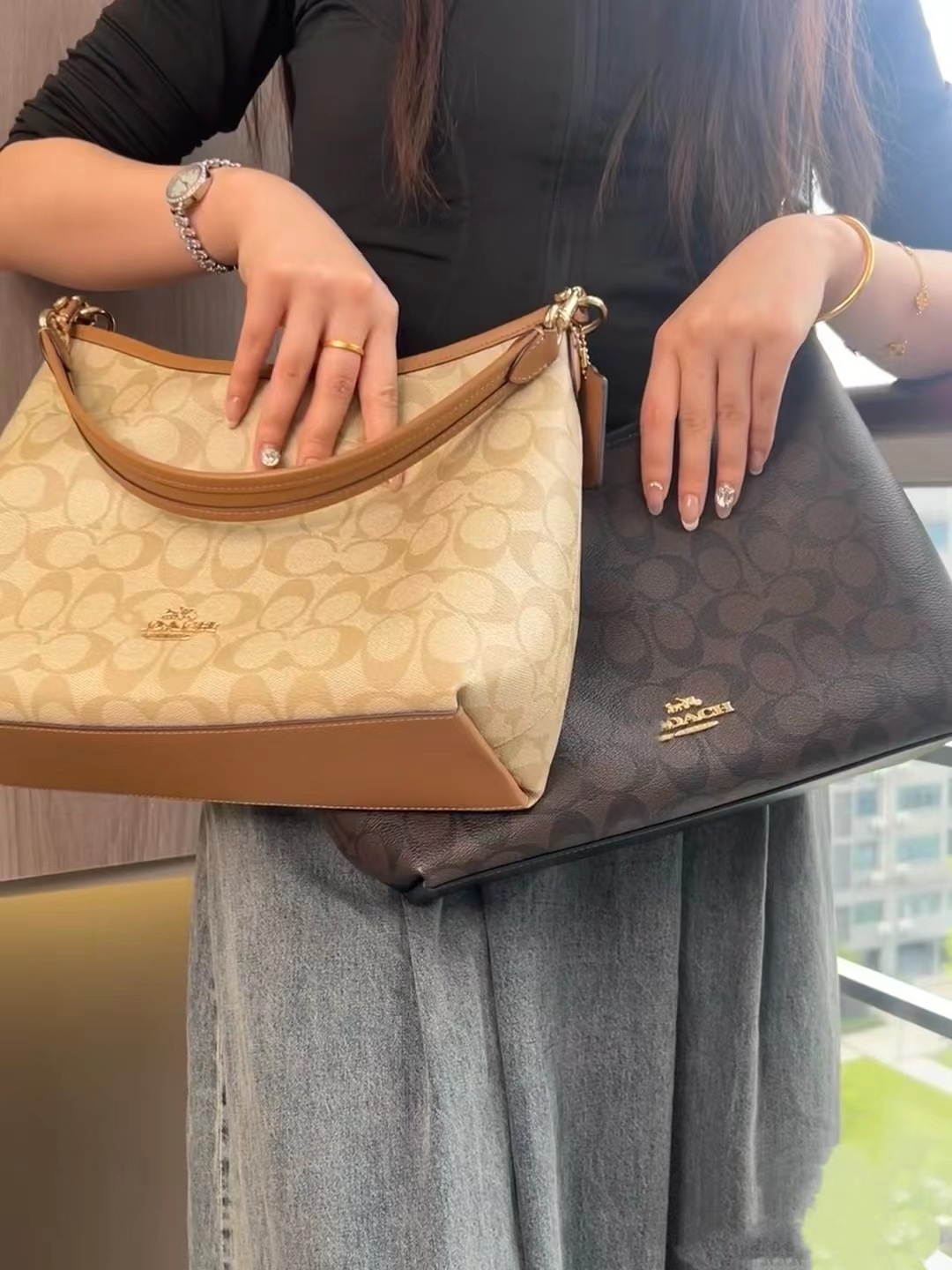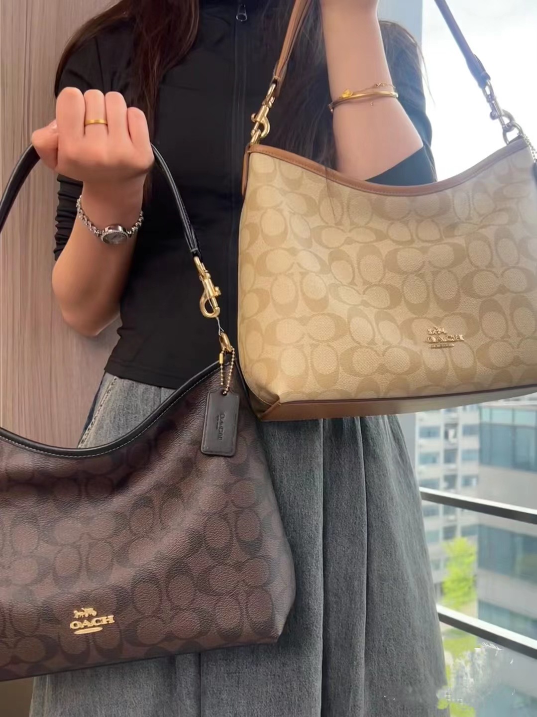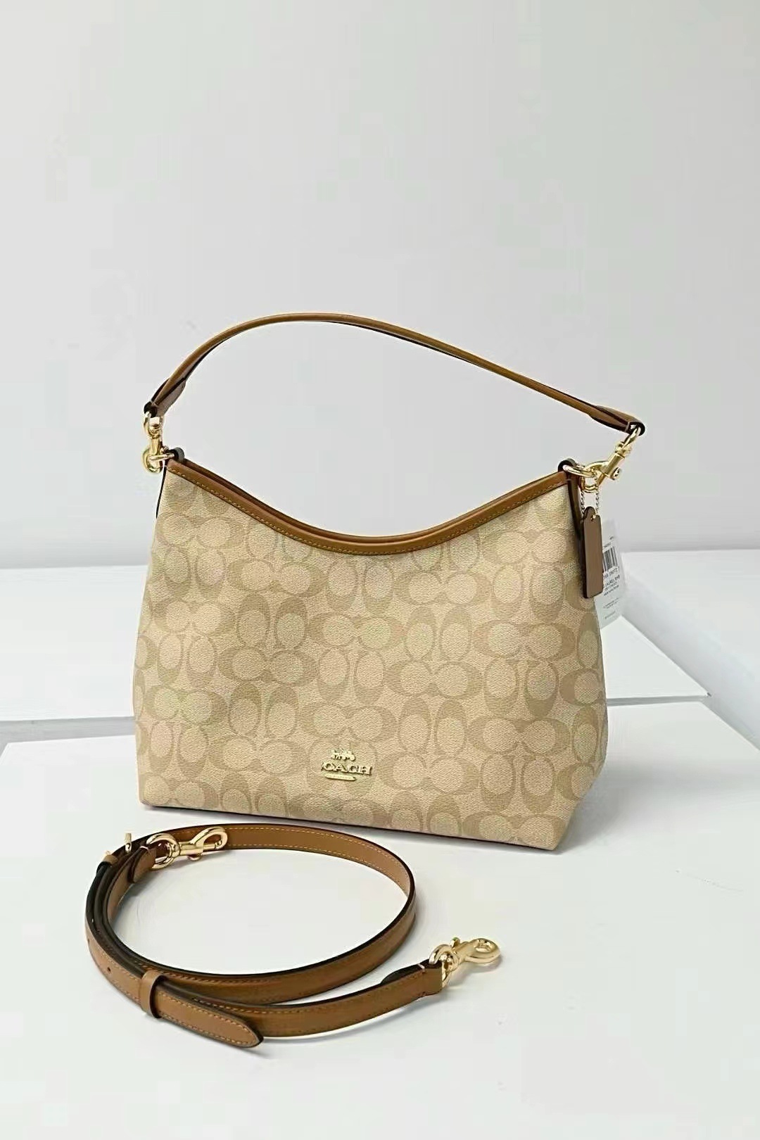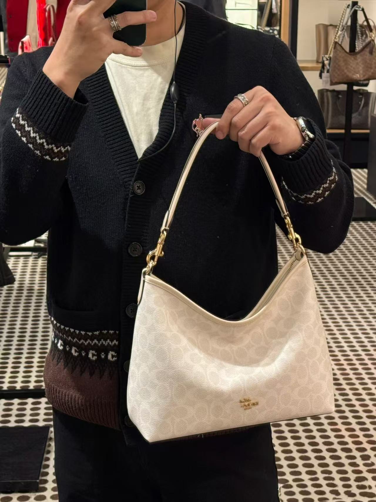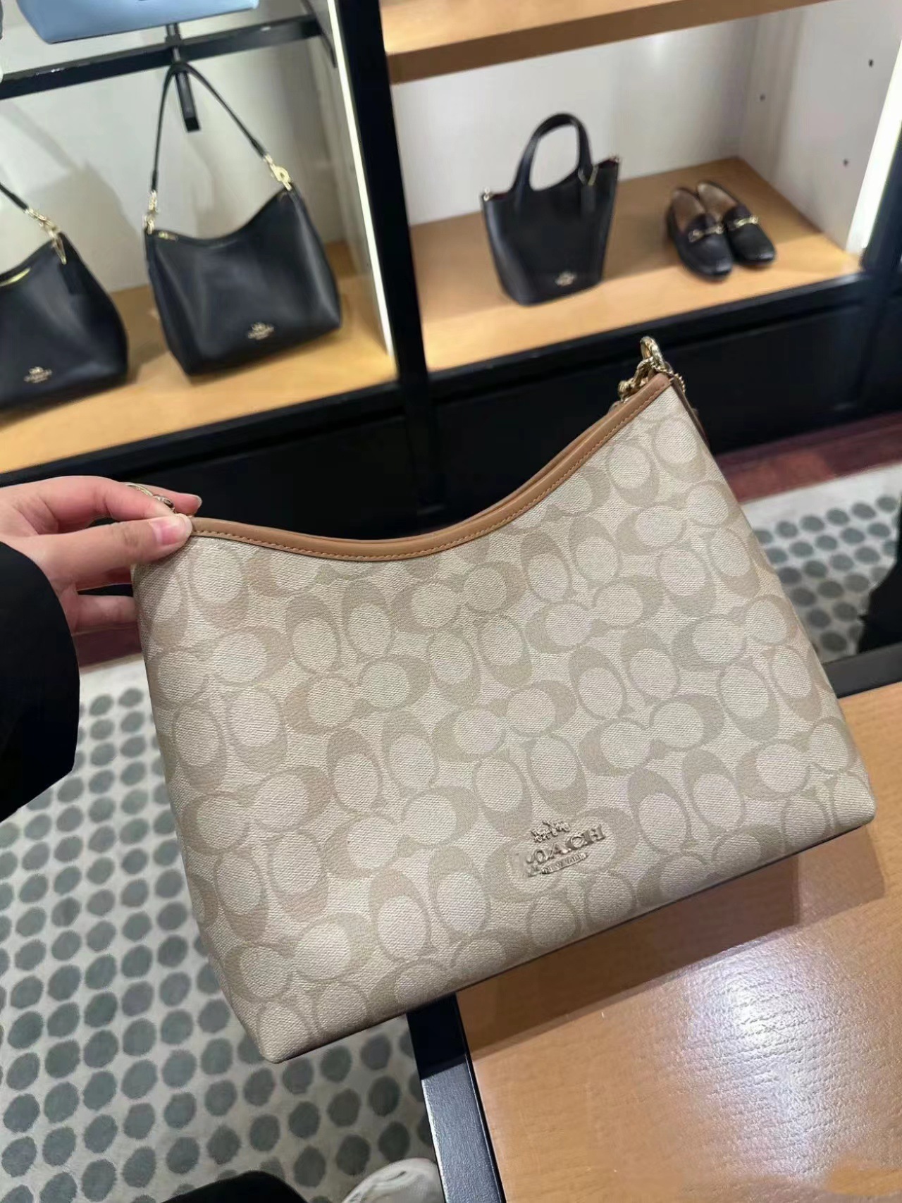 2024 Kou Laurela 단일 어깨 우유 차 컬러 오래 된 꽃 단색 크로스 바디 토트 언더암 가방 대용량 방황 가방스토어 가기