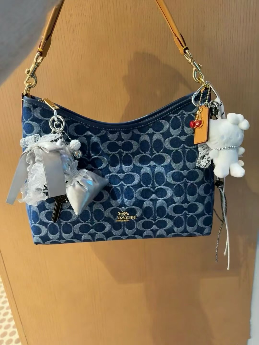 2024 Kou Laurela 단일 어깨 우유 차 컬러 오래 된 꽃 단색 크로스 바디 토트 언더암 가방 대용량 방황 가방