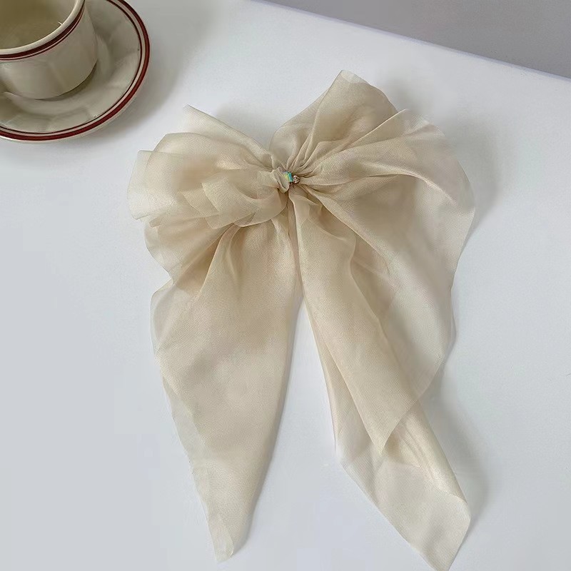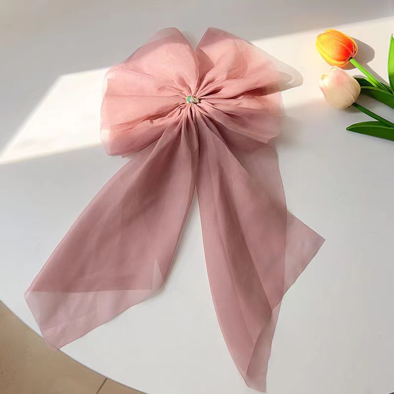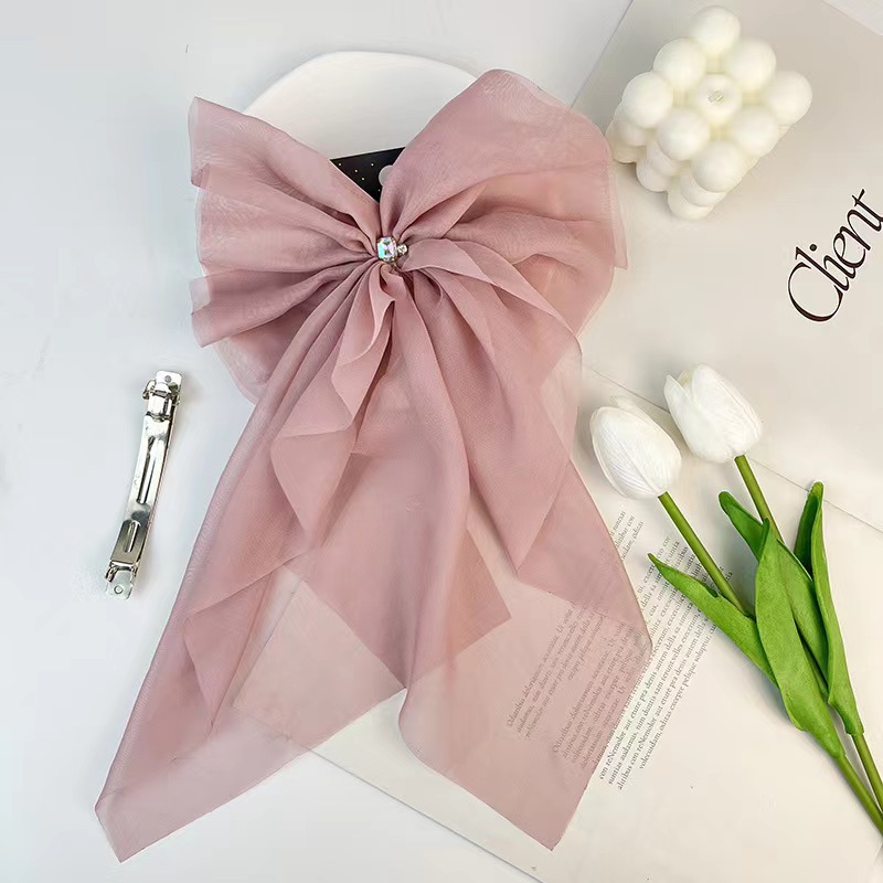 한국식 멀티 레이어 패브릭 툴레 스위트 빅 보우 헤드웨어 새로운 스타일 소녀 뒤 머리 스프링 클립 탑 클립 헤어 액세서리