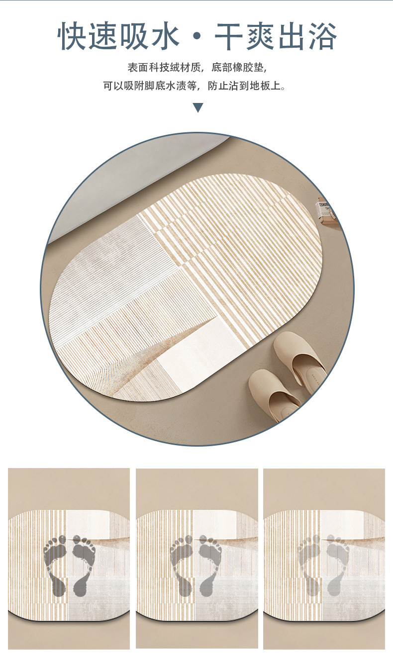 욕실 diatom 진흙 바닥 매트를위한 간단한 욕실 및 화장실 흡수성 및 입문 방지 얼룩 및 미끄럼 방지 매트를위한 건조하기 쉬운 발 매트