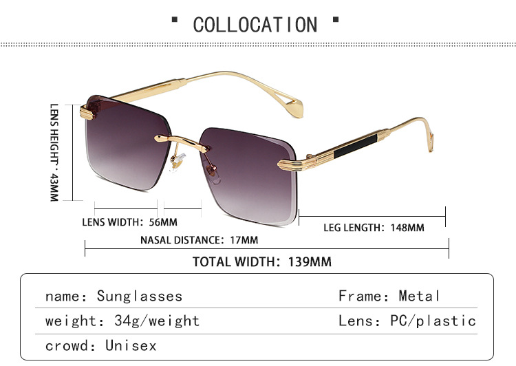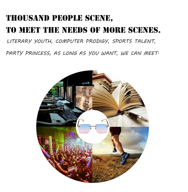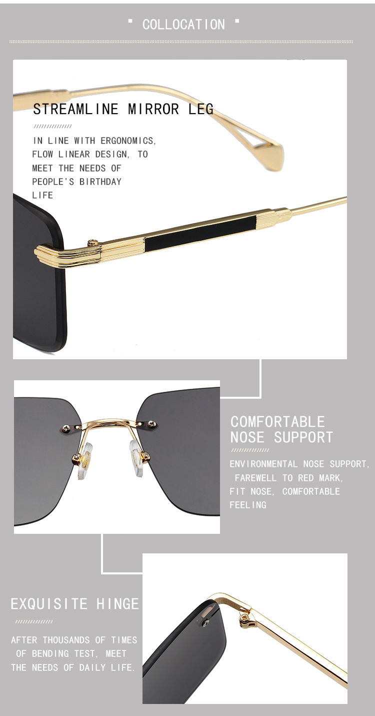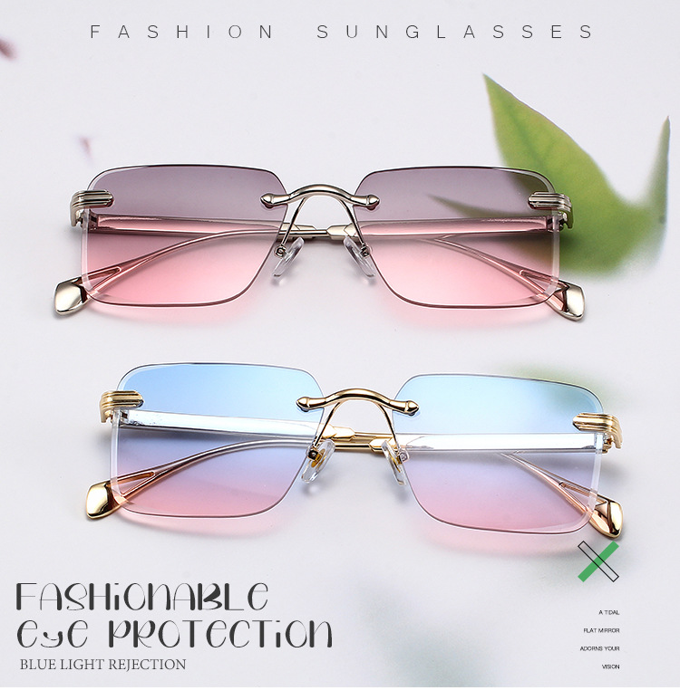 2024 새로운 빈티지 박스 선글라스 여성 맞춤형 프레임리스 운전 선글라스 남성 국경 안경 도매