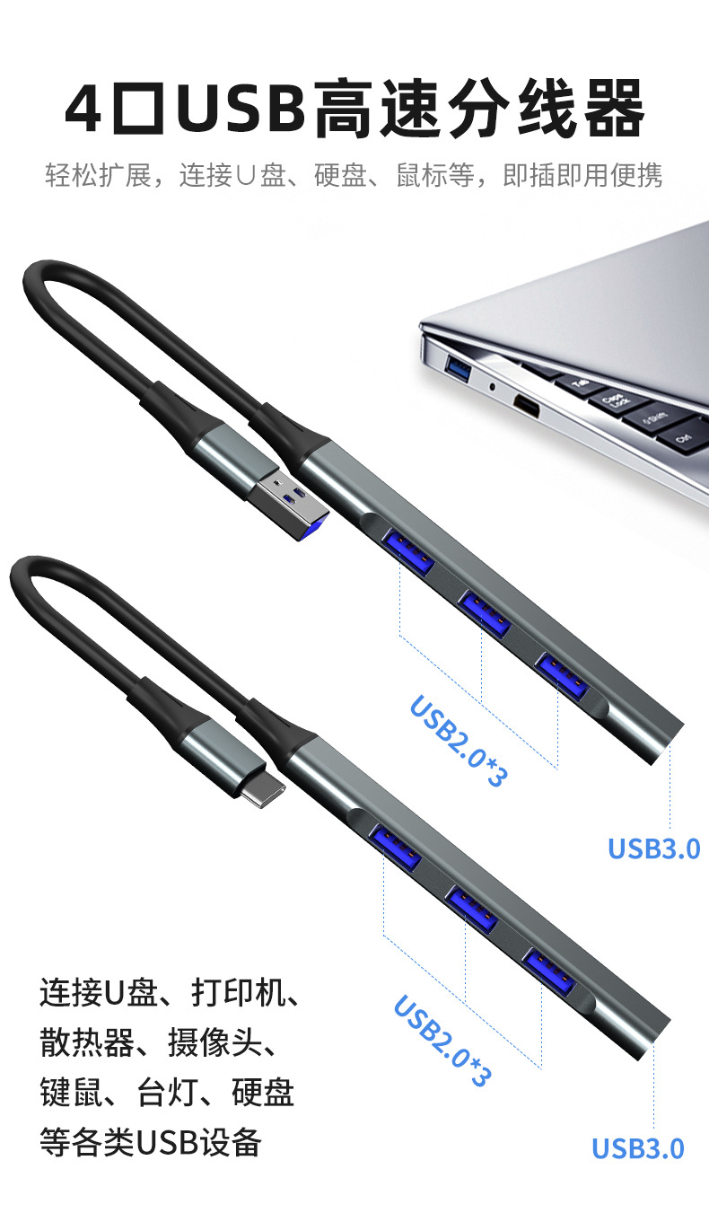 1 대 4 usb3.0 허브 노트북 태블릿 멀티 포트 익스텐더 유형-c 스플리터 도킹 스테이션스토어 가기