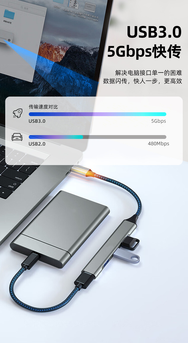 1 대 4 usb3.0 허브 노트북 태블릿 멀티 포트 익스텐더 유형-c 스플리터 도킹 스테이션
