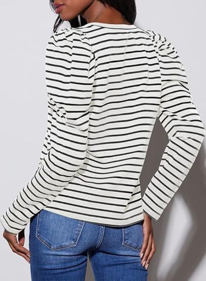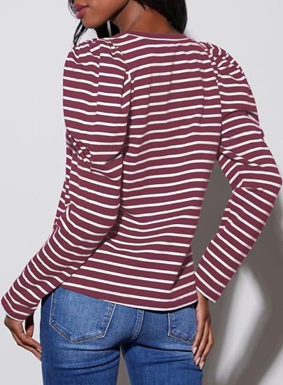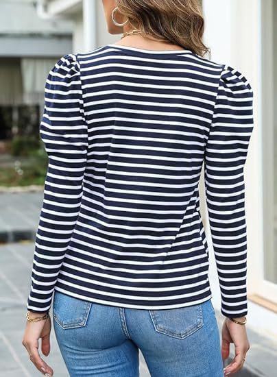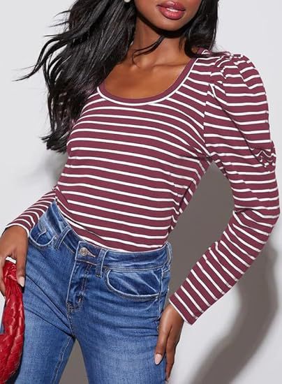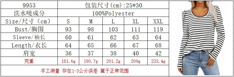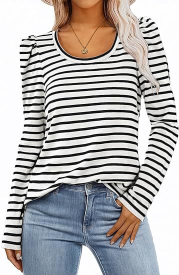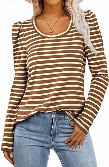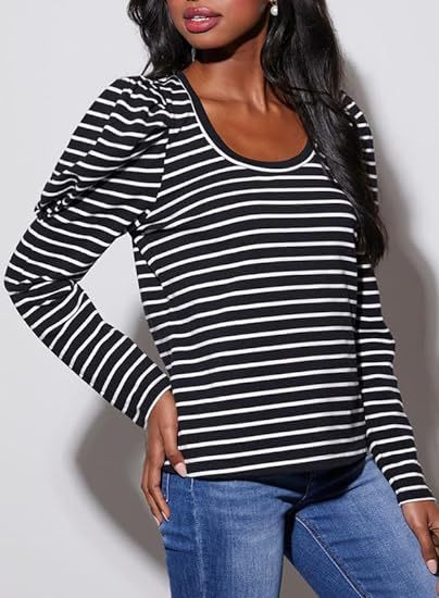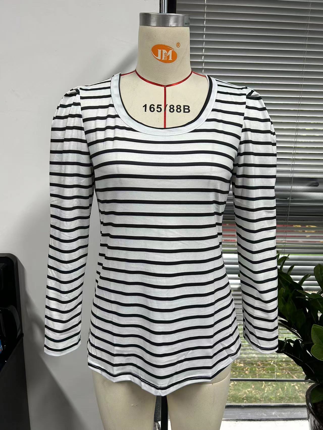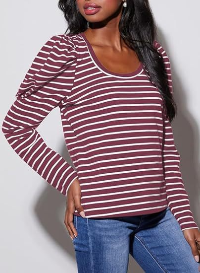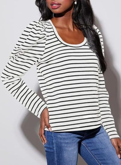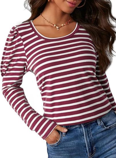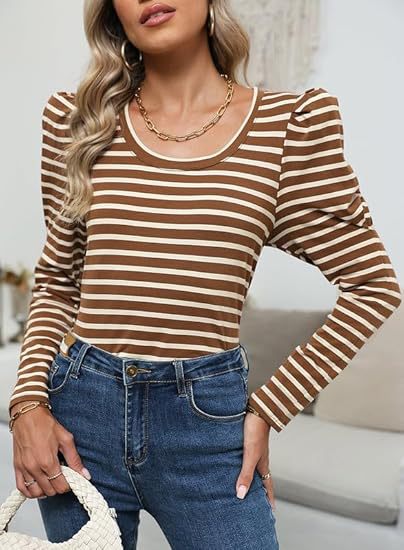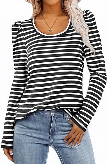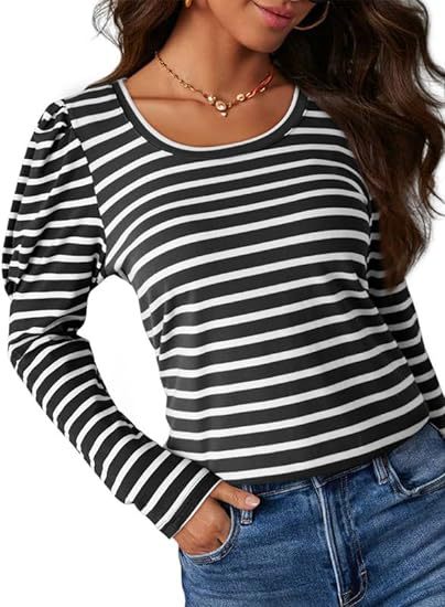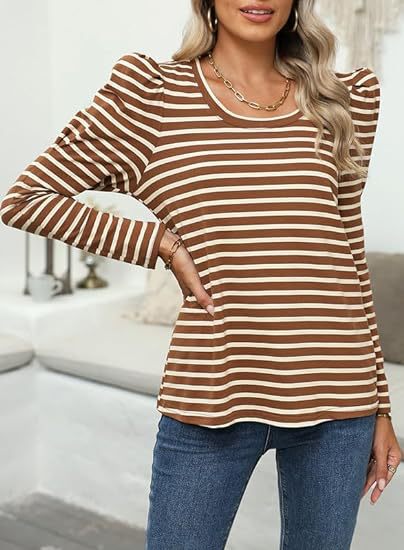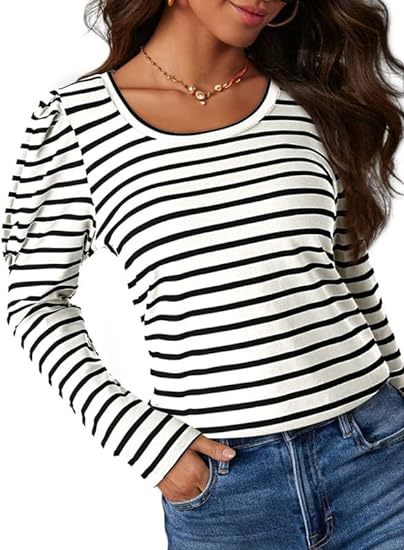 가을 2024 새로운 국경 유럽 및 미국 여성 의류 아마존 여성용 긴 소매 크루 넥 티셔츠 퍼프 슬리브 캐주얼베이스 셔츠스토어 가기
