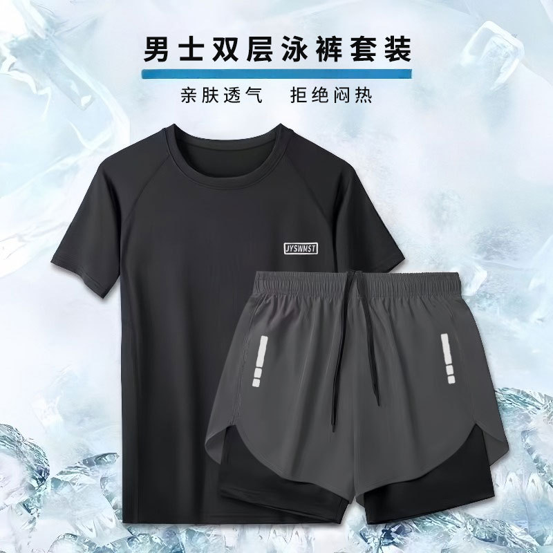 JI Yang 남자 수영복 세트 남자 수영복 2024 새로운 십대 풀 세트 수영복 소년 스플릿 탑