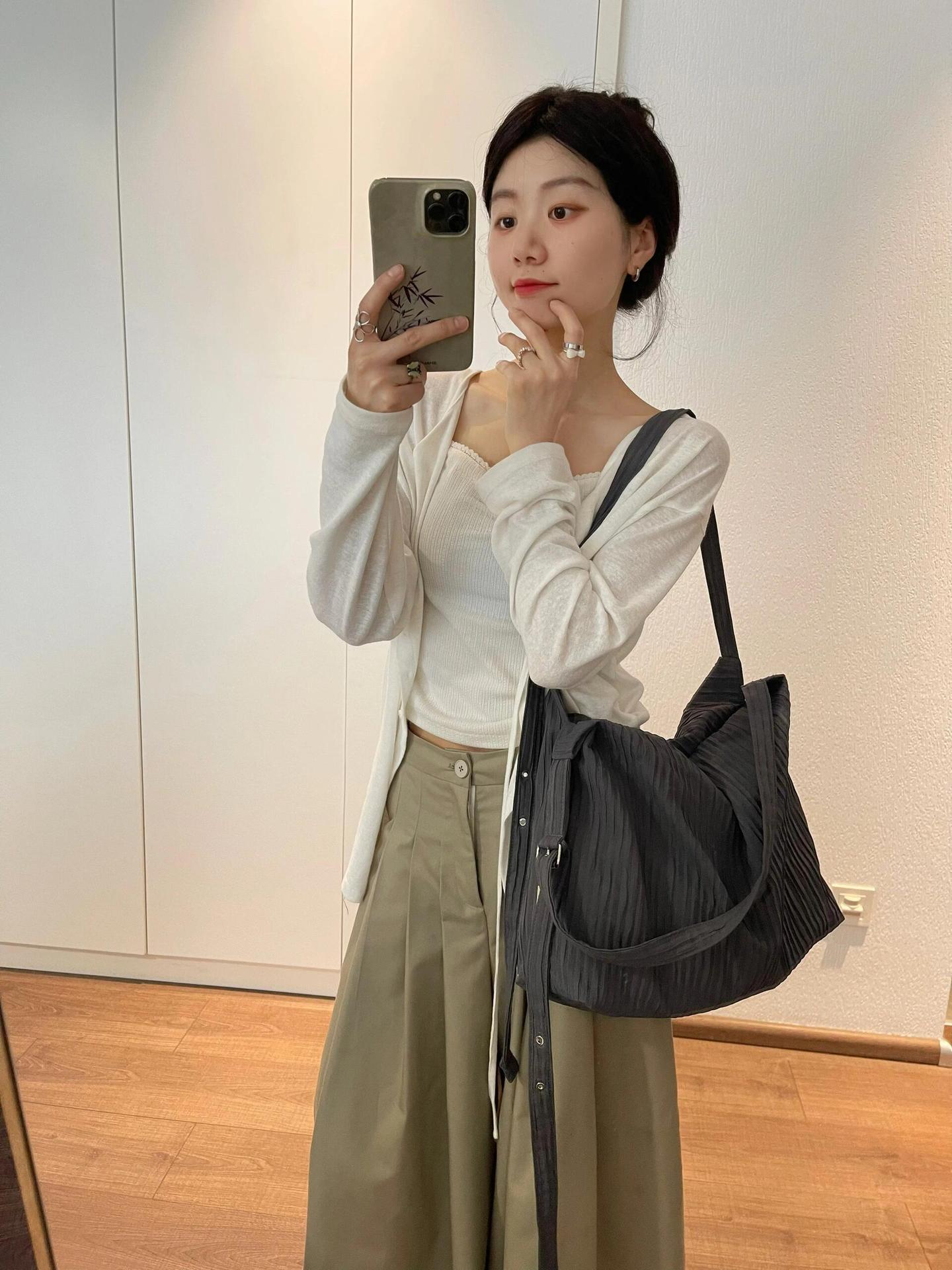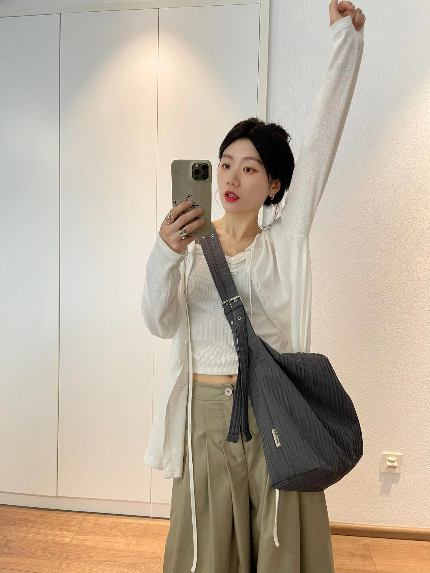 한국 니치 질감 스트라이프 백팩 여성용 대용량 통근 릴렉스 호보백 학생용 숄더 크로스백스토어 가기