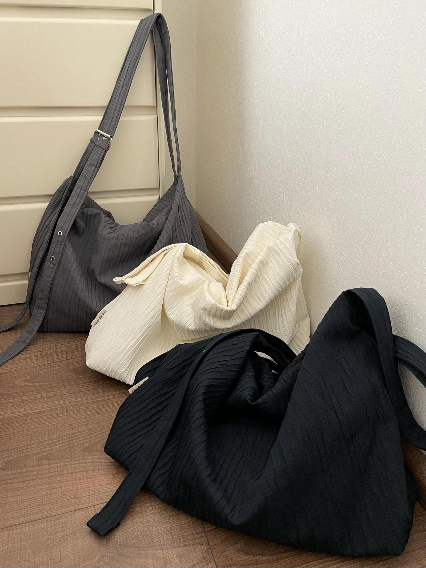 한국 니치 질감 스트라이프 백팩 여성용 대용량 통근 릴렉스 호보백 학생용 숄더 크로스백