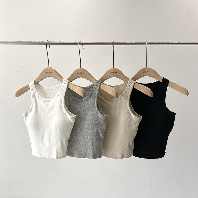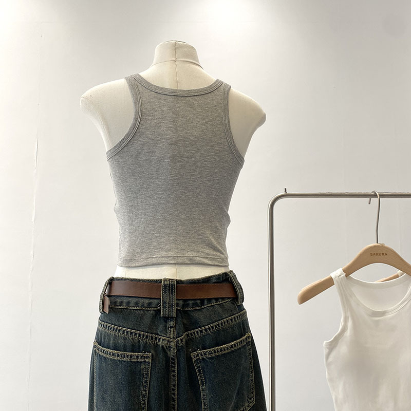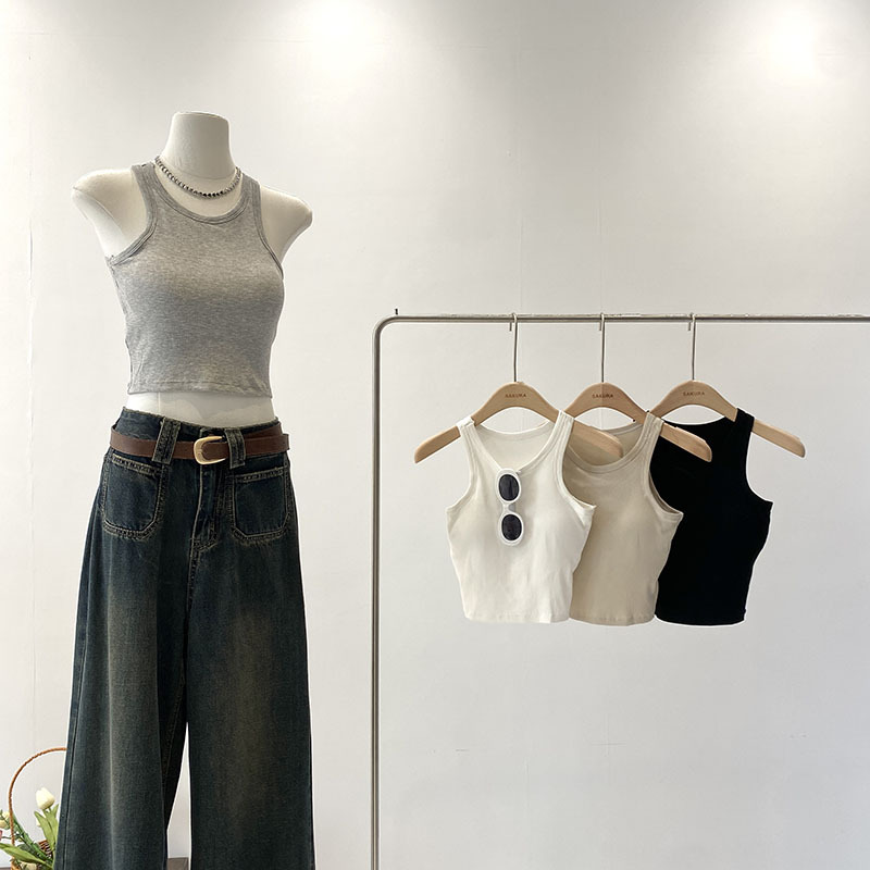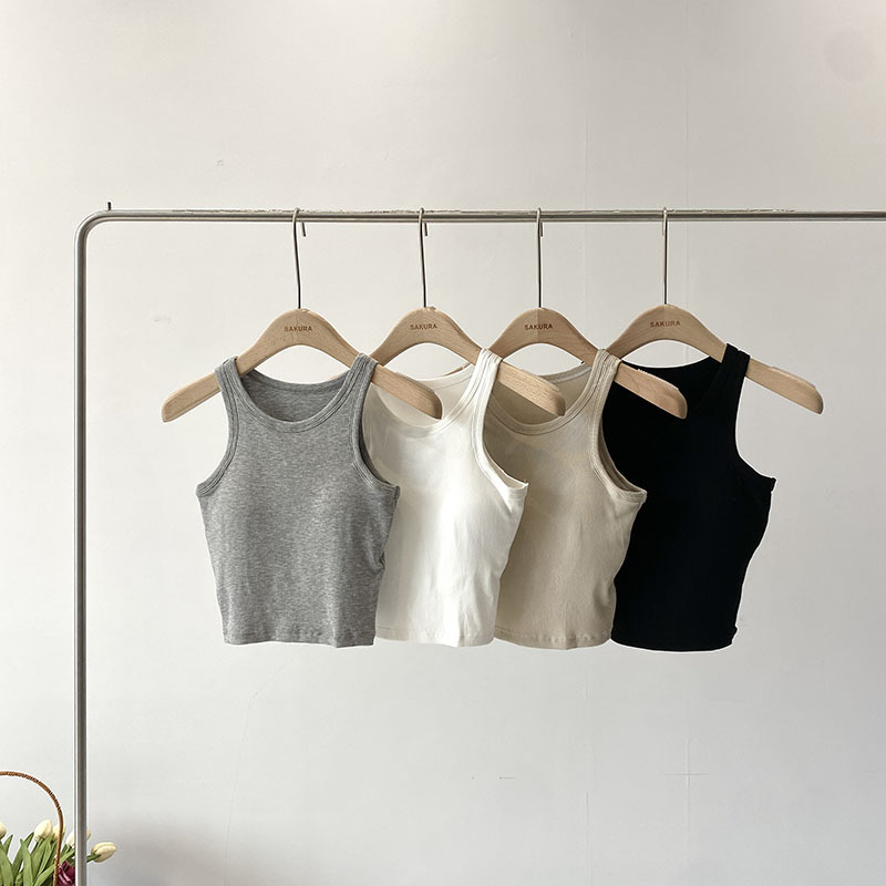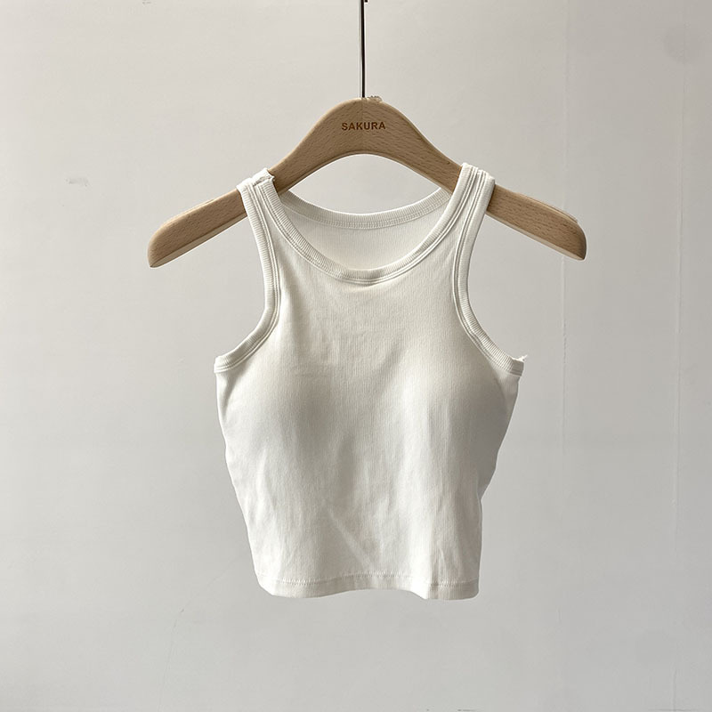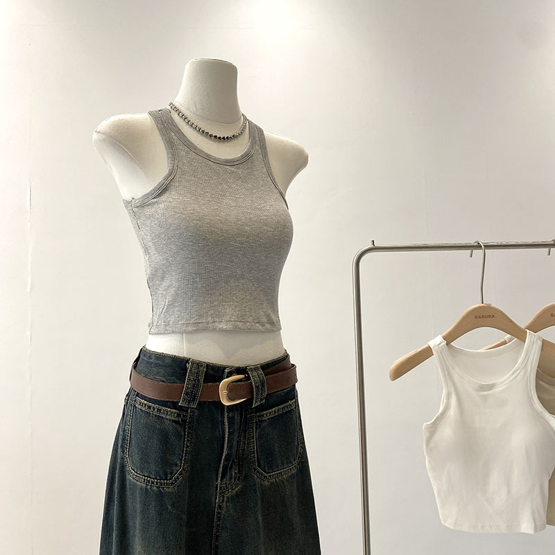 짧은 I 자형 크루 넥 뷰티 조끼 라텍스 매트 푸시 업 싱글웨어 여름 새로운 통근 한국식 솔리드 컬러 슬링 탑스토어 가기