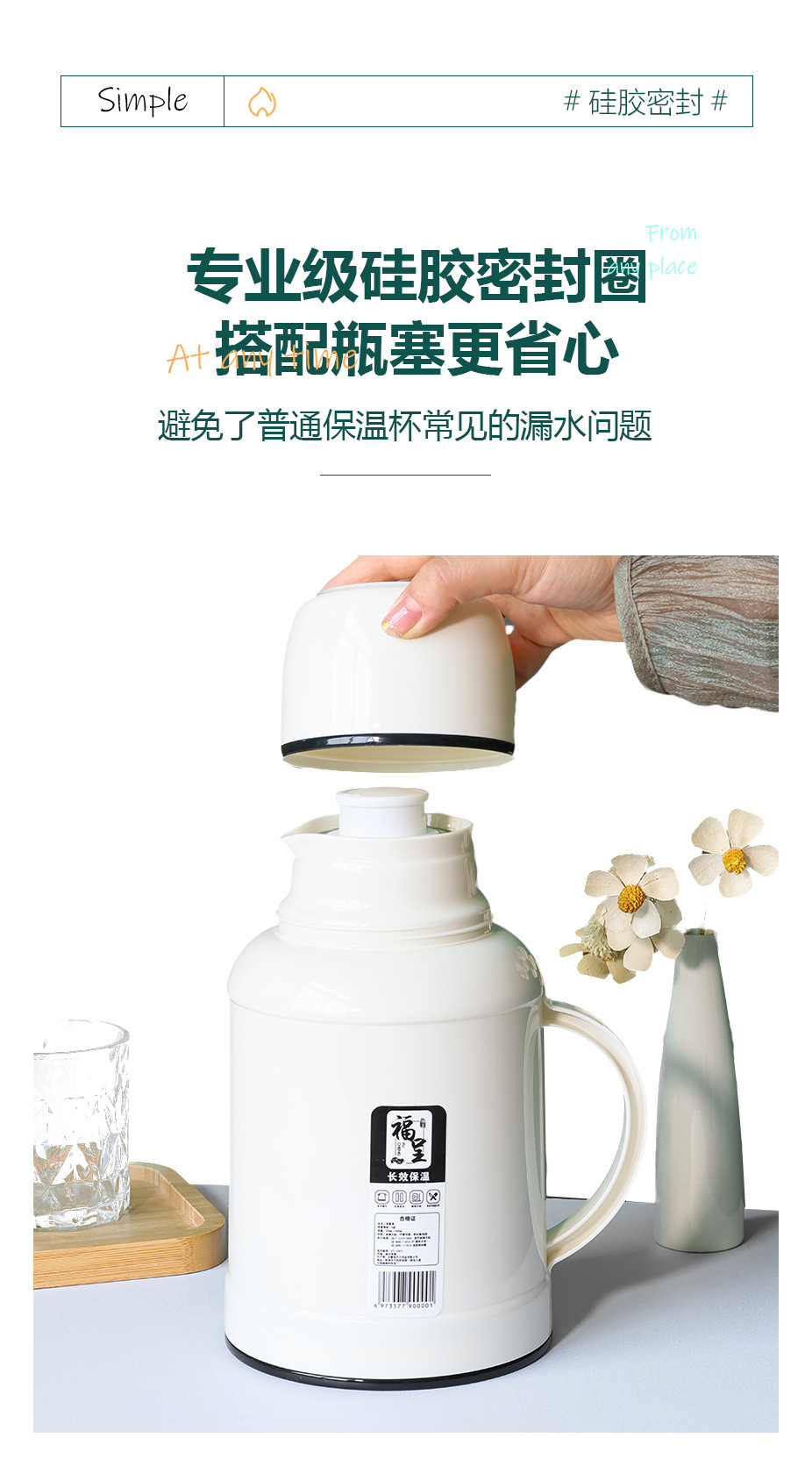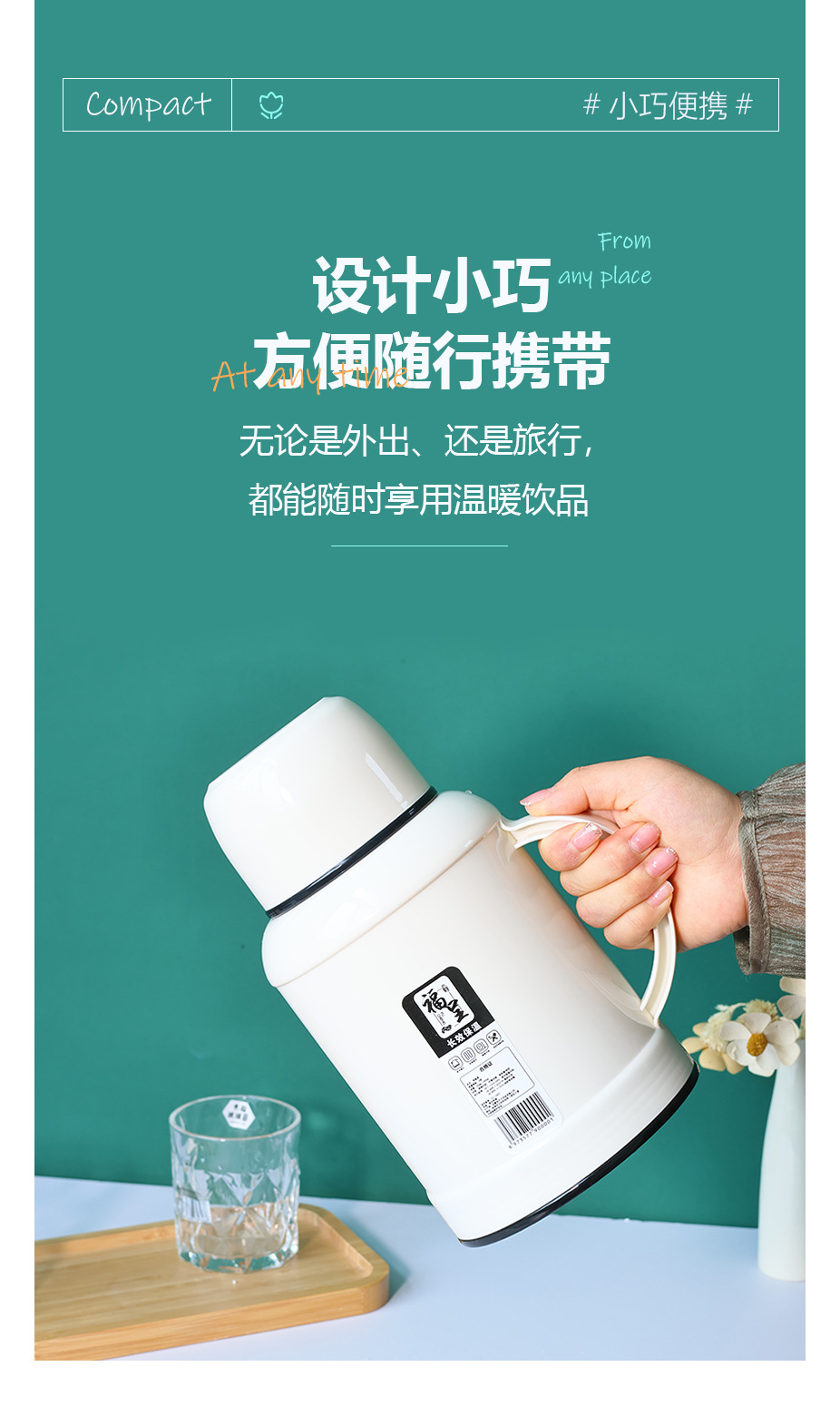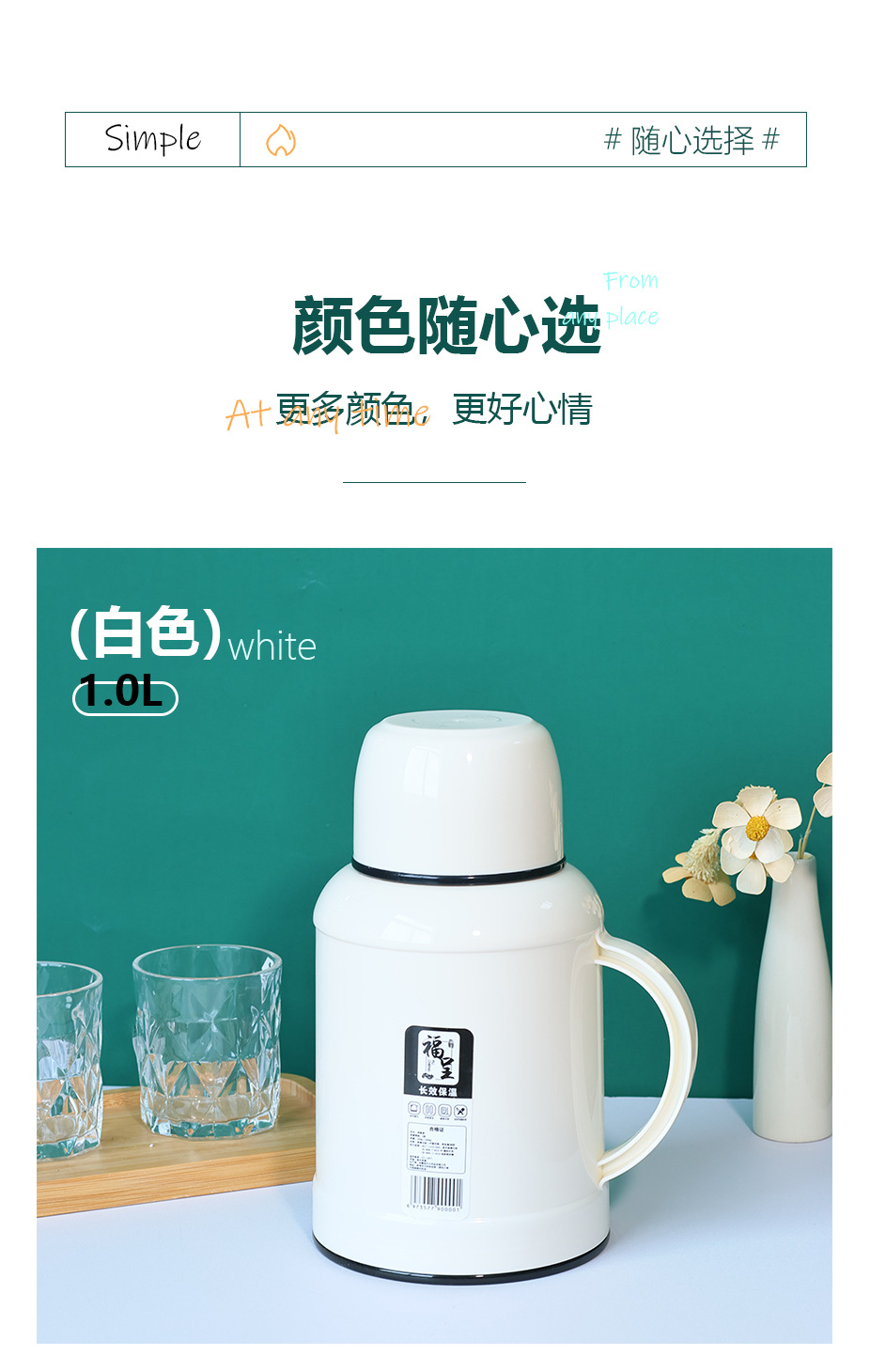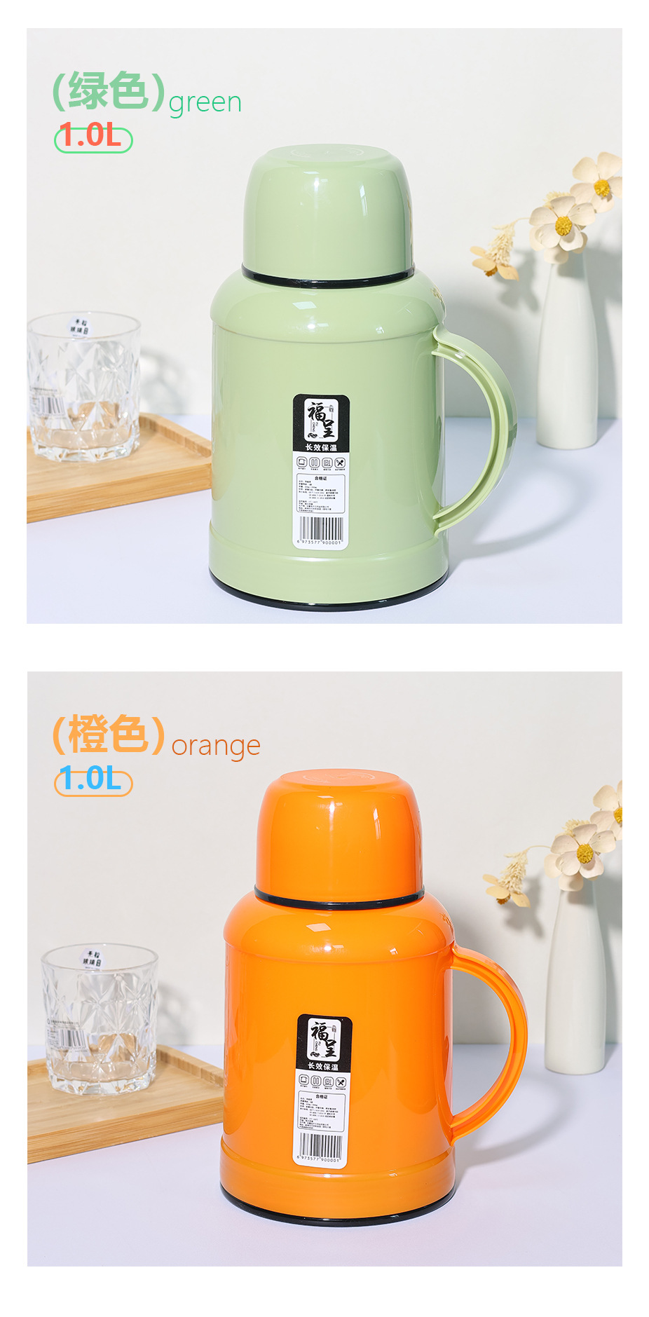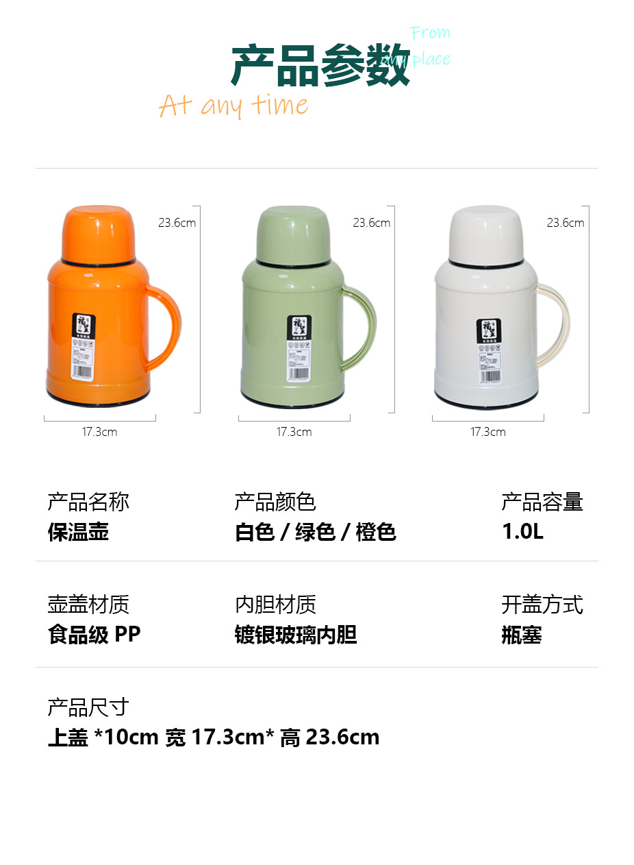 가정용 1000ml 대용량 보온병 휴대용 뜨거운 냄비 학생 기숙사 보온병 유리 라이너