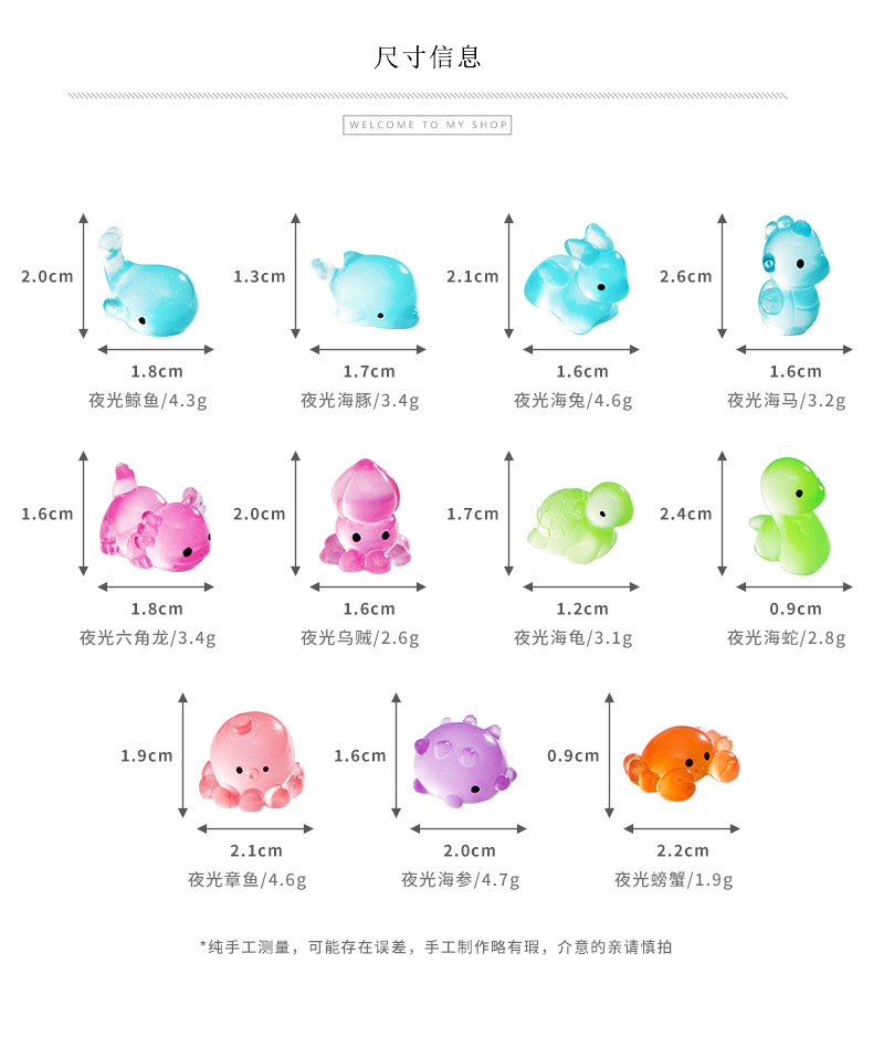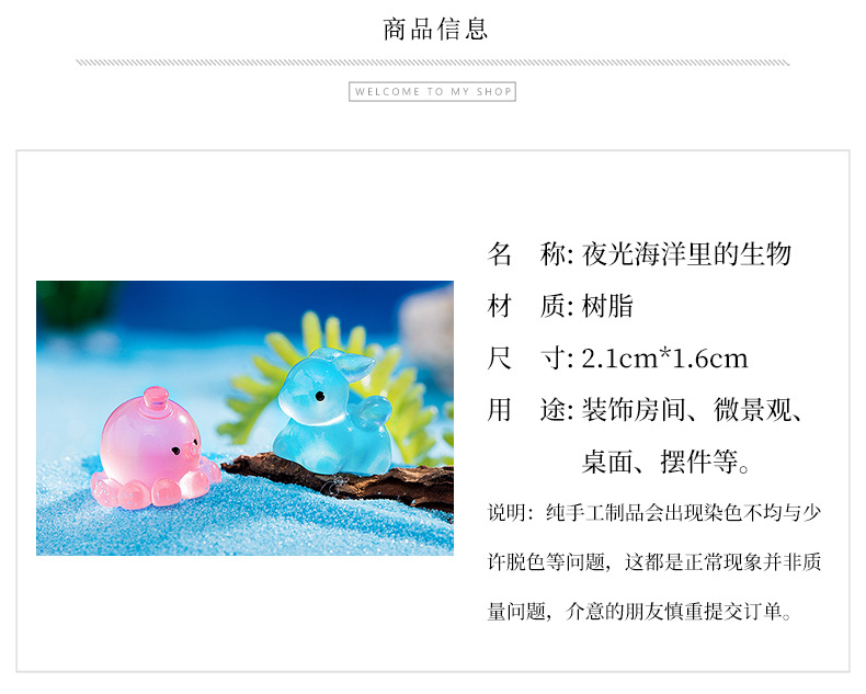 마이크로 풍경 빛나는 해양 동물 바다 토끼 바다 뱀 게 육각형 용 바다 거북 수지 장식품 수족관 장식품스토어 가기