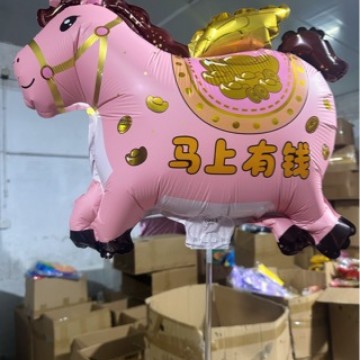 어린이날 풍선 가판대 만화 새해 말 모양 풍선 알루미늄 필름 손에 쥐는 대형 클립형 풍선 벨소리 포함 행사 홍보용스토어 가기