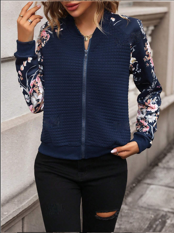 2024년 가을 겨울 여성용 신상품 해외 무역 긴팔 프린트 캐주얼 스플라이싱 지퍼 재킷스토어 가기