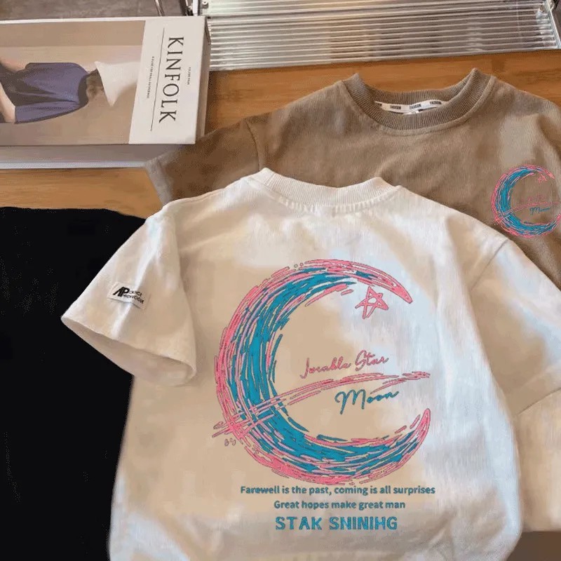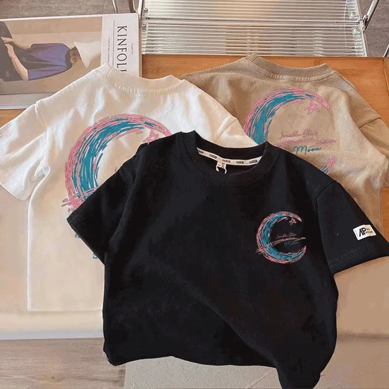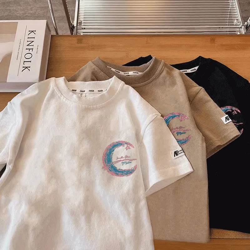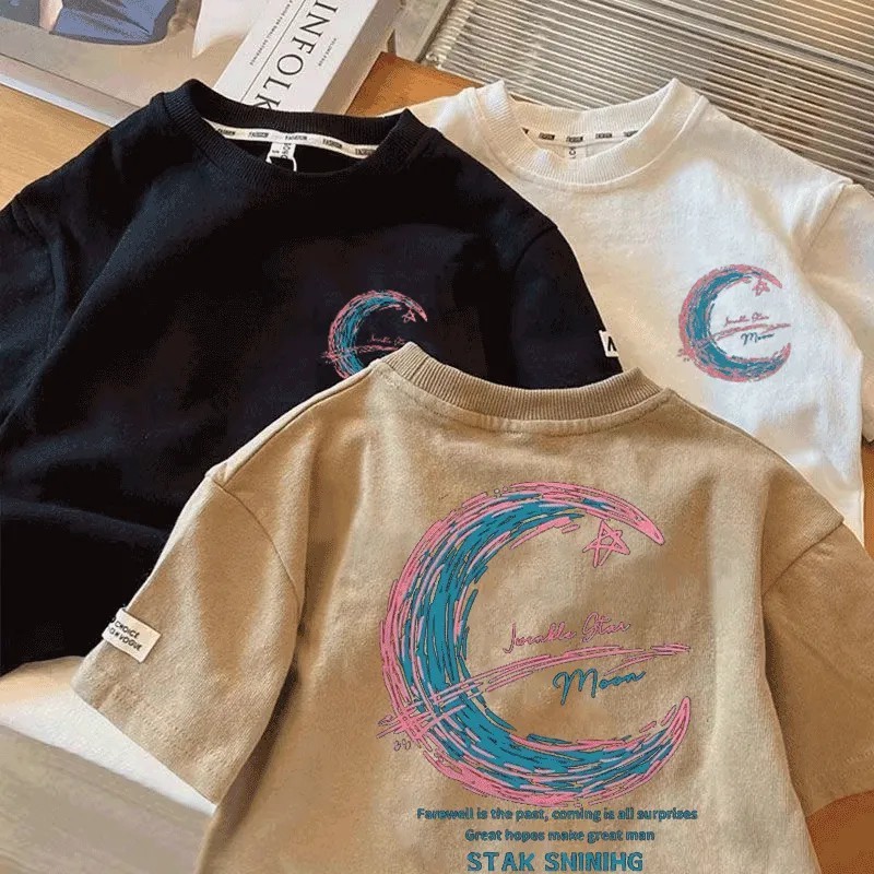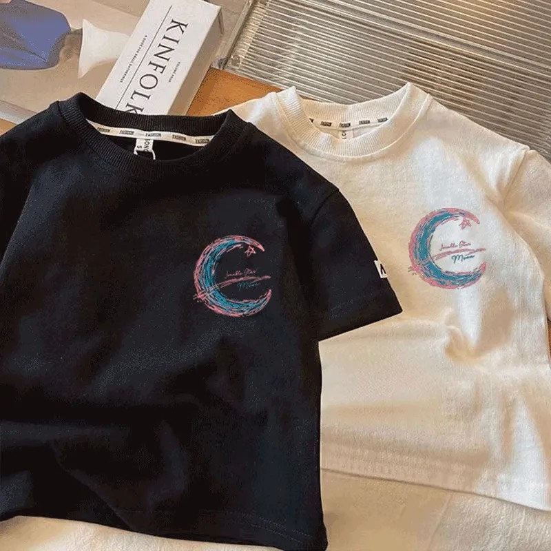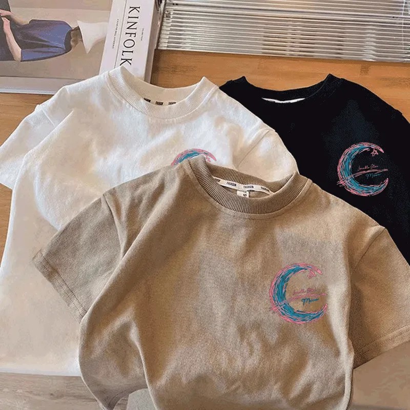새로운 퓨어 코튼 아동복 남성용 반팔 티셔츠 아기의 여름복 어린이 소년의 여름 라운드 넥 탑베이스 셔츠 T스토어 가기