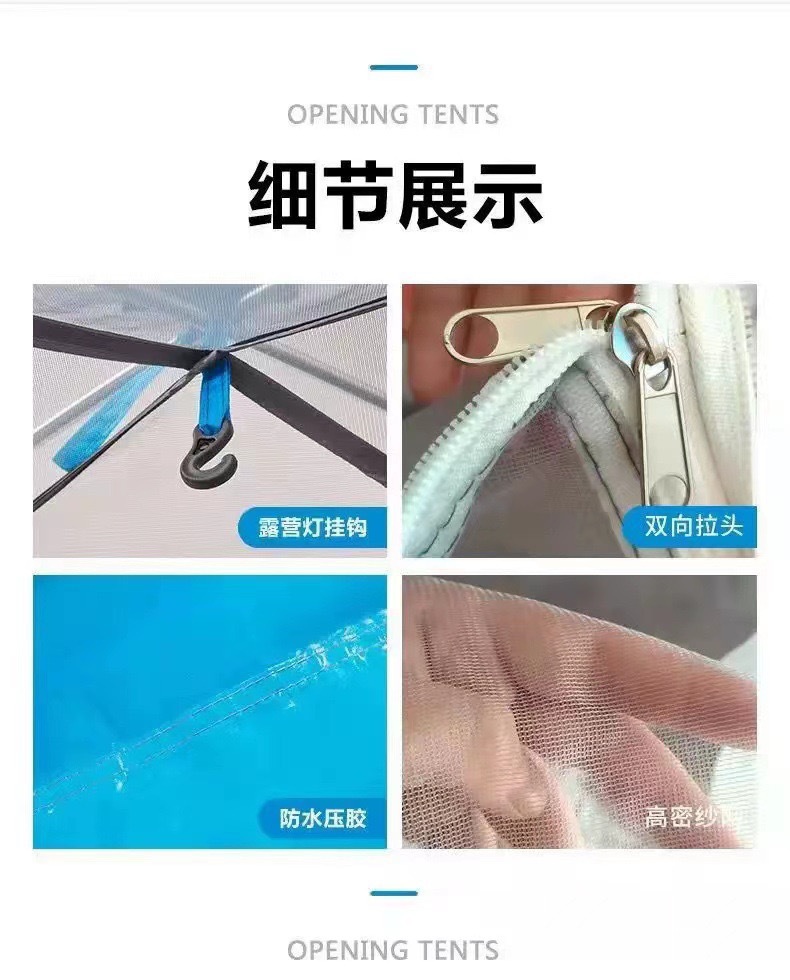【产品特点】2秒速开,一抛即开,无需搭建,可适用于户外野营、公园休闲等实用面广。涤塔夫涂银面料,防晒健康无异味。纤维帐杆任性好不易损坏。便携式包装袋,体积小携带方便。