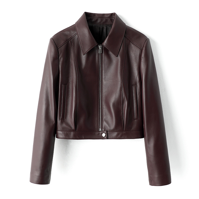 Haining 봄과 가을 새로운 여성 지퍼 오토바이 가죽 코트 라펠 블랙 양피 정품 가죽 자켓 짧은 가죽 코트스토어 가기