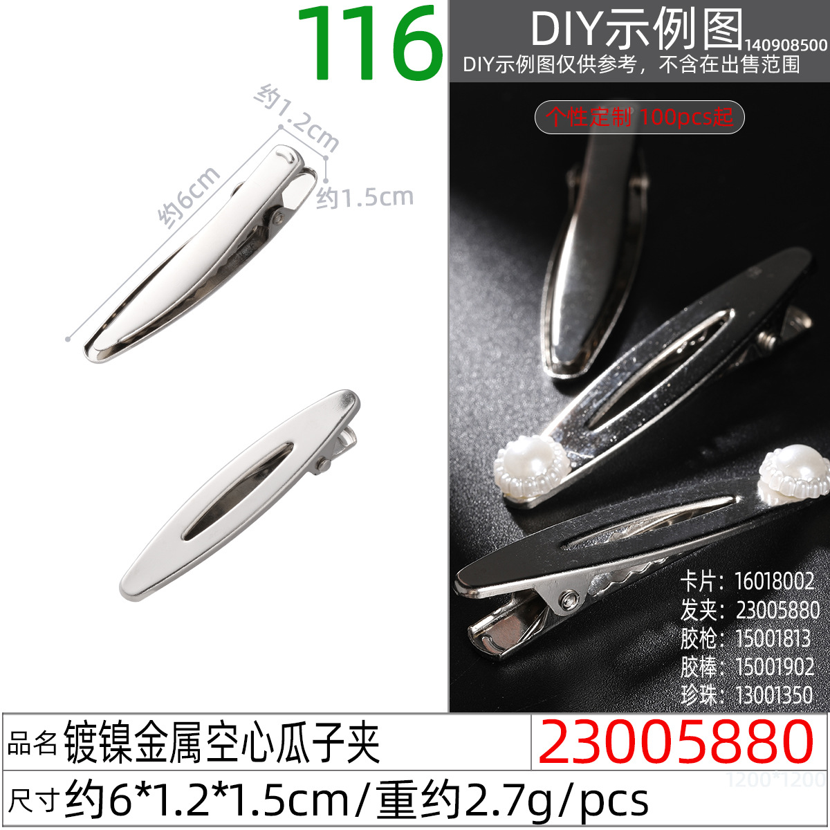 • 23005880X # 니켈 도금 금속 중공 멜론 클립