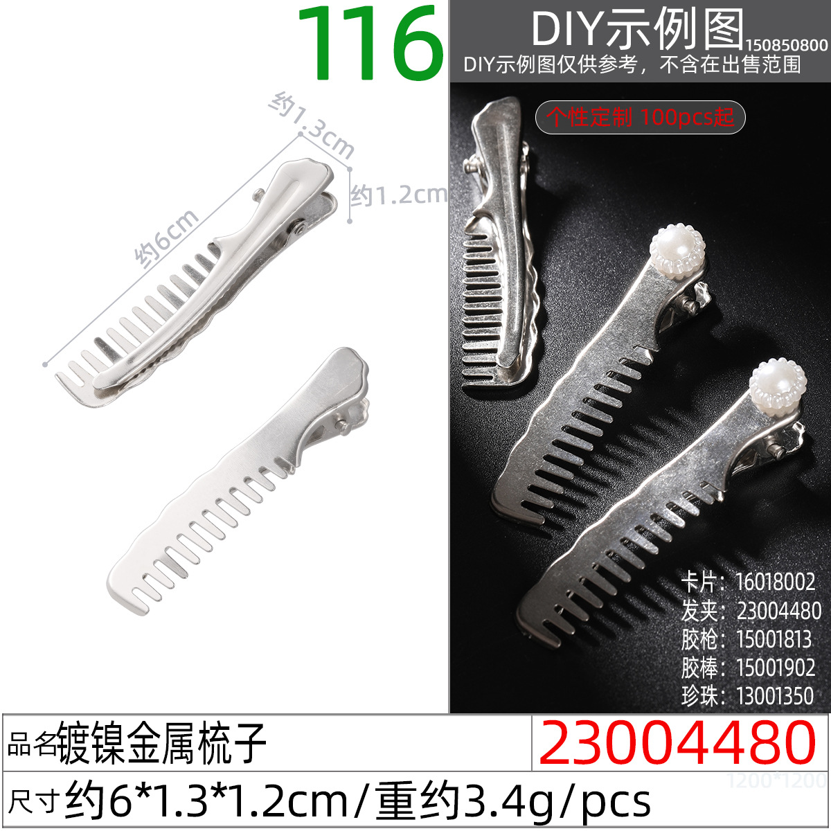 • 23004480X # 니켈 도금 금속 빗