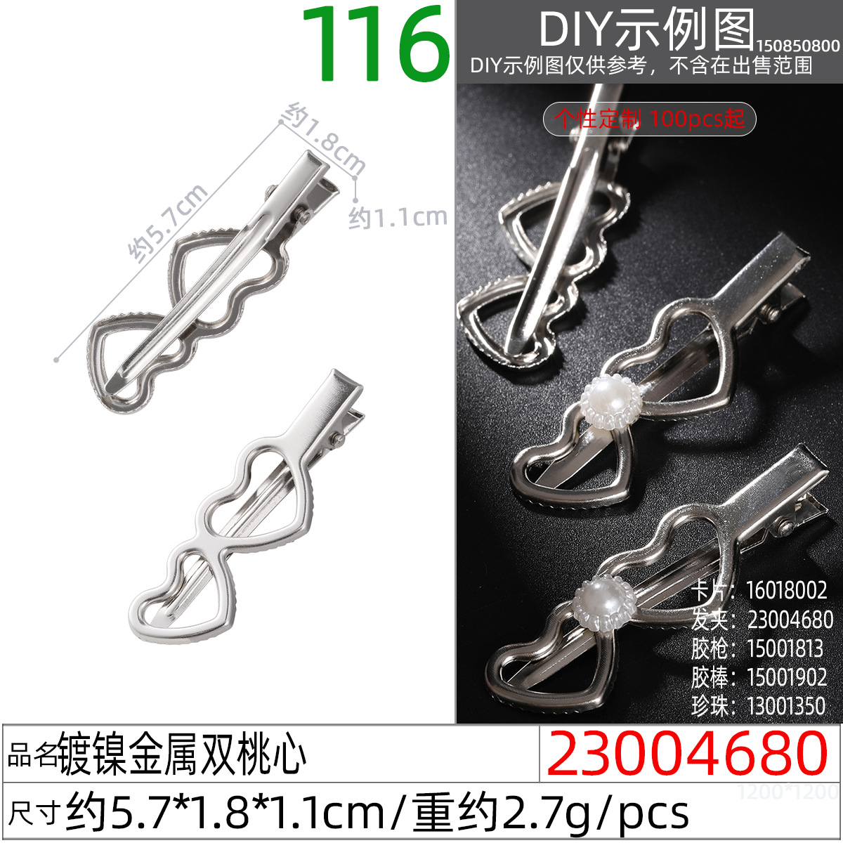 • 23004580X # 니켈 도금 금속 사랑