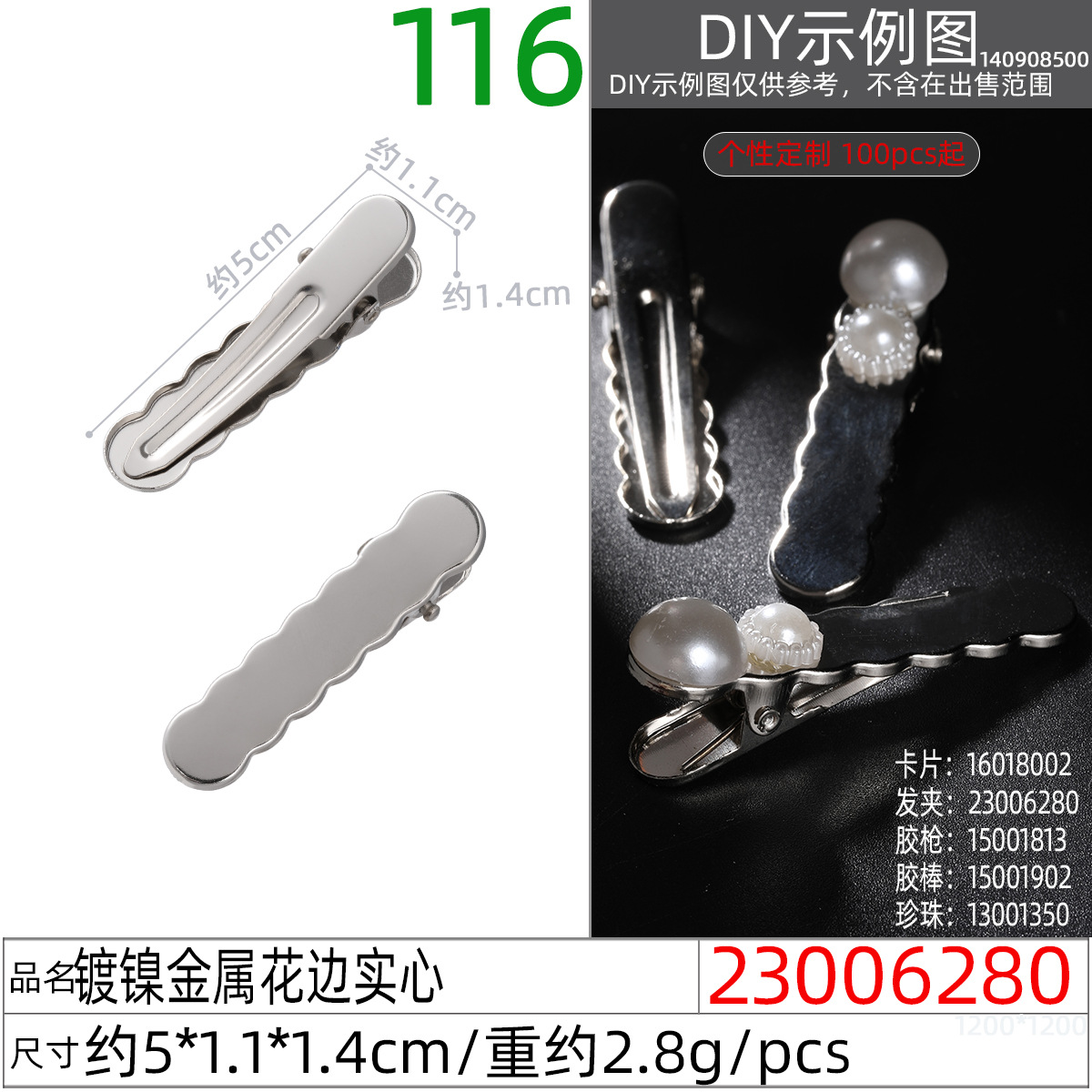 • 23006280X # 니켈 도금 금속 레이스 솔리드