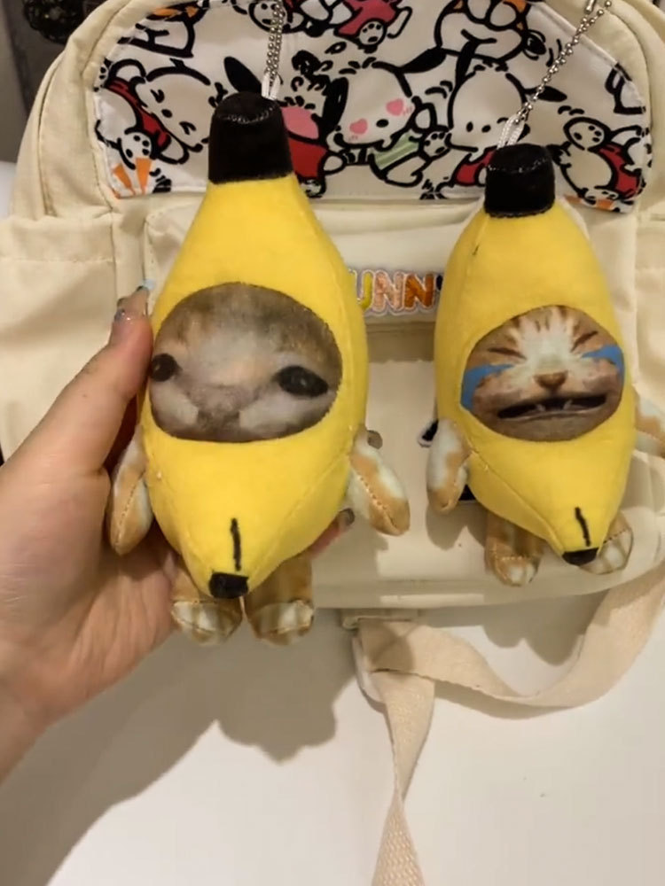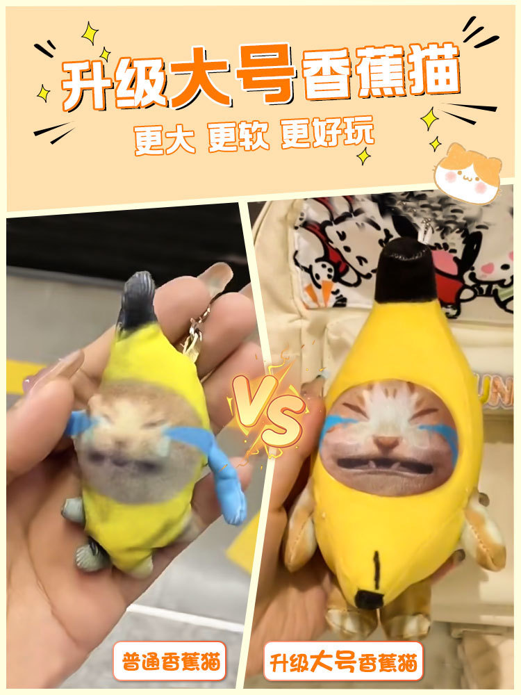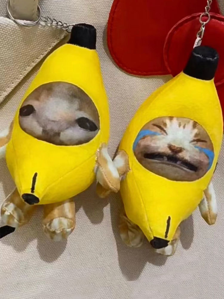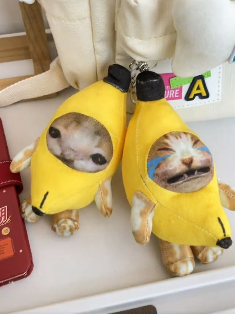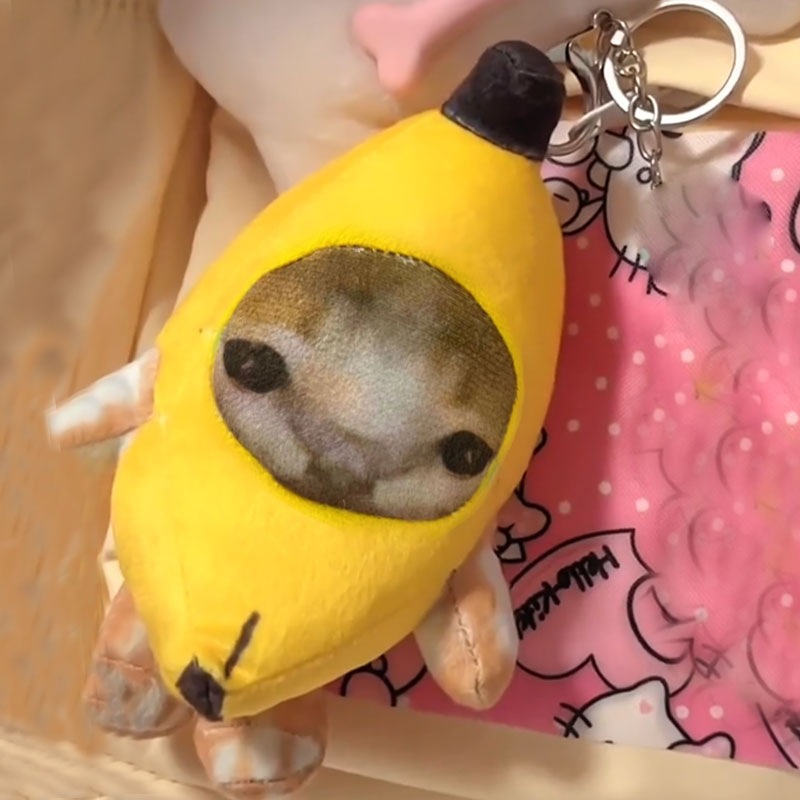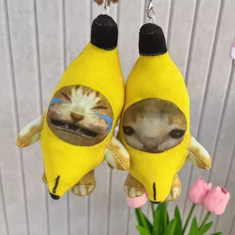 바나나 고양이 행복 귀여운 재미있는 음성 인형 창조적 인 음성 가방 펜던트 울리는 비터 장난감스토어 가기