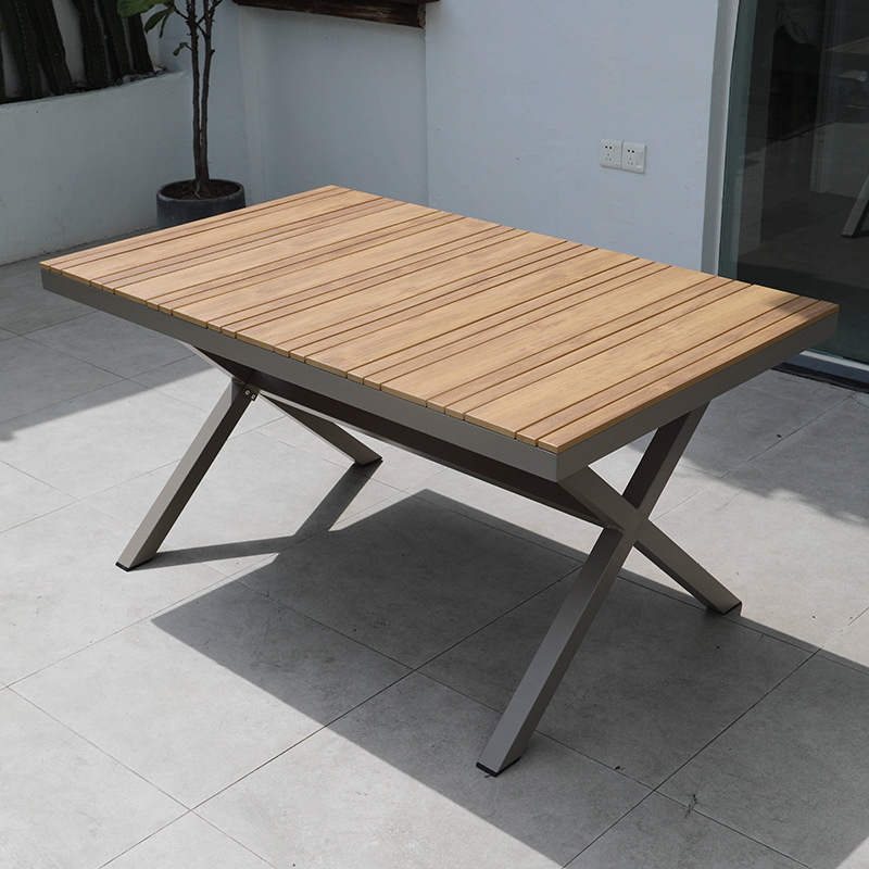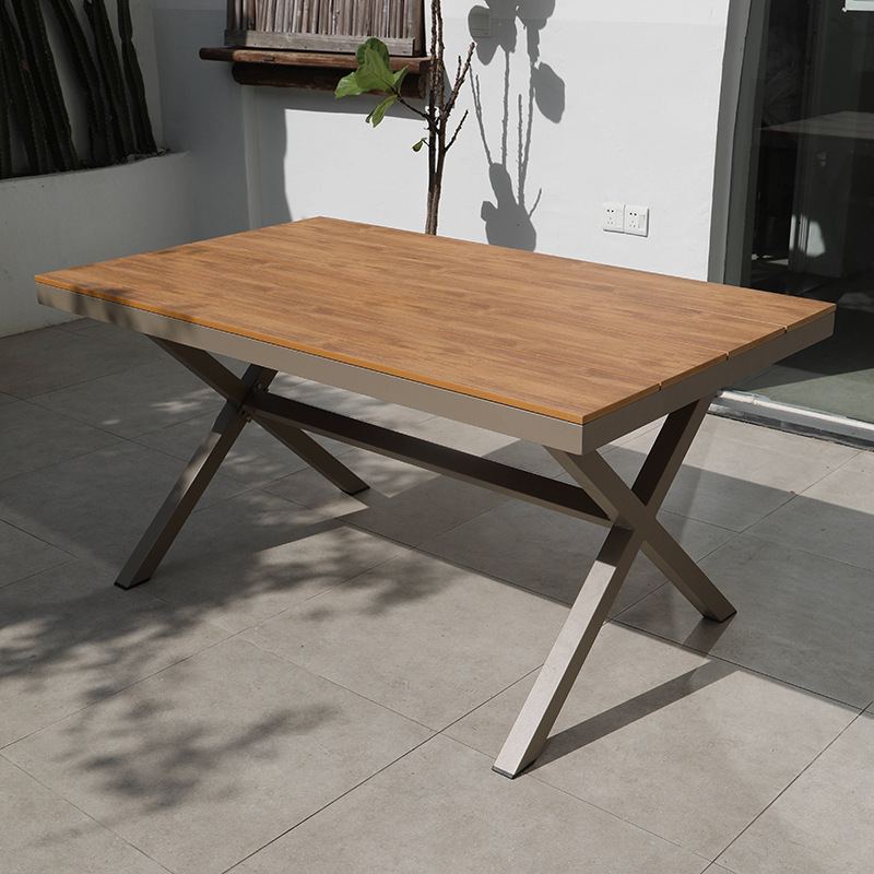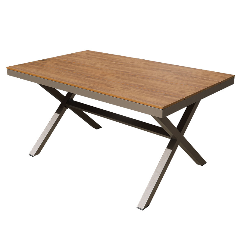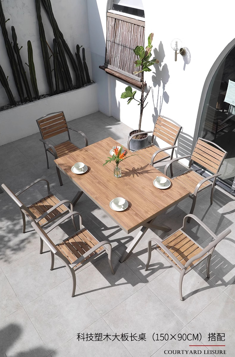 150CM 긴 테이블 기술 플라스틱 목재 부식 티크 컬러 야외 테이블 안뜰 정원 외부 식탁 비 저항