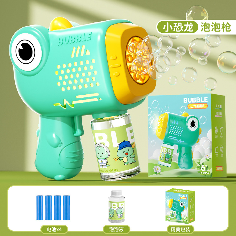 새로운 자동 전기 거품 기계 다공성 빛 유니콘 공룡 만화 거품 총 어린이 장난감 선물스토어 가기