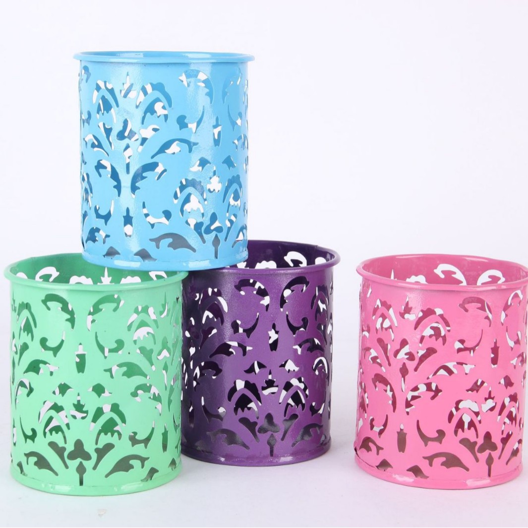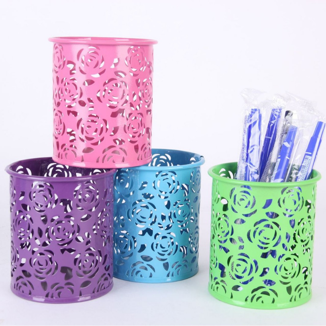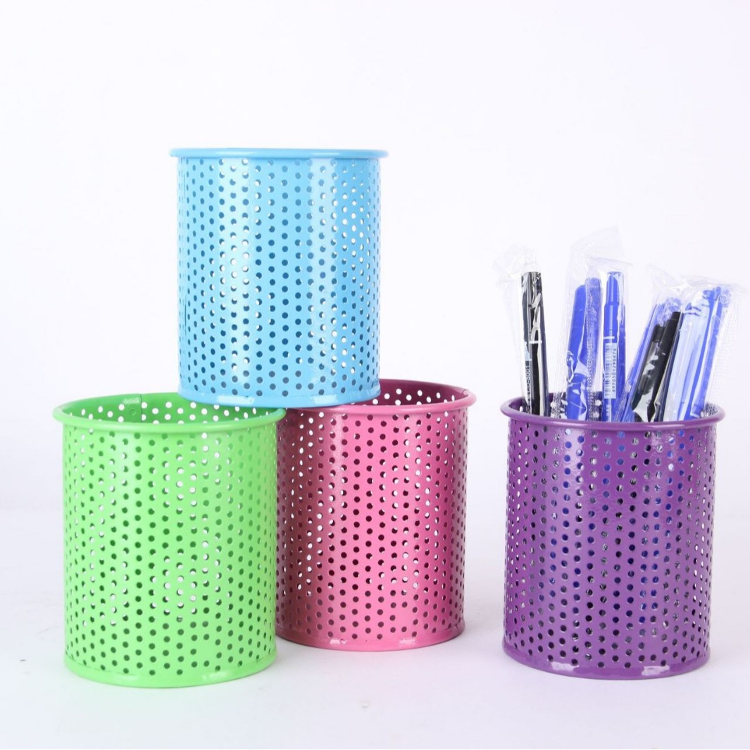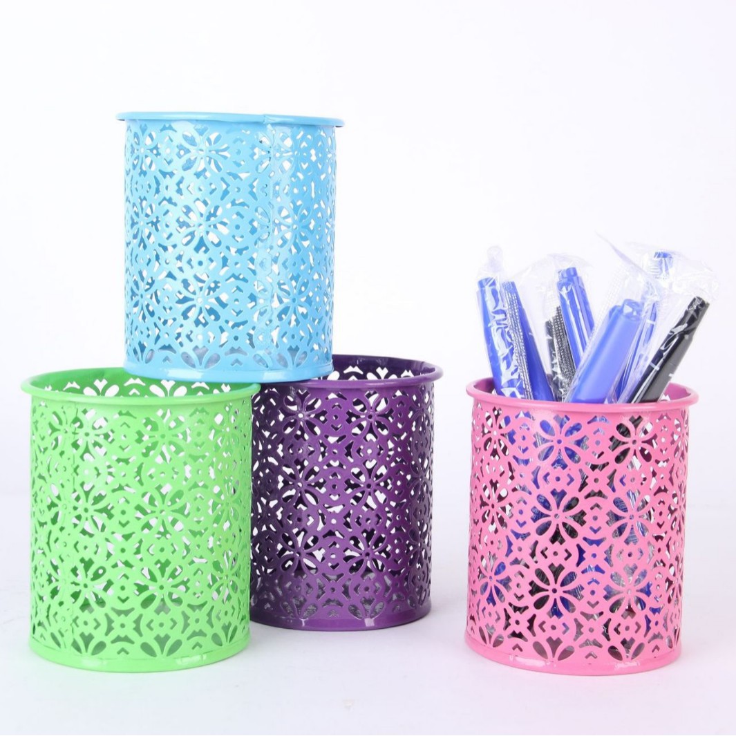 컬러 아름다운 연철 창조적 인 라운드 다기능 사무실 문구 보관 데스크탑 마무리 장식품 금속 펜 홀더